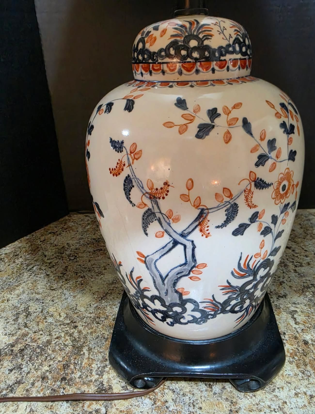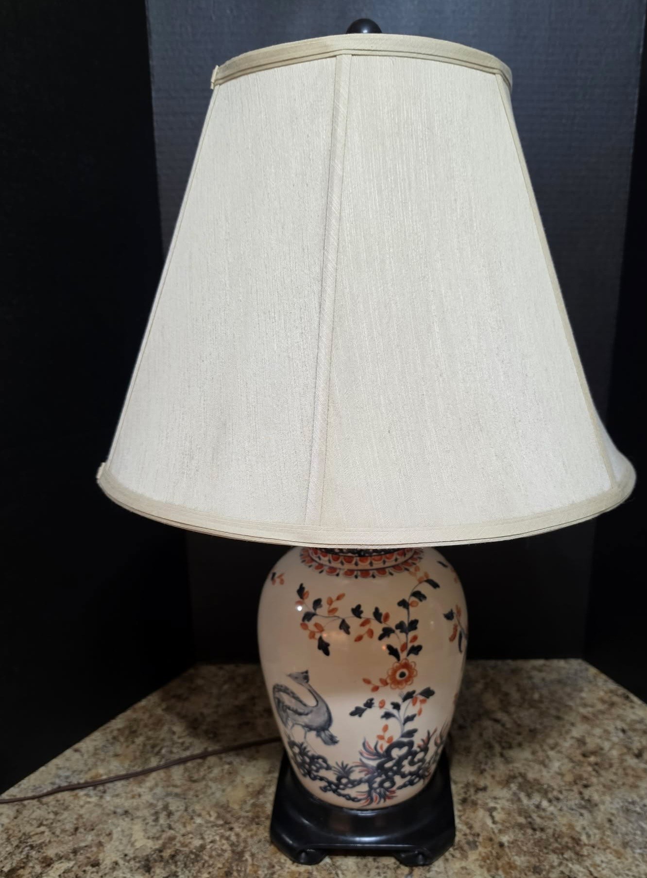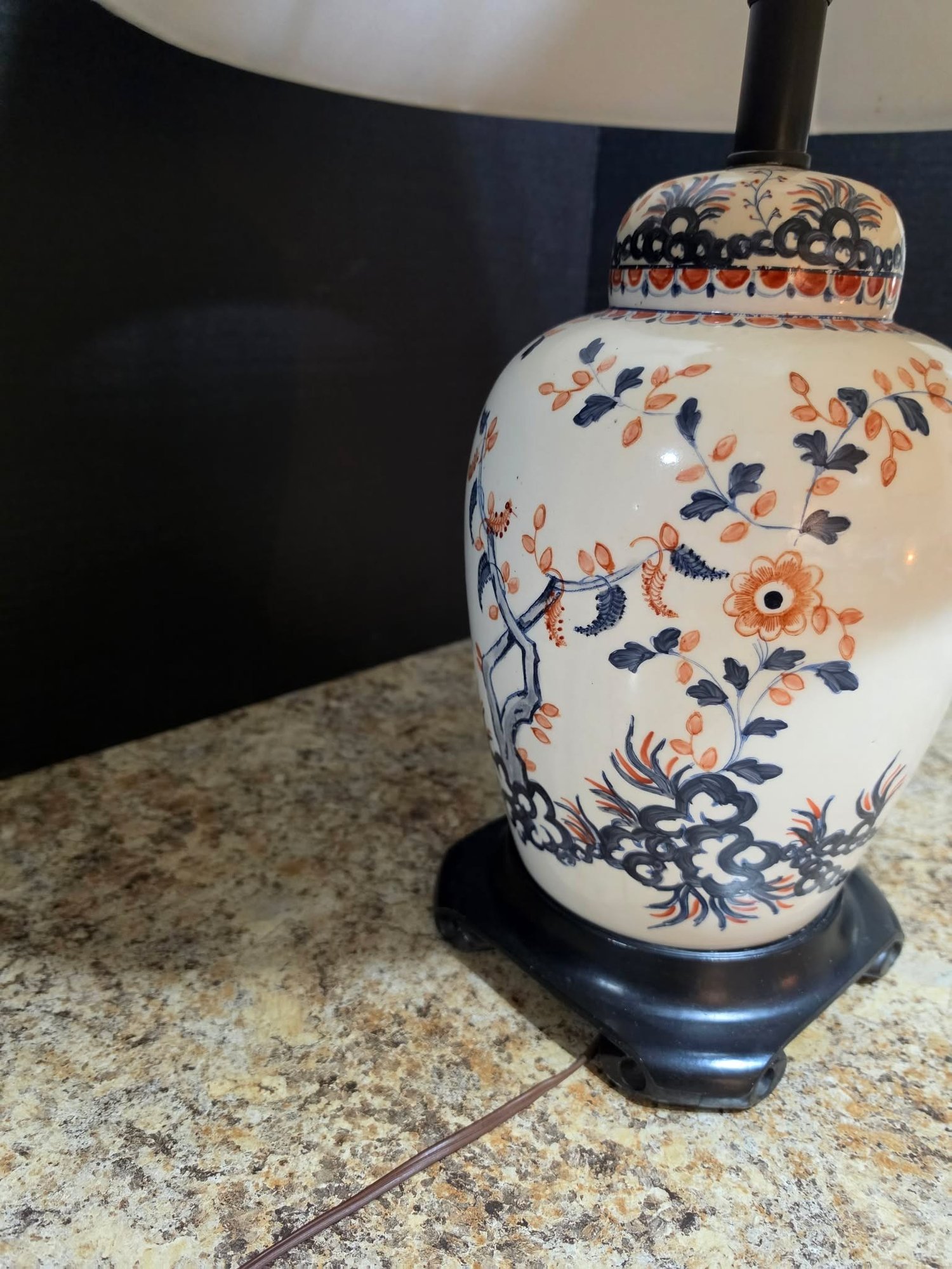 Imari porcelain table lamp is inspired by 17th-century Japanese designs from Arita. Measures 18w x 28h.