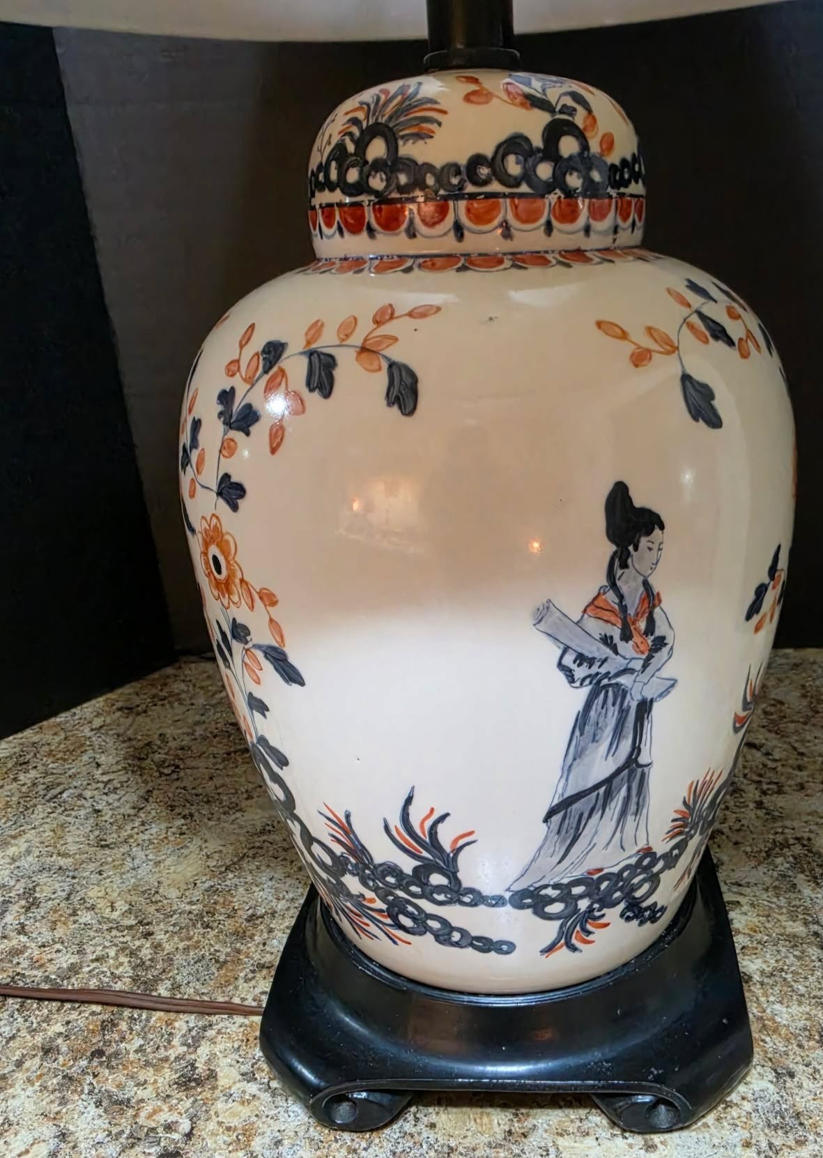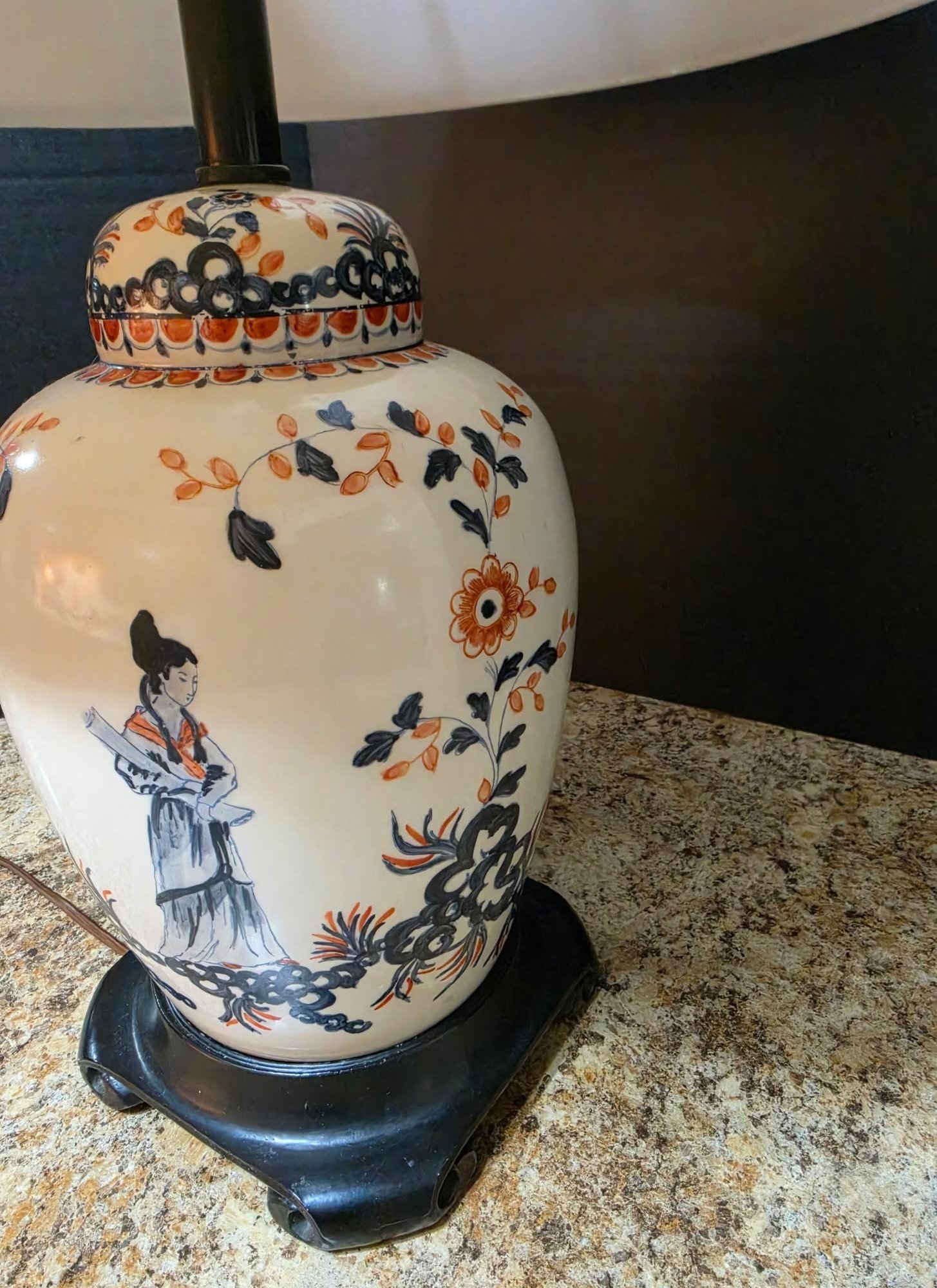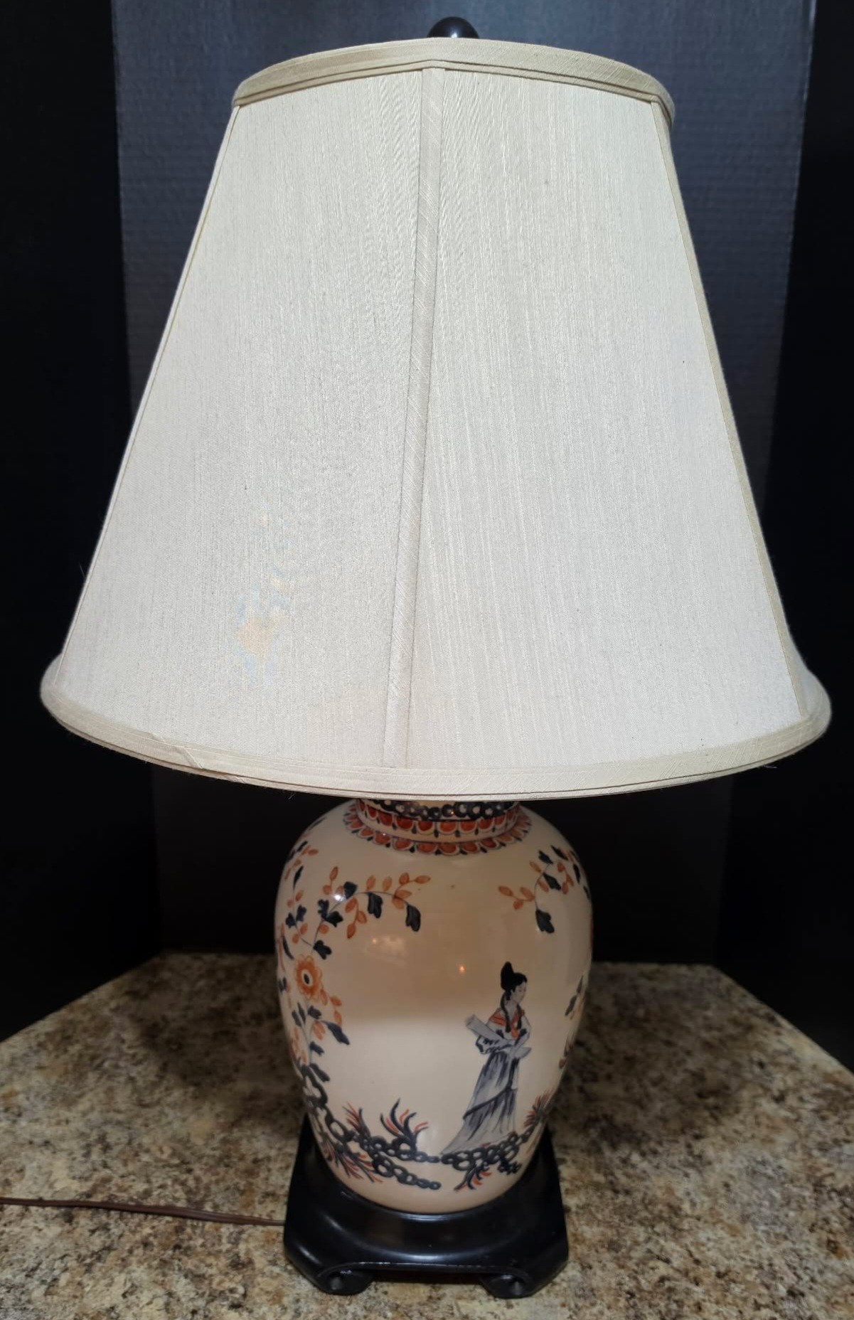 Imari porcelain table lamp is inspired by 17th-century Japanese designs from Arita. Measures 18w x 28h.
