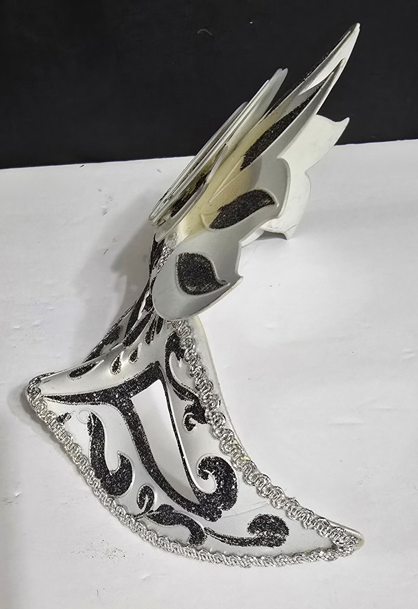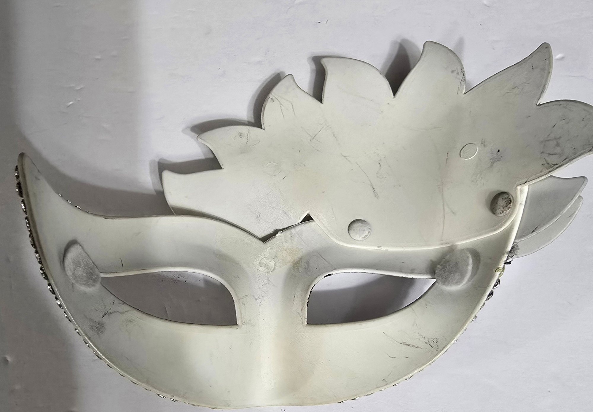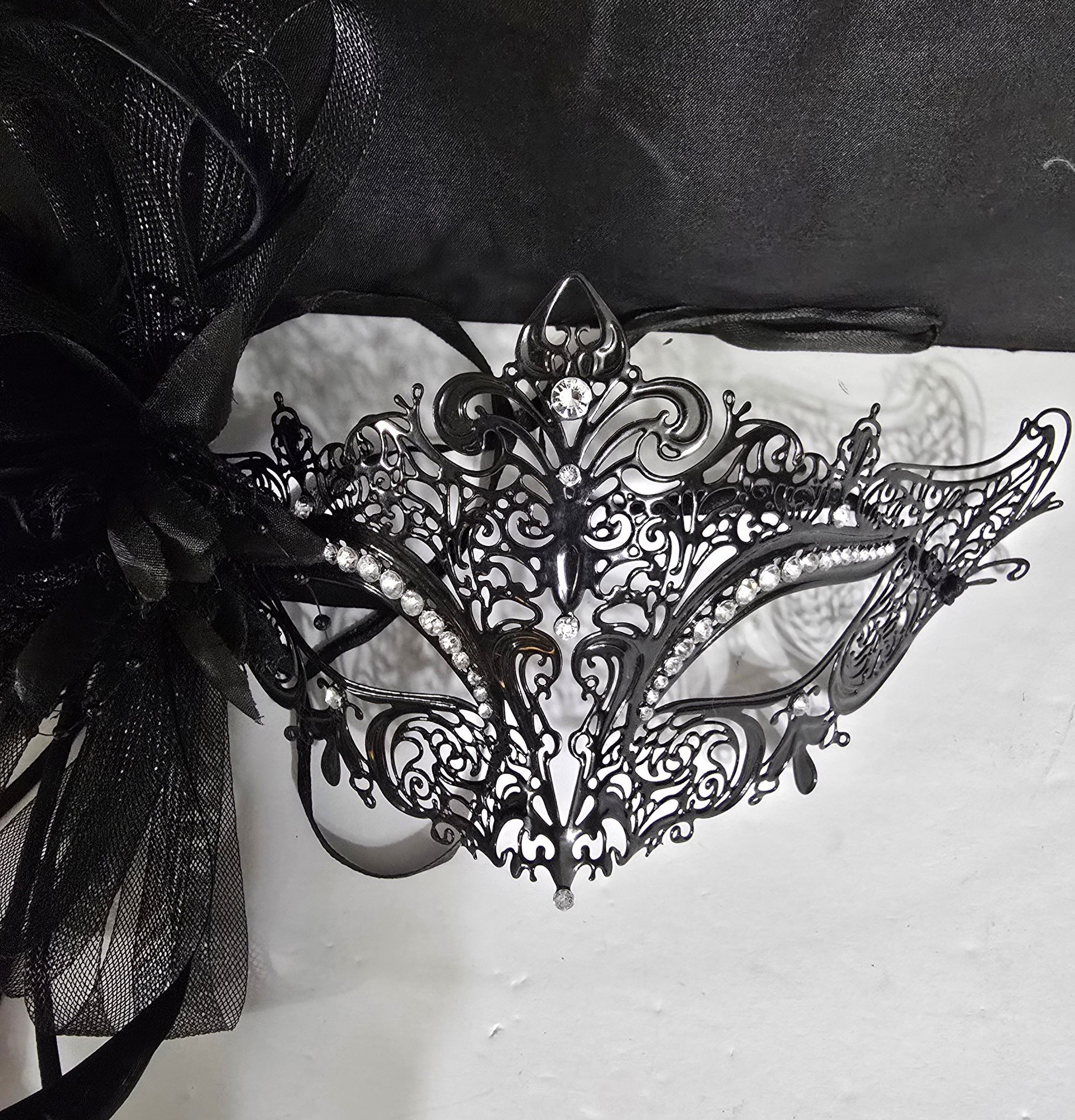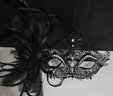 Masquerade Style masks. The black one ties, however the white does not have anyway of using it beside for decoration. Someone could alter it to work. Please see all pics for details.