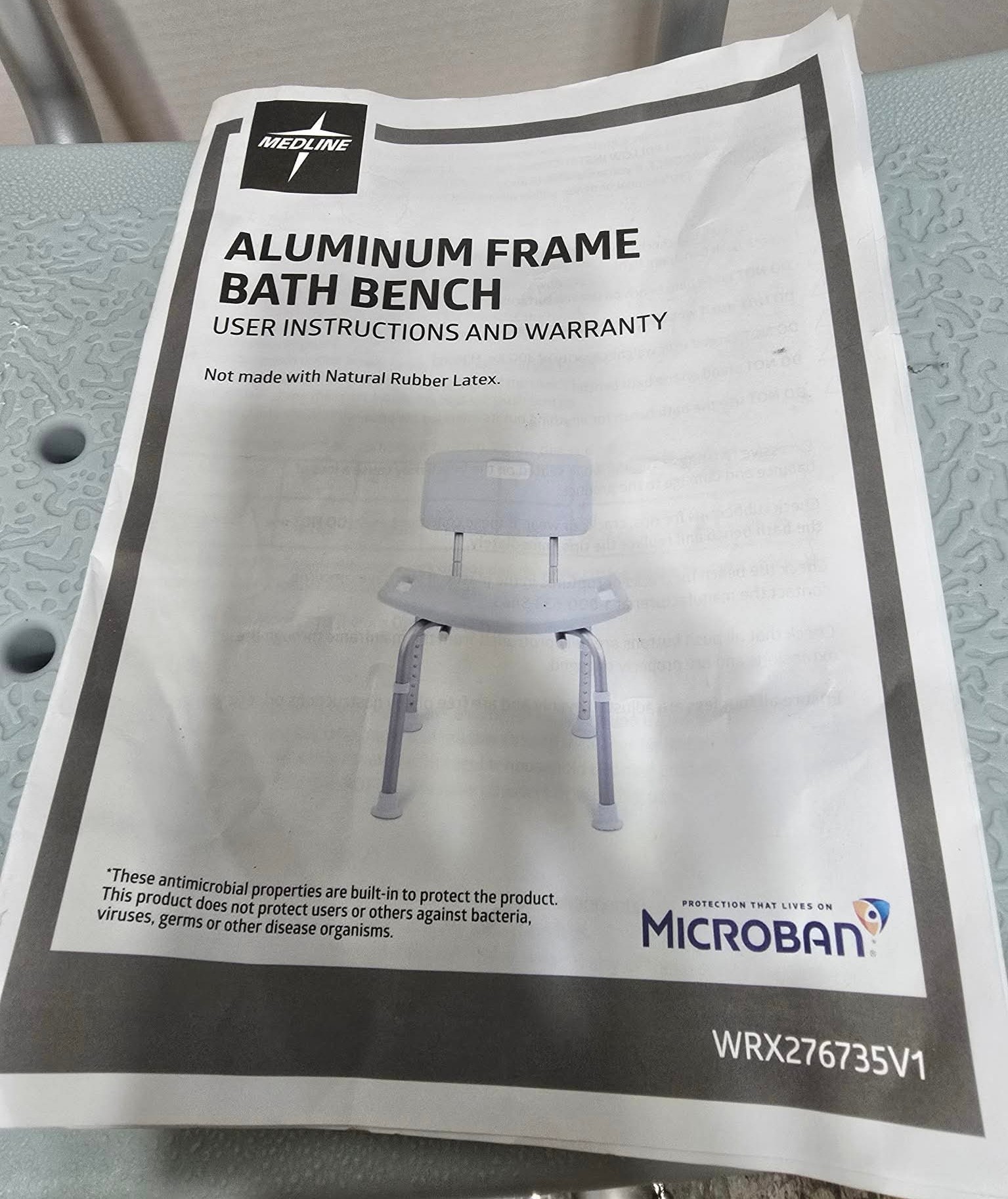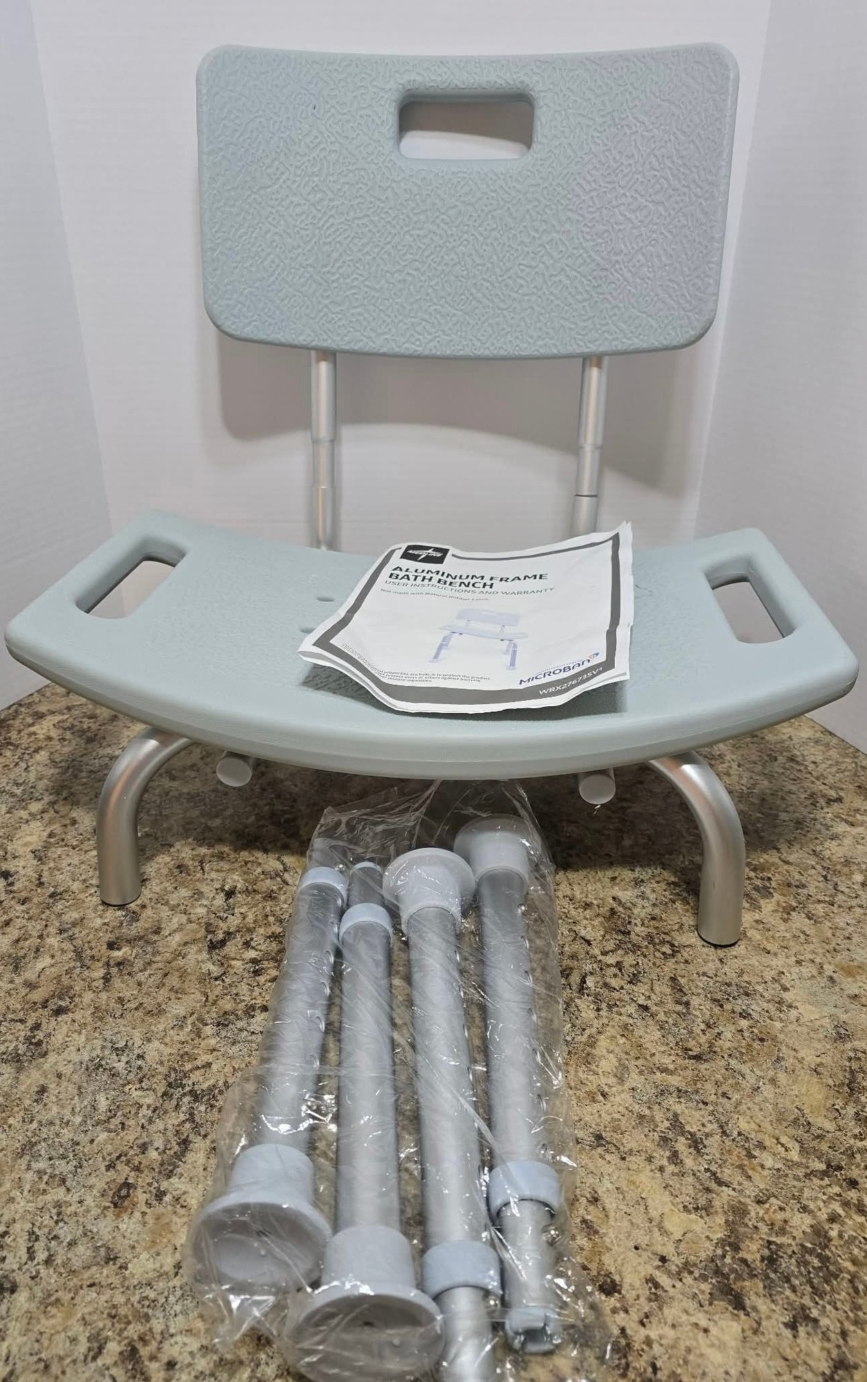 Medline aluminum frame bath bench unused. Adjustable legs.