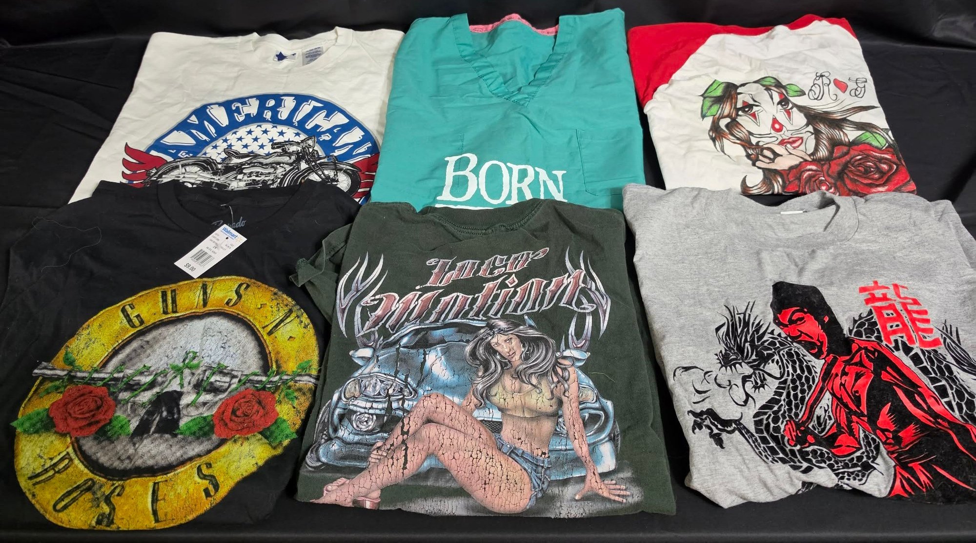 Mens XL & 2XL Graphic T-Shirts. Some staining on the white & red.