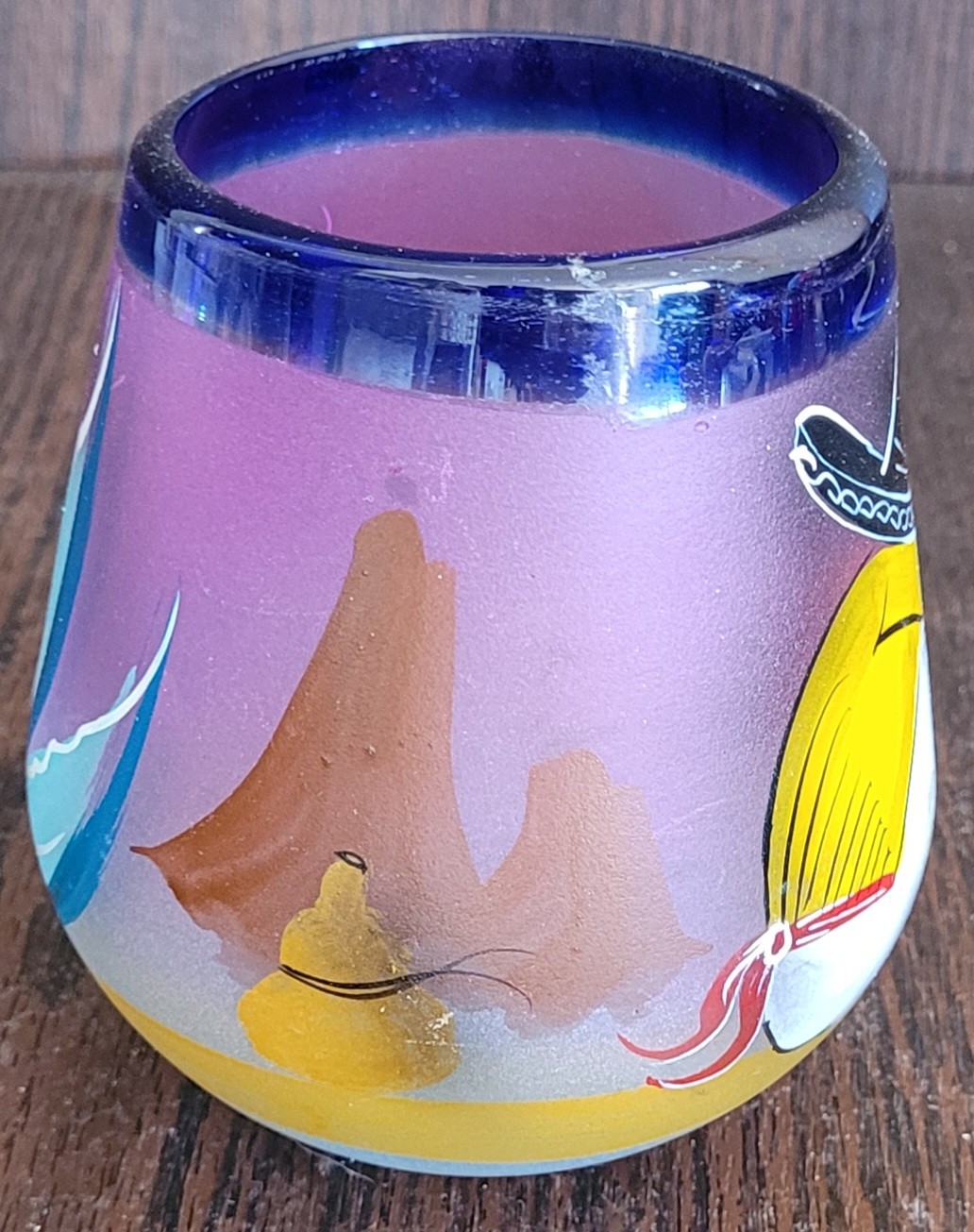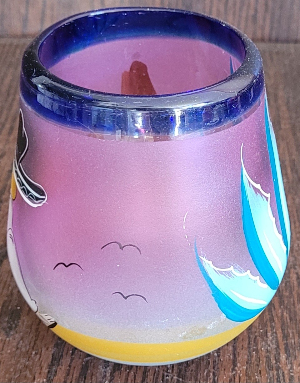 This would make a good candle holder. It measures 4.5" tall by 4" in diameter. See pictures for details.