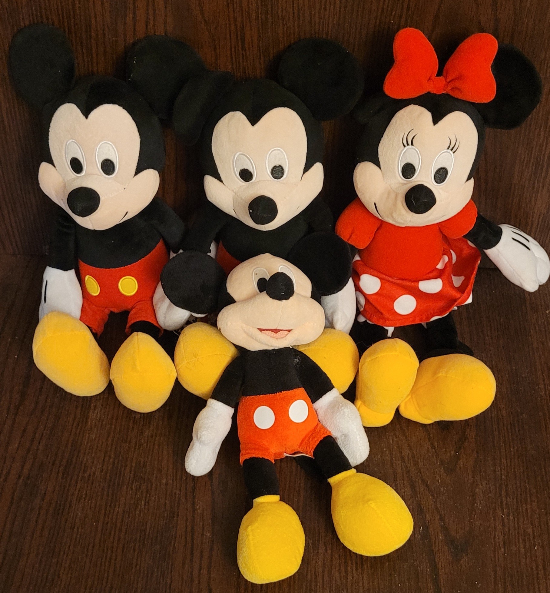 This lot comes with 3 Mickey Stuffies and one Minnie stuffy. The smallest Mickey does have a spot on the cheek. See pictures for details.