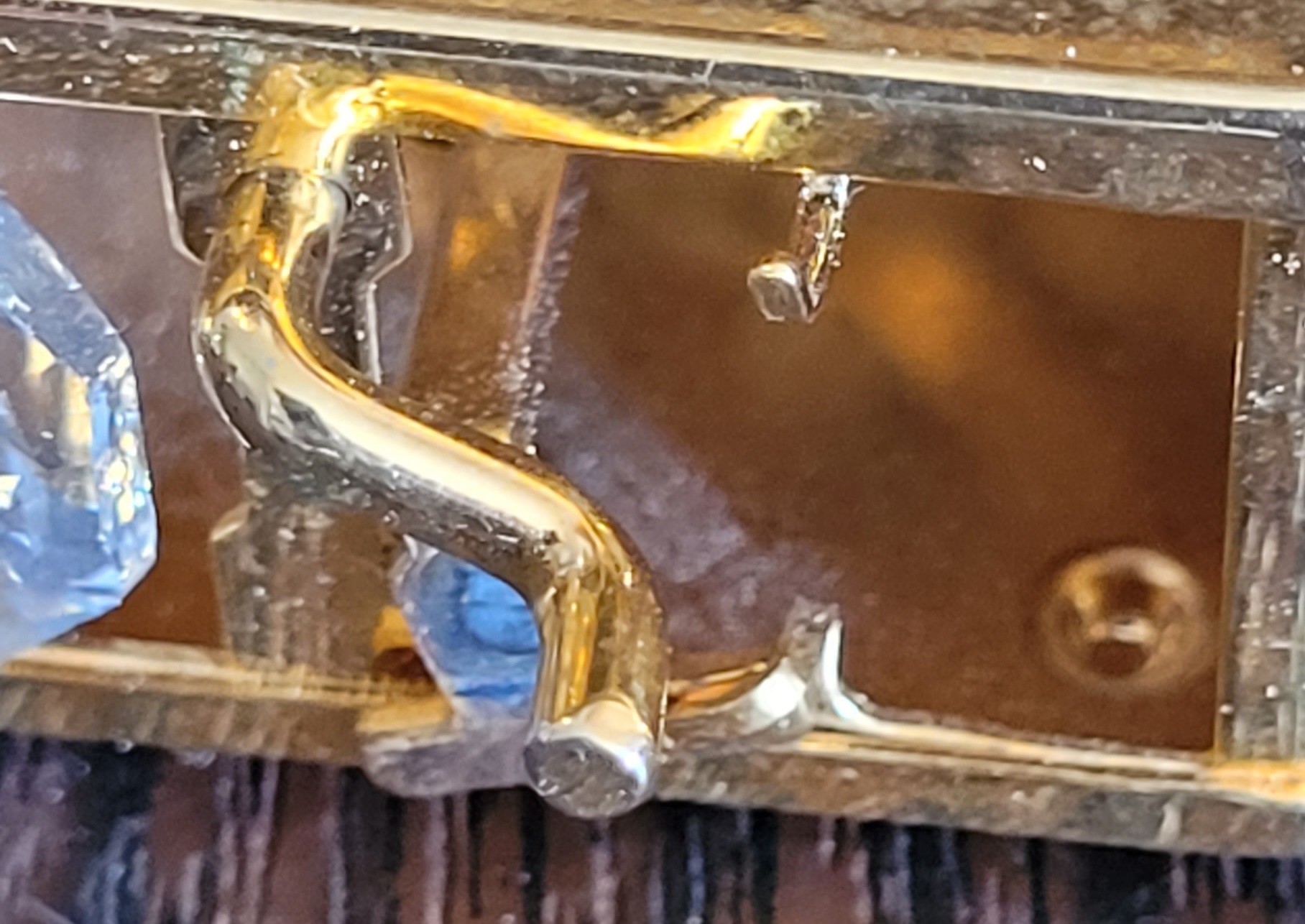 This measures 3.25" tall. One of the crystals is missing on the one side. See pictures for details.