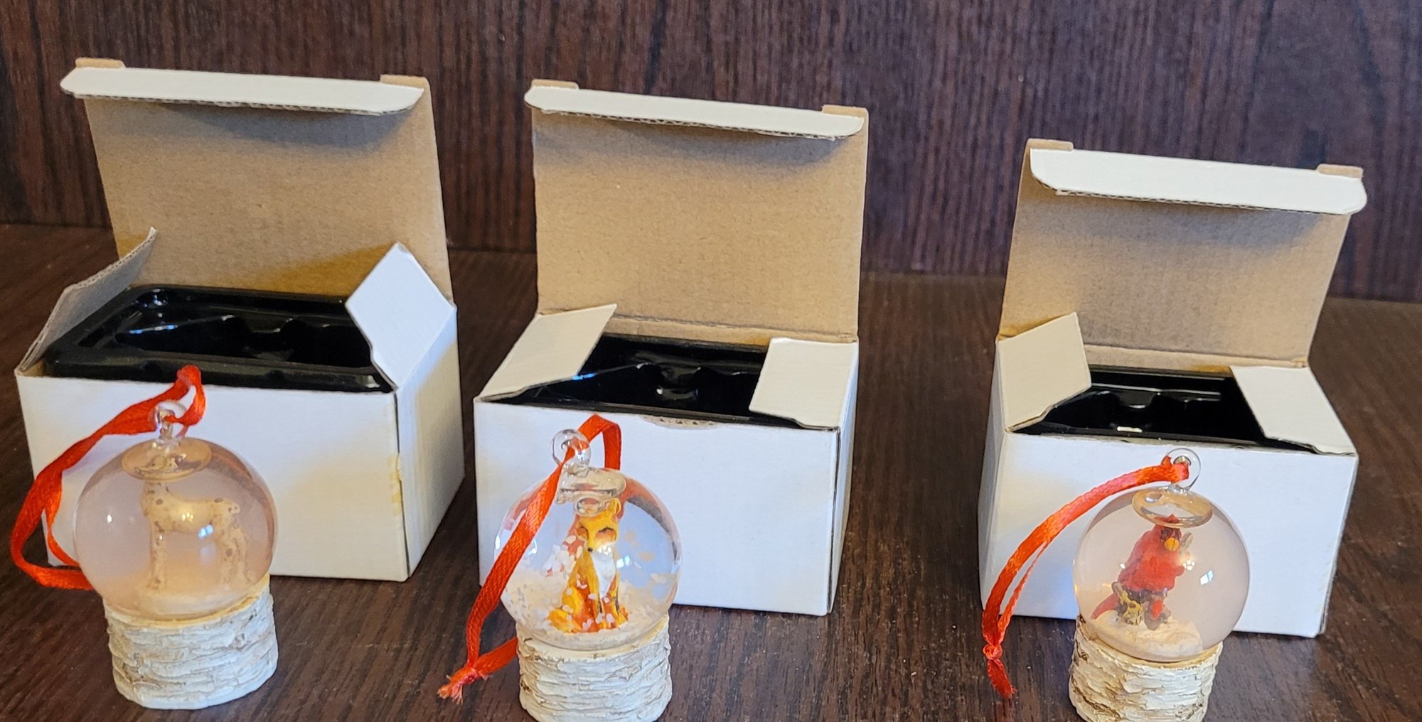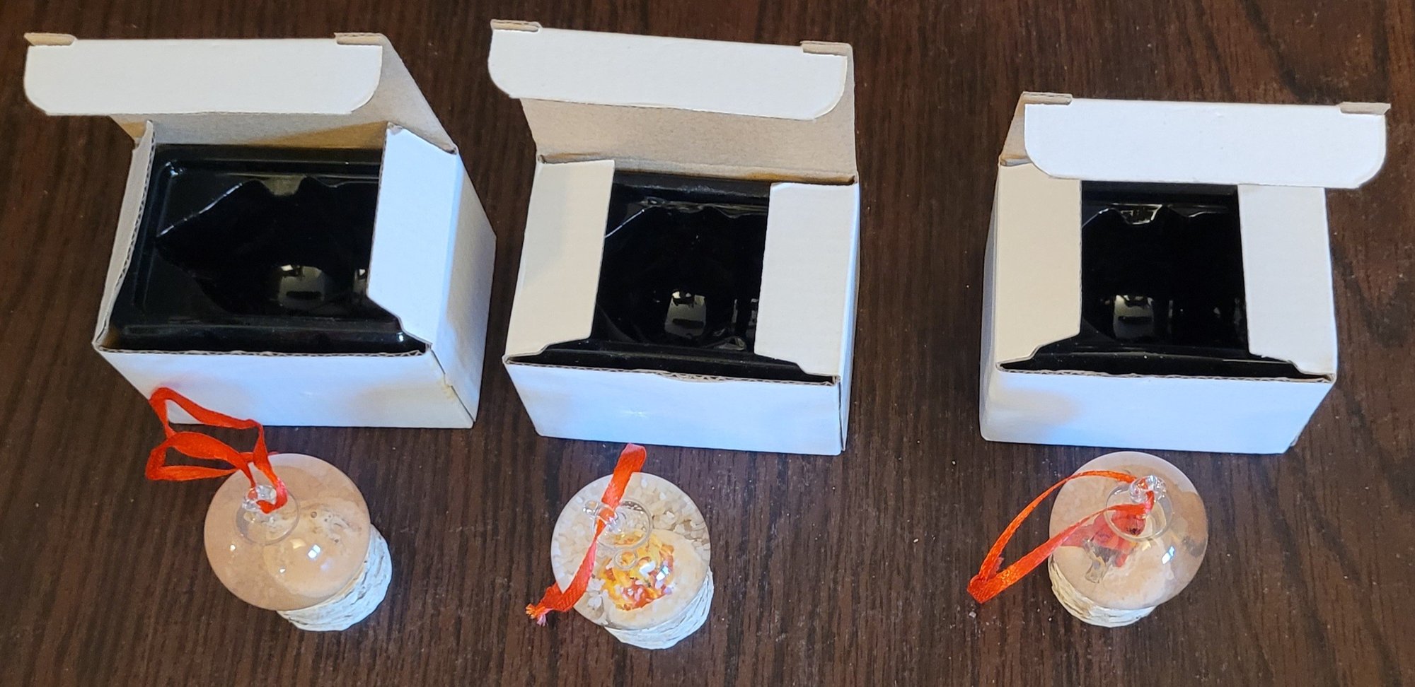 Each of these come in the original boxes and each one measures 2" tall. See pictures for details.