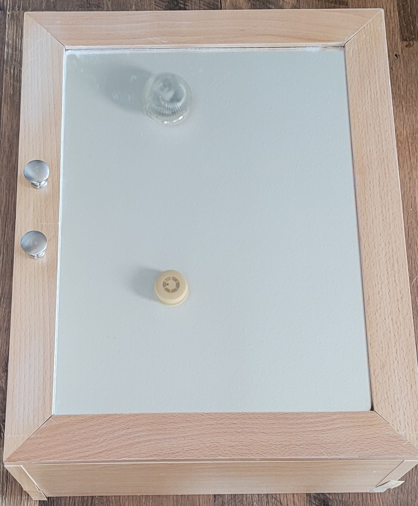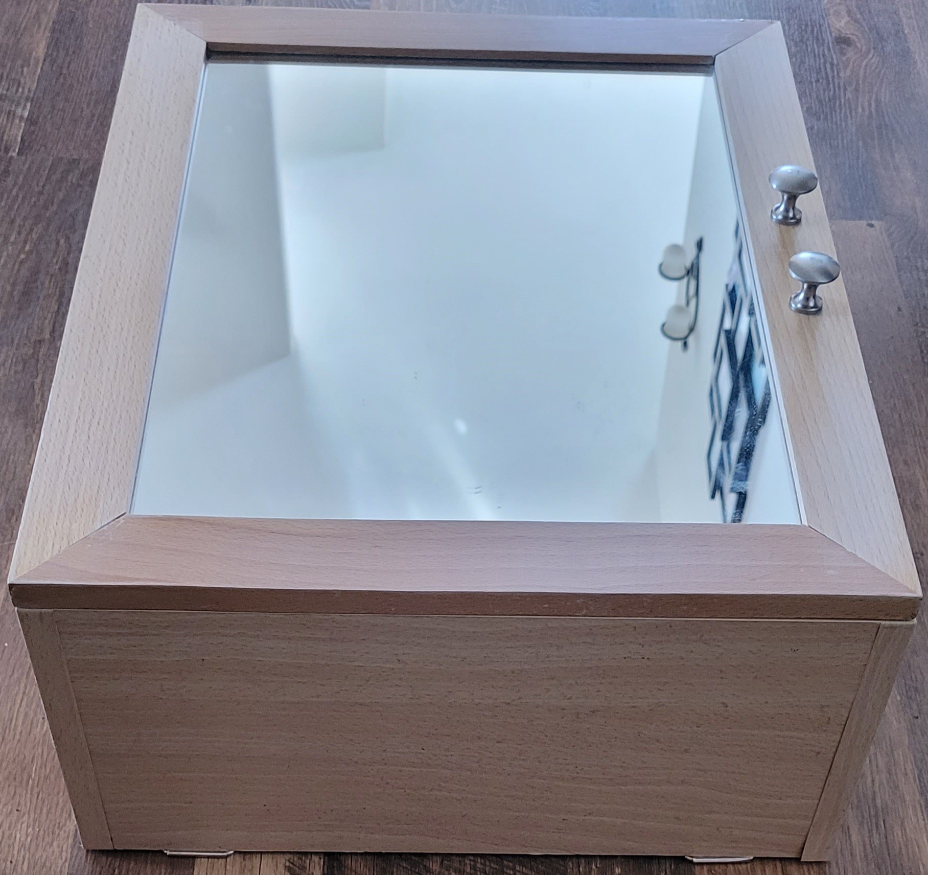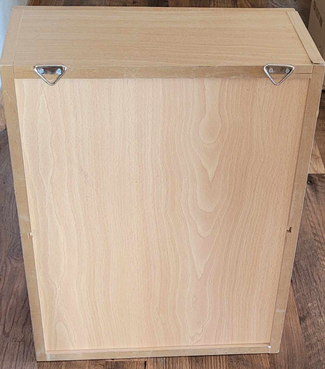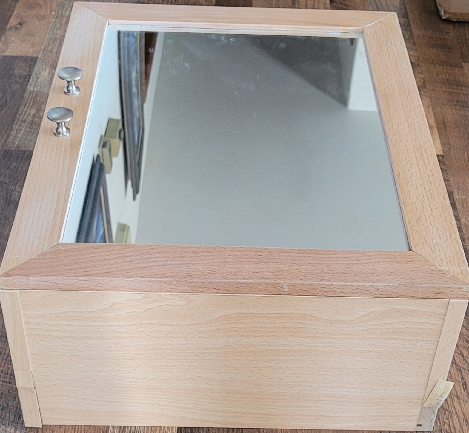 This measures 19" tall by 15" long by 7.25" deep. Some of the edging is peeling off would need repair. See pictures for details.