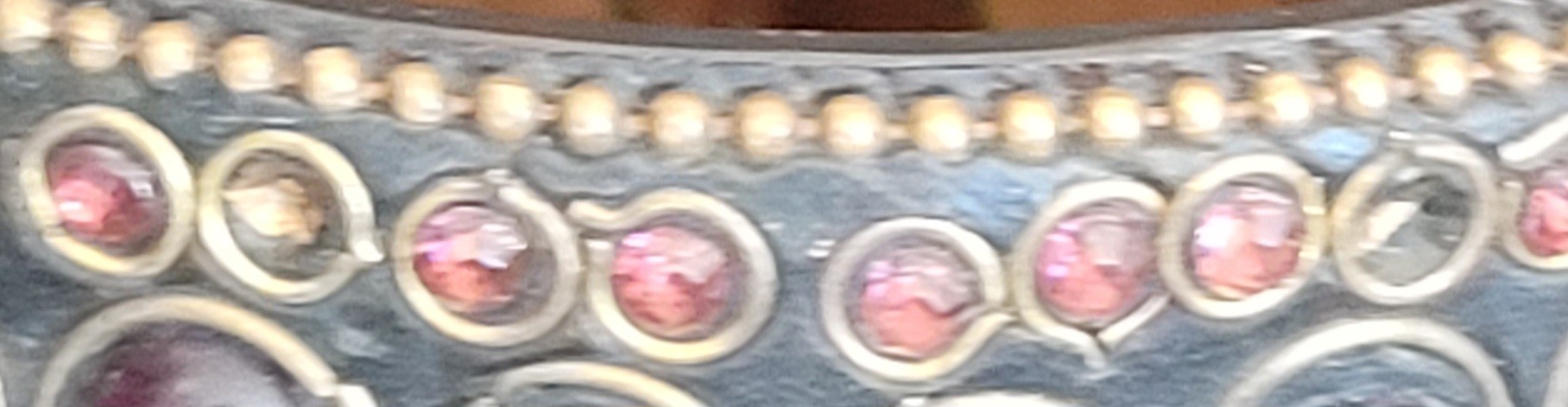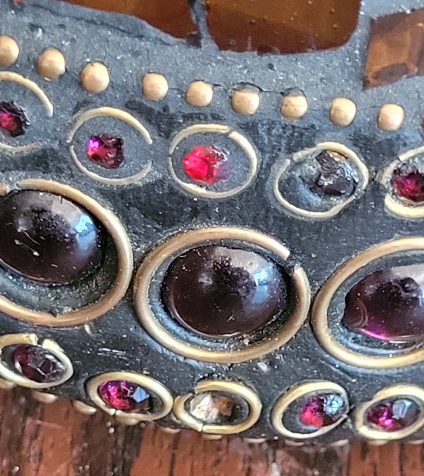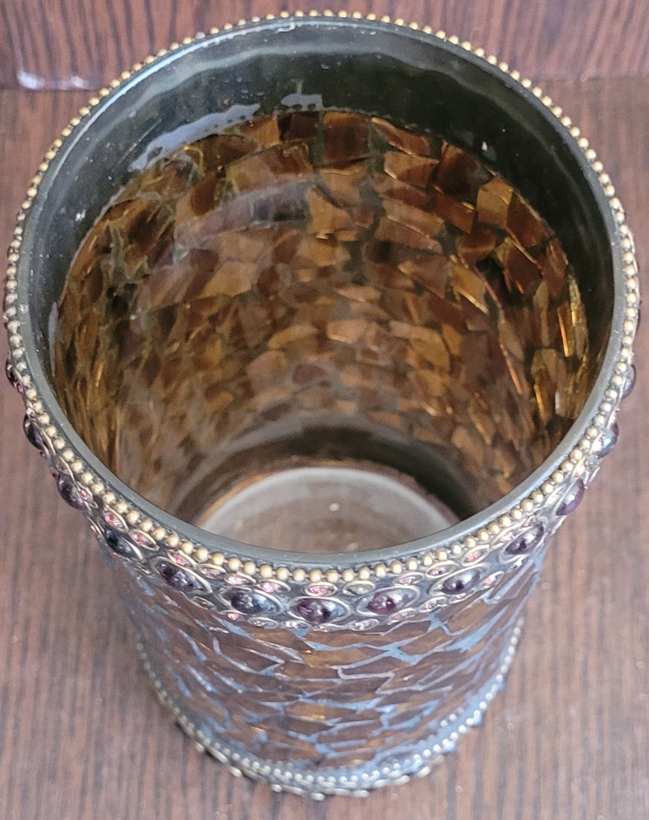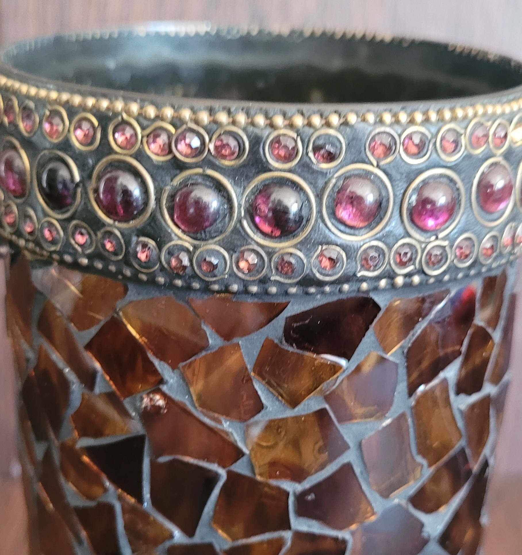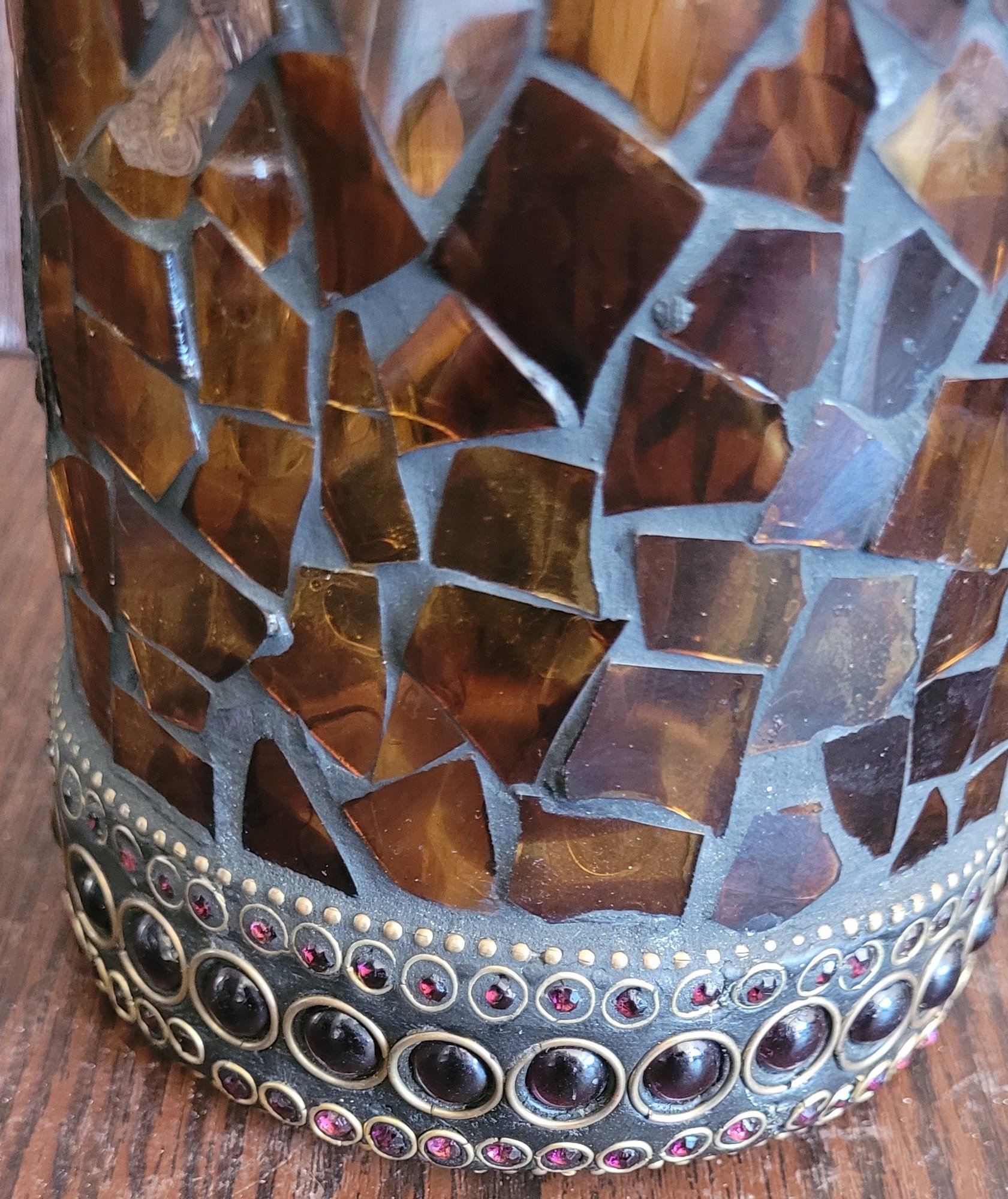 This measures 8" tall by 4" in diameter. It does have some missing jewels on the top and bottom. See pictures for details.