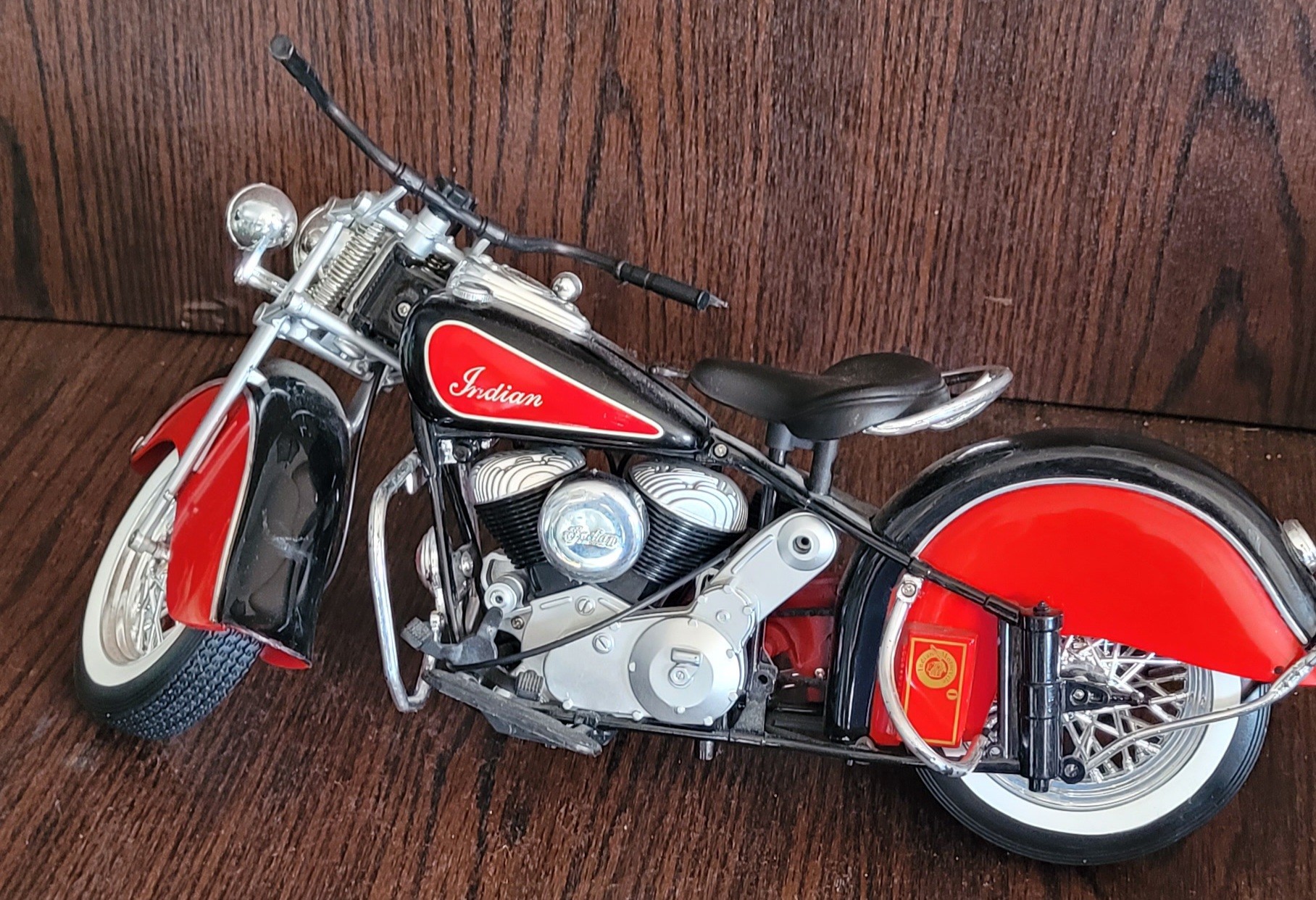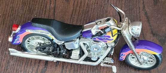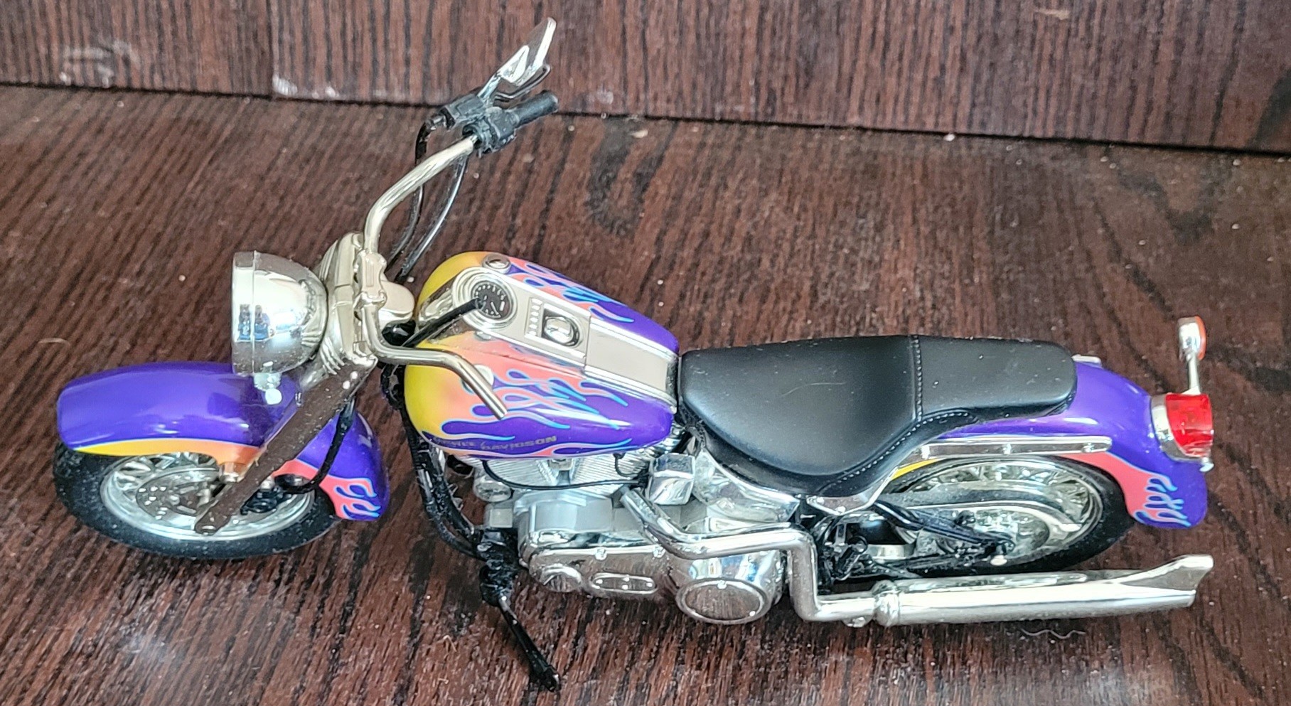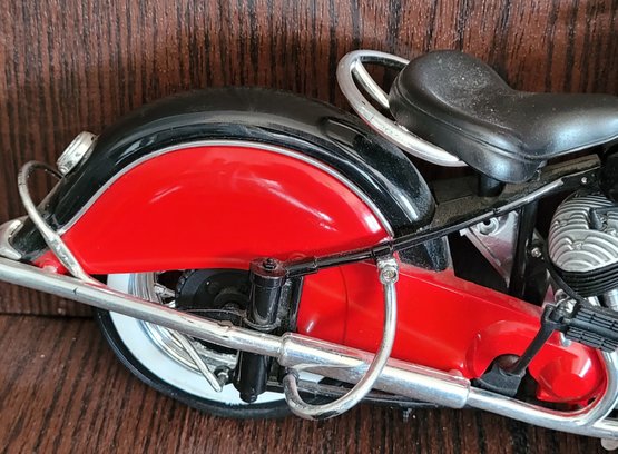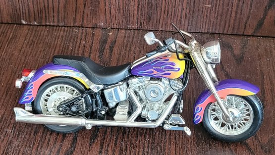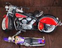 The smaller one is Die-Cast and is missing something on the handle bars and broken tail light and the other one is plastic. See pictures for details.