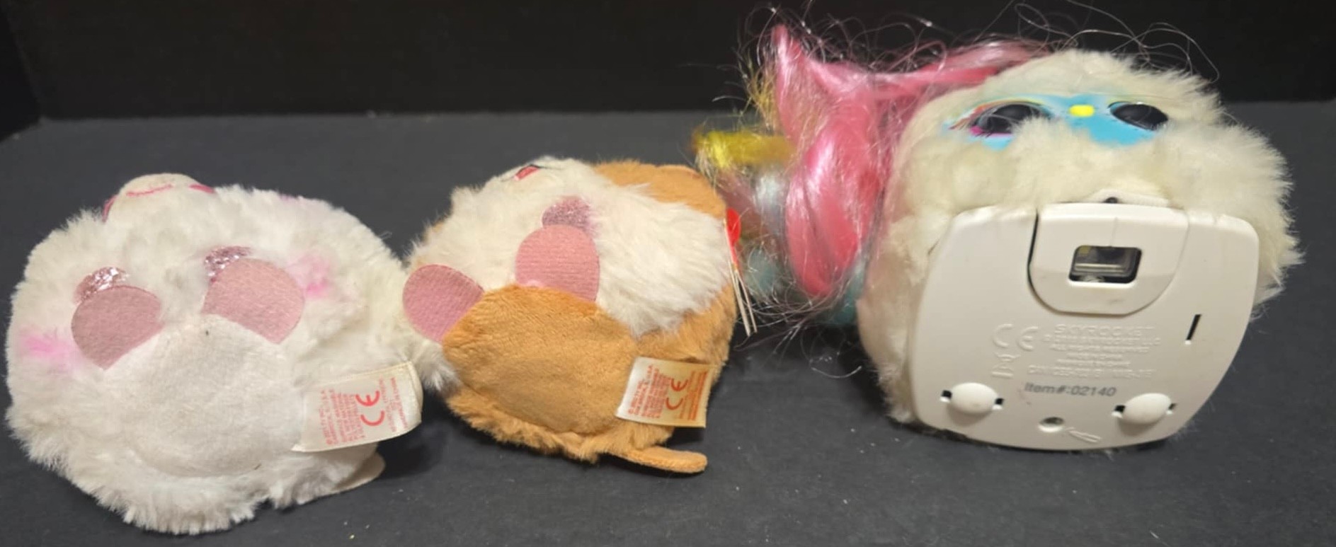 Pomsies Lumies interactive plush toy, and Ty Beanie Balls (Puffies) plush toy.