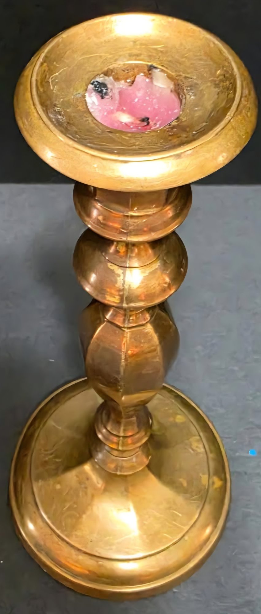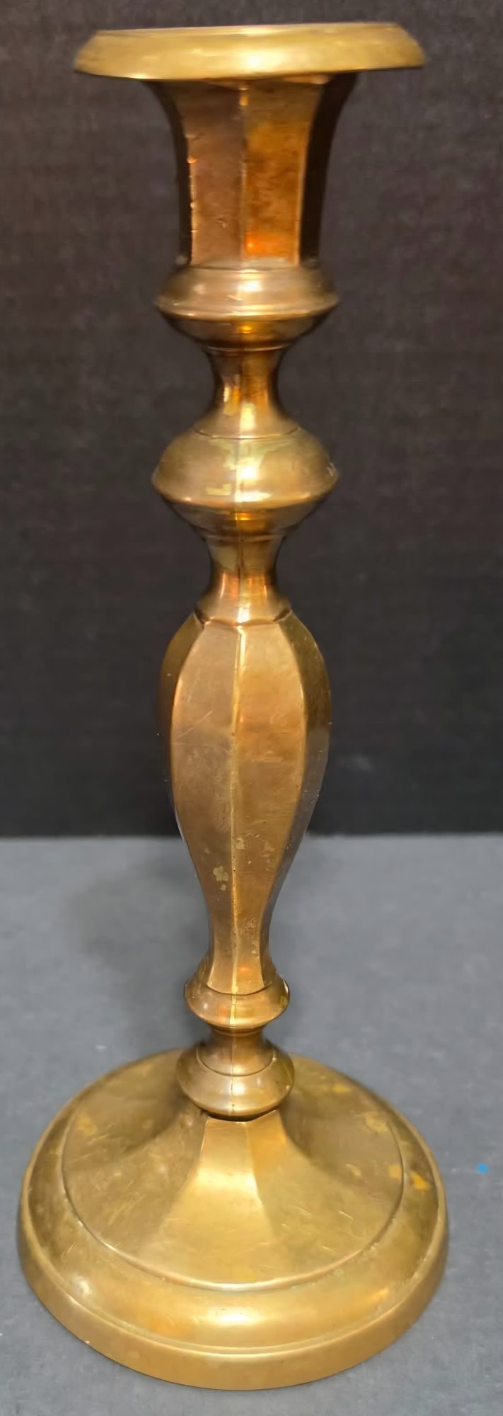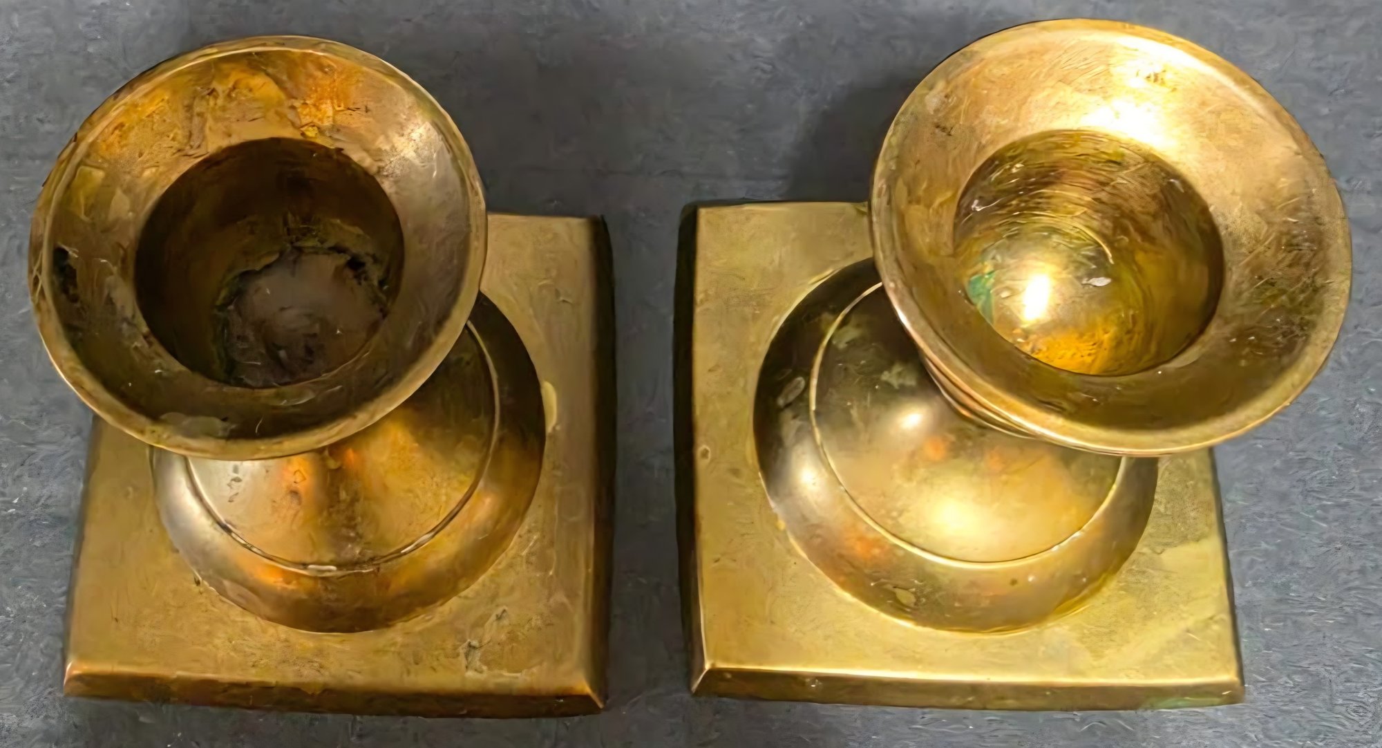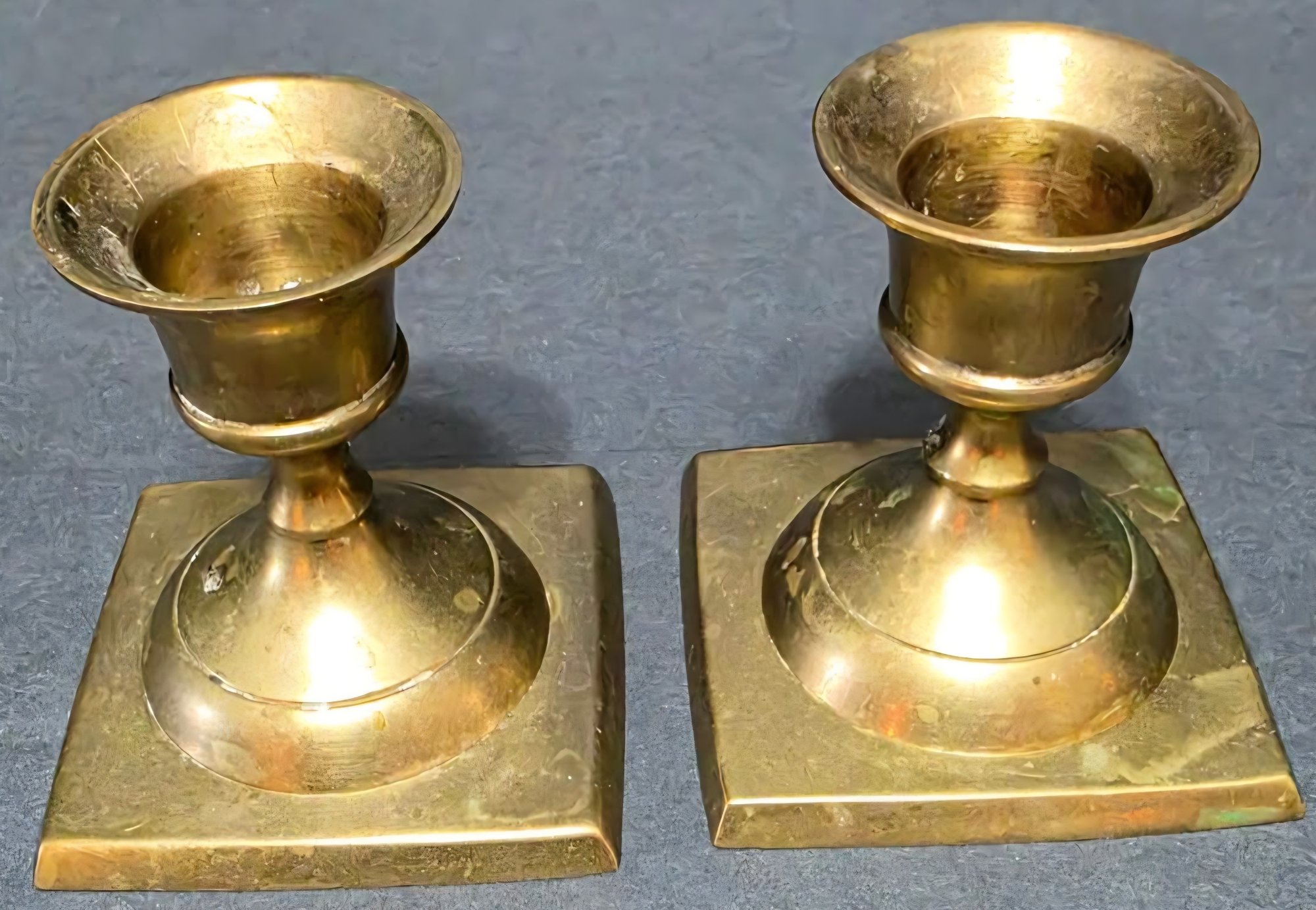 One large and two smaller vintage brass candle holders . Need cleaned.