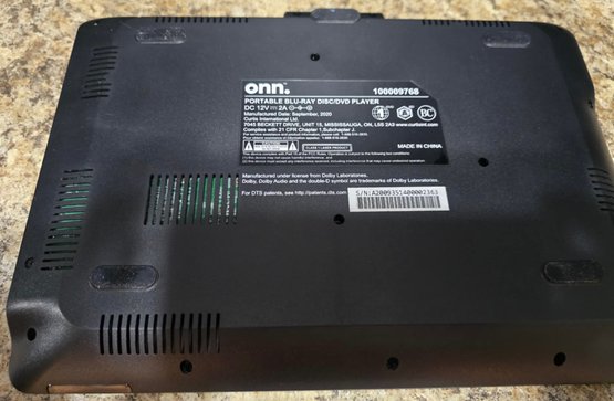 Onn. 11" portable Blu-ray and DVD media player. With power cord. Tested and works.