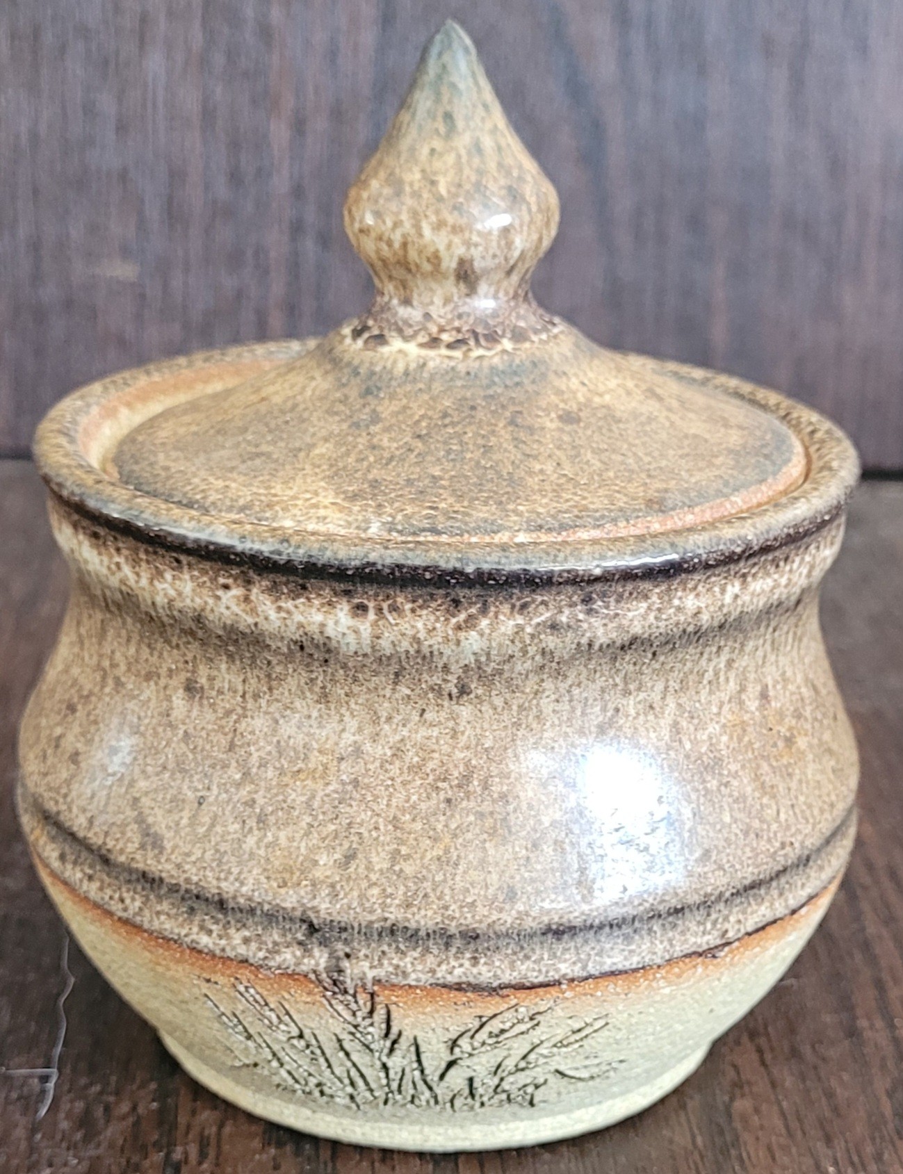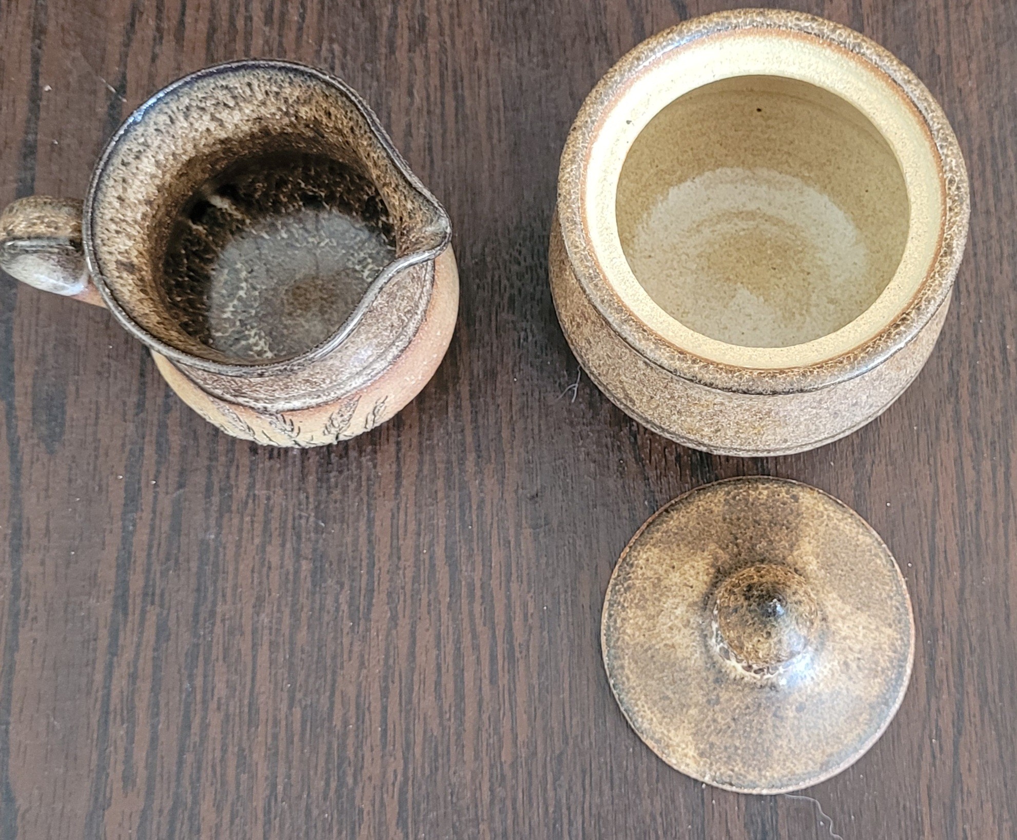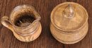 One measures 4.5" tall by 3.75" in diameter and the other one measures 2.75" tall by 4" long by 3" wide. It is signed on the bottom. See pictures for details.