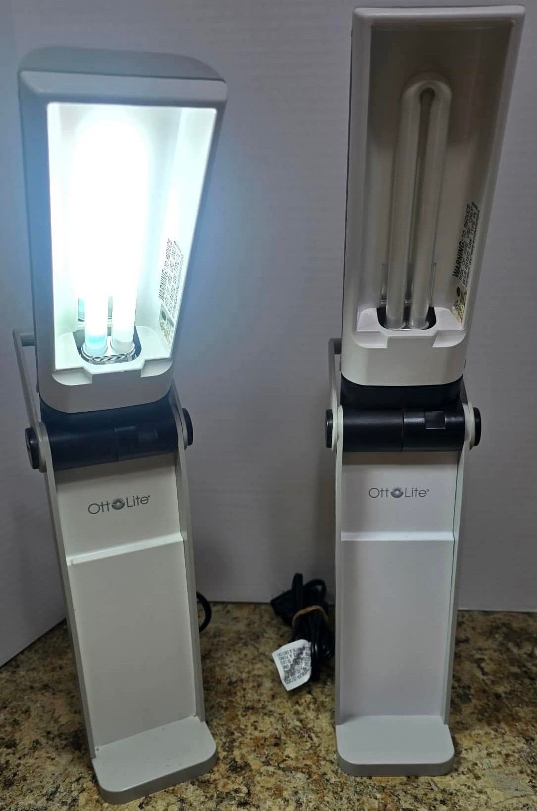 OttLite foldable portable task lamps, both work. Model OTL13TCG. Measures 3.5 x 3 x 12 closed and 19.5 opened.