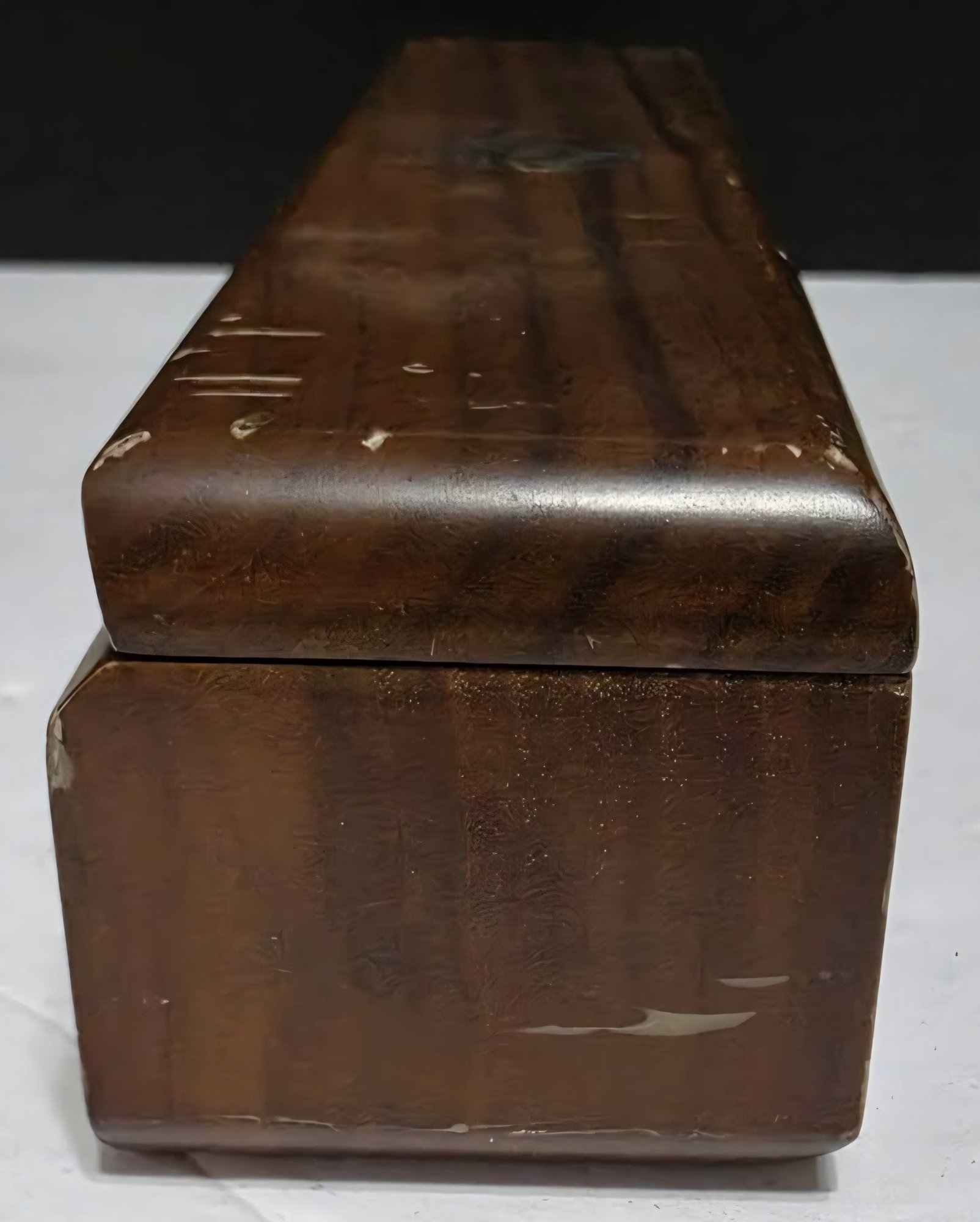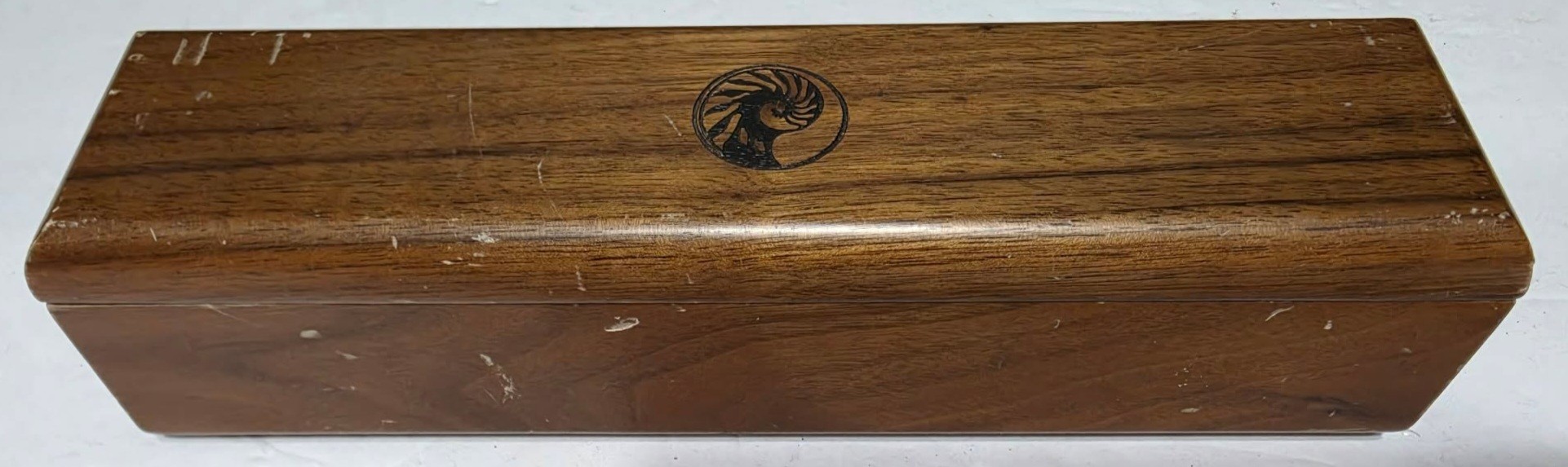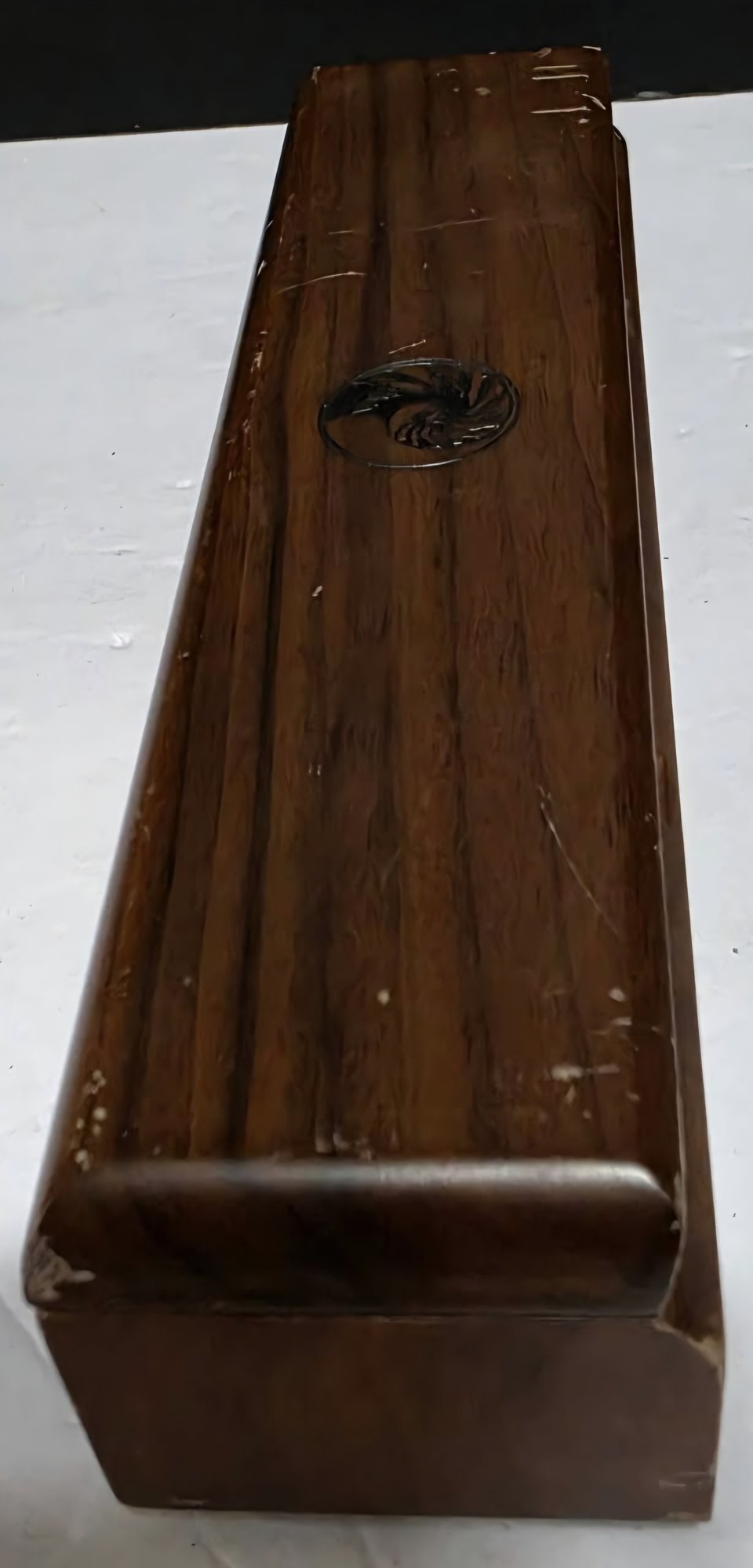 Now & Zen digital alarm clock featuring a natural wood case and a metal acoustic chime bar. Untested. No powercord. Measures 9 x 2 x 2.5.