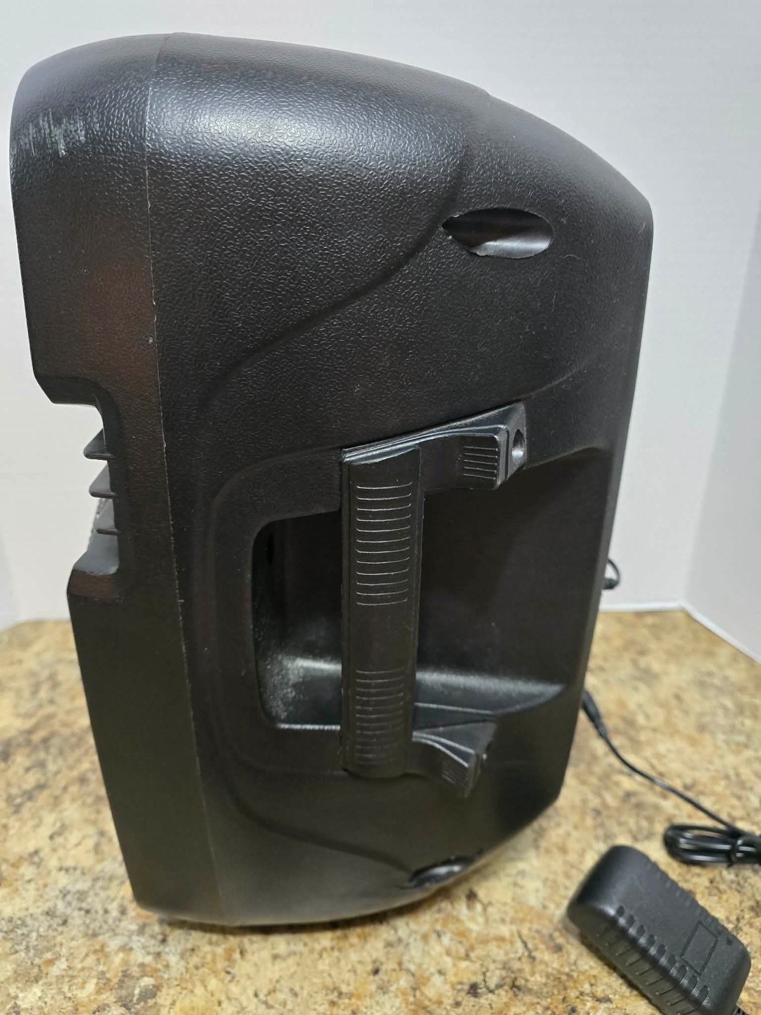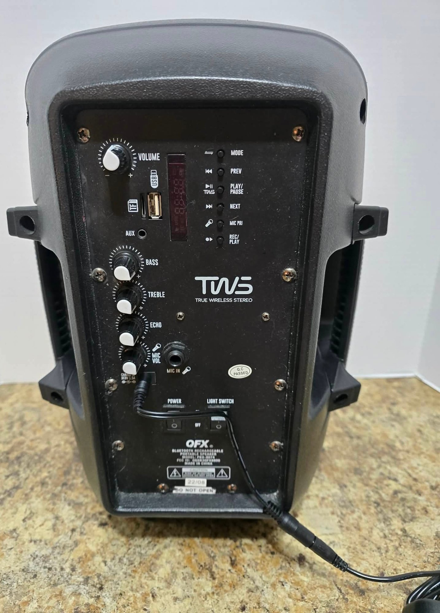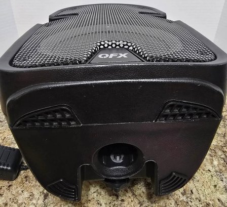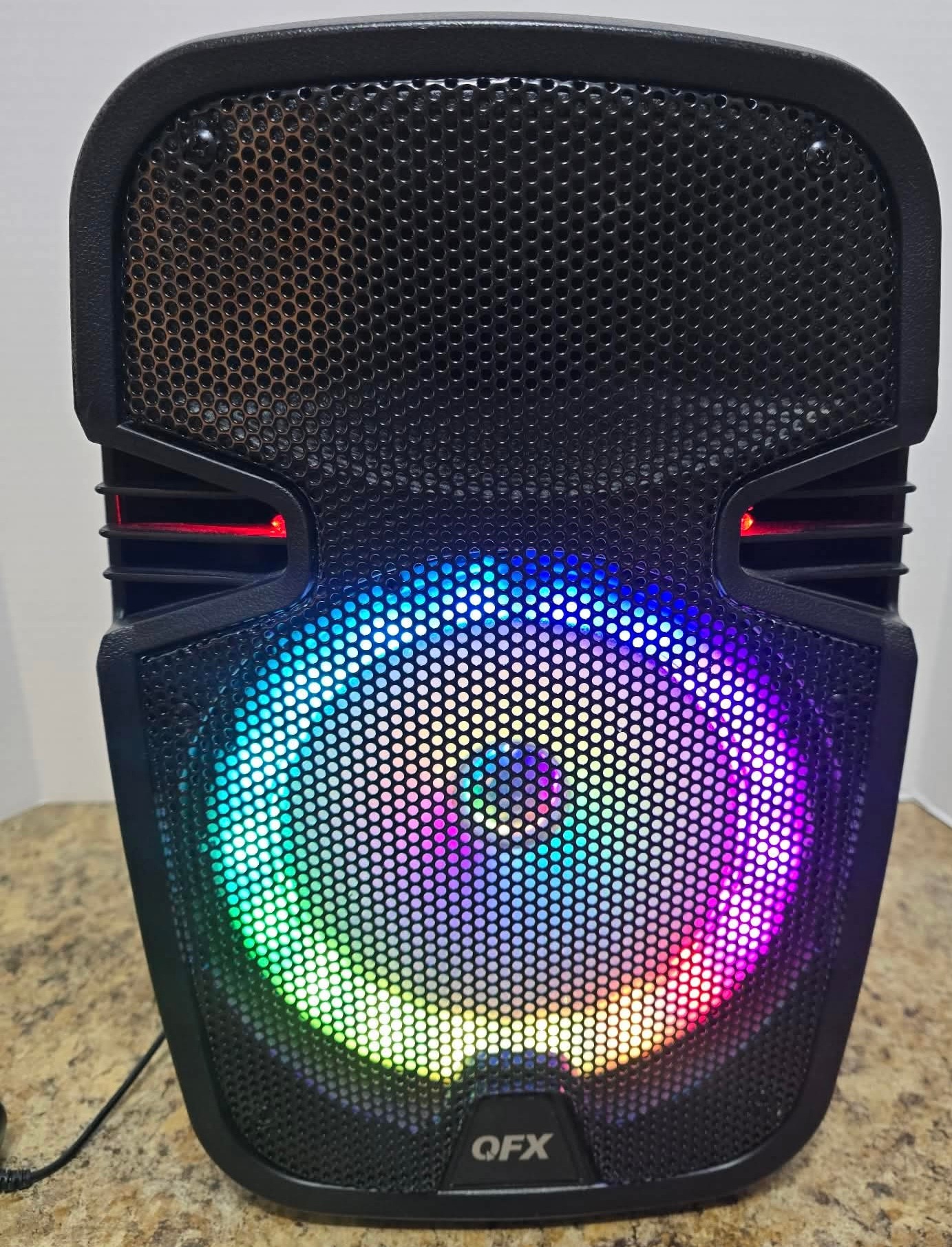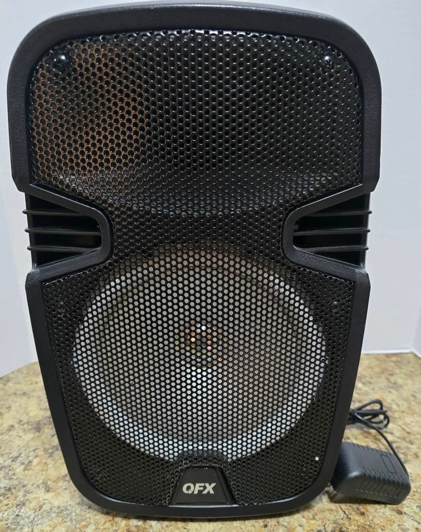 QFX 8-inch Rechargeable Bluetooth Party Speaker with power cord. Comes as pictured only.