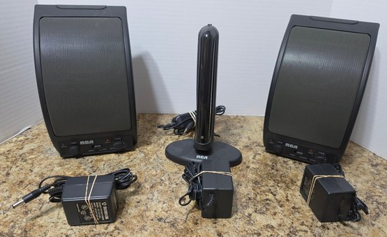 RCA 900MHz Wireless Speaker System, specifically model WSP150. turns on. Untested. Comes as pictured only.