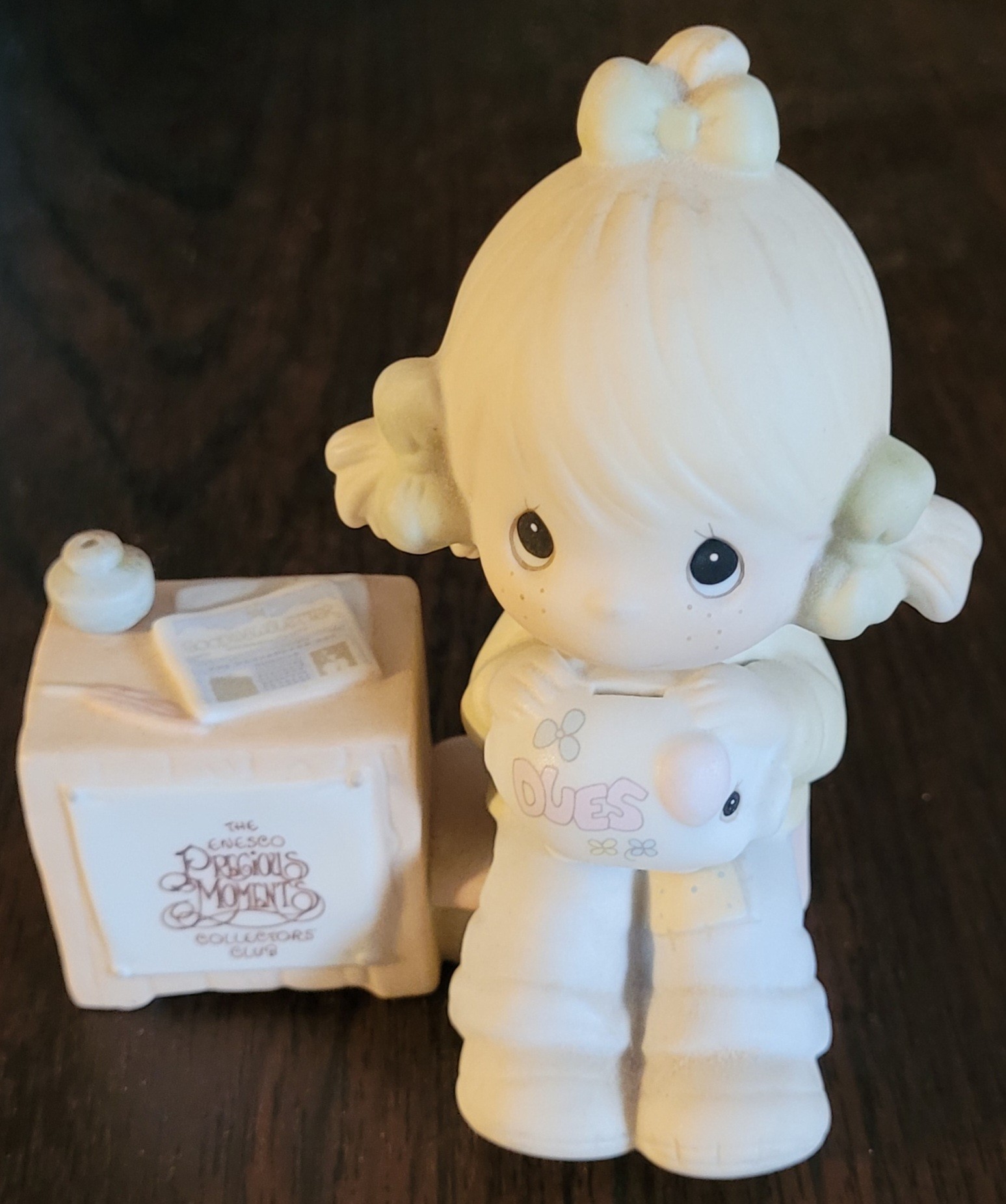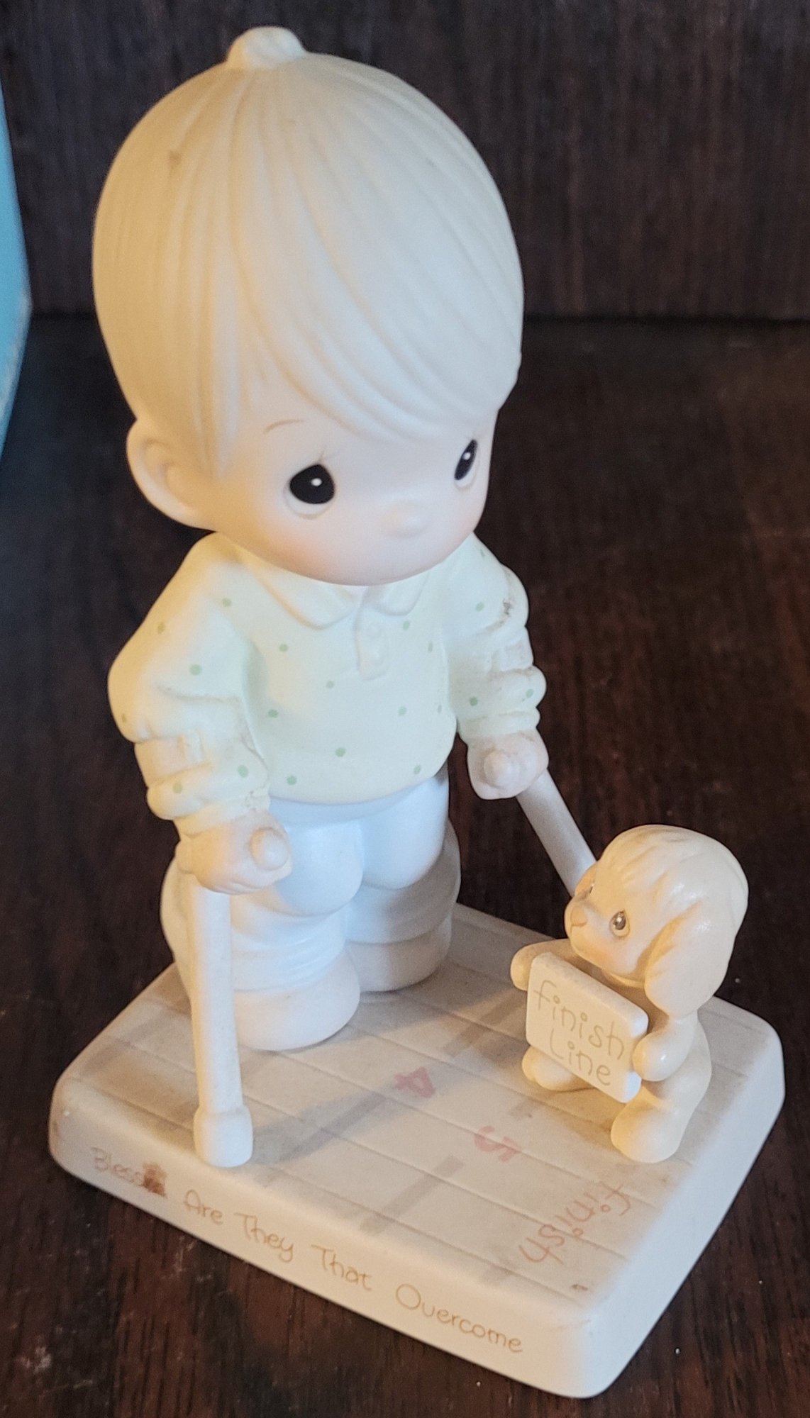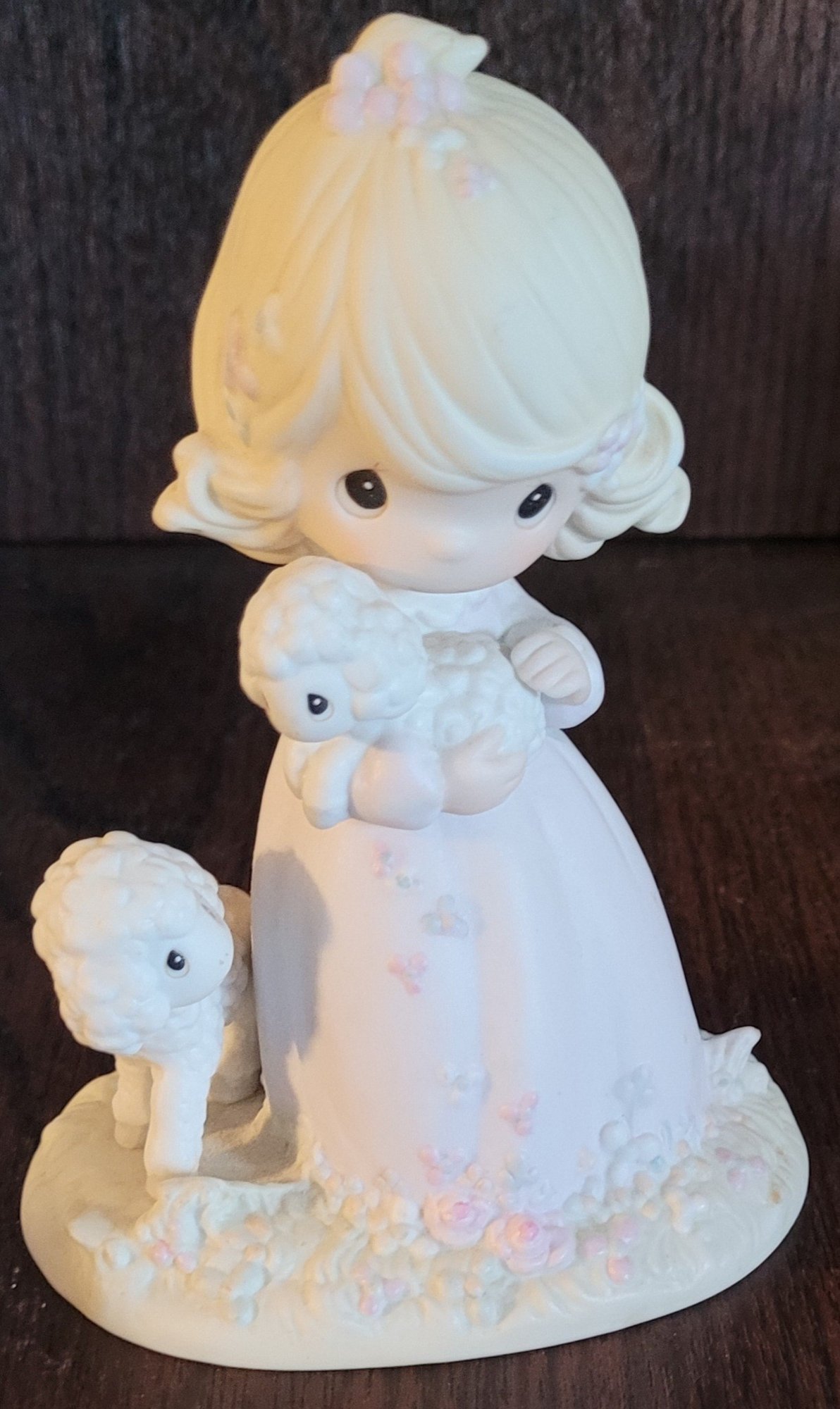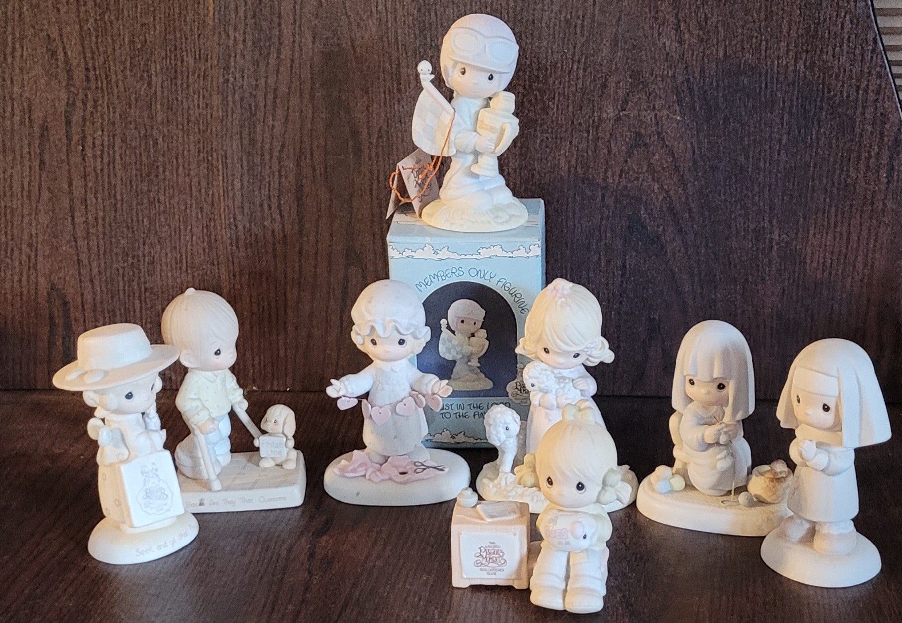 This lot comes with 8 different Precious Moments figures. One of them does come in the original box. They do need to be cleaned up a little. See pictures for details.