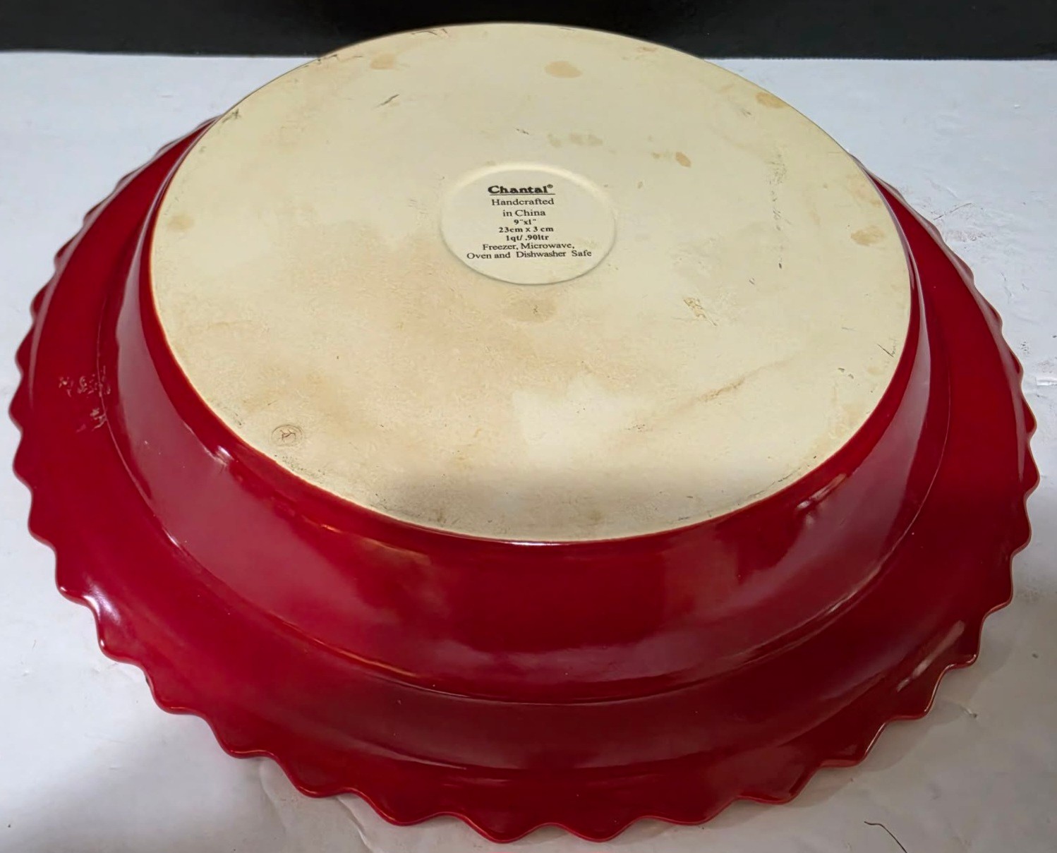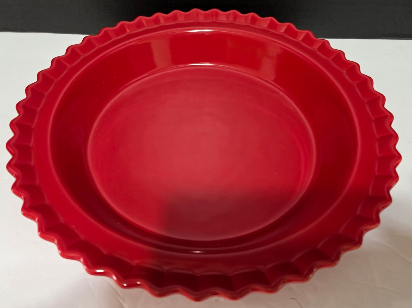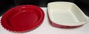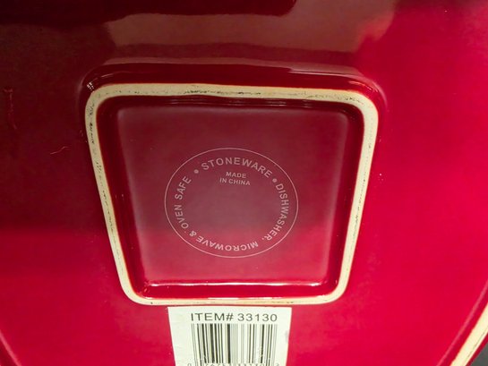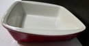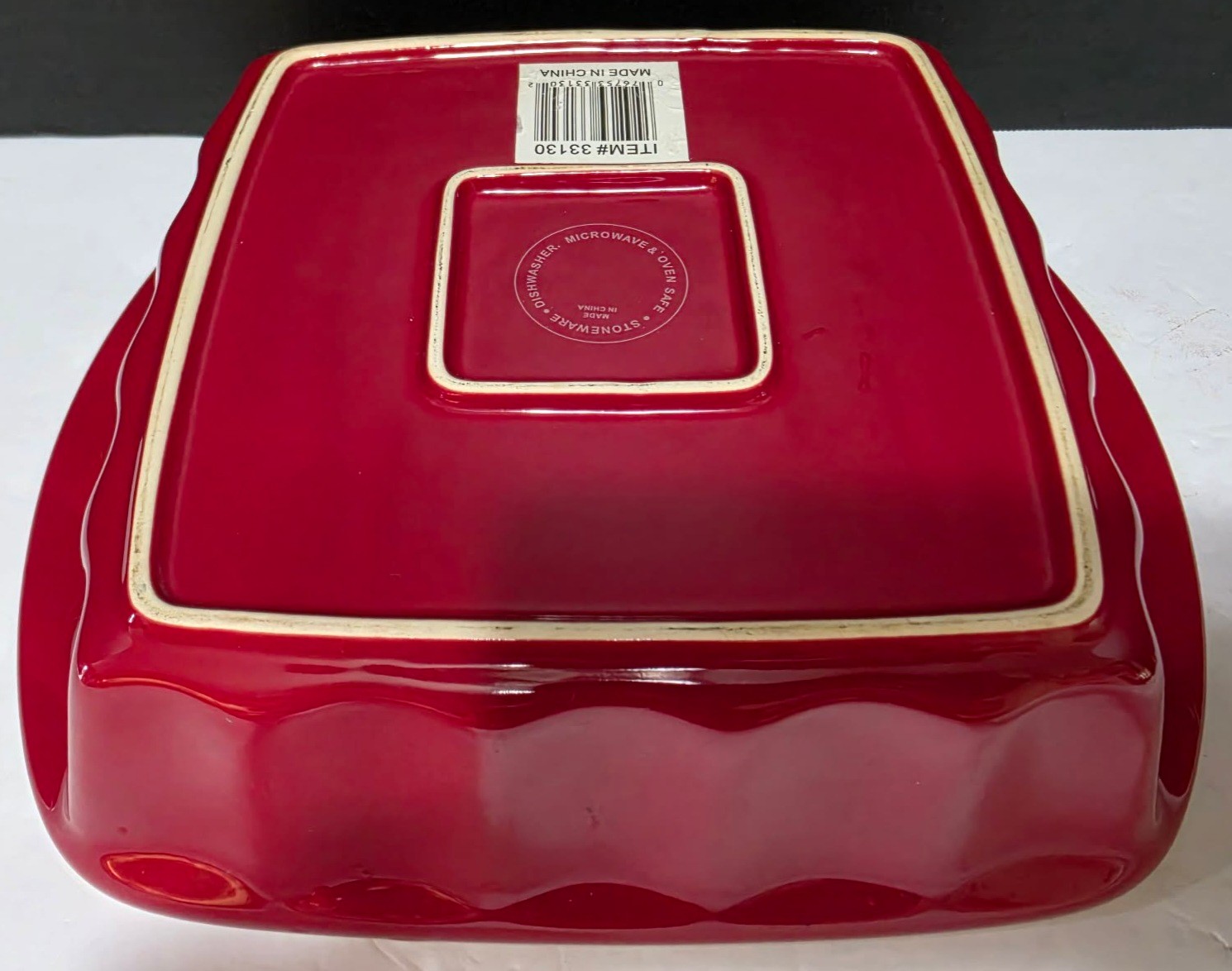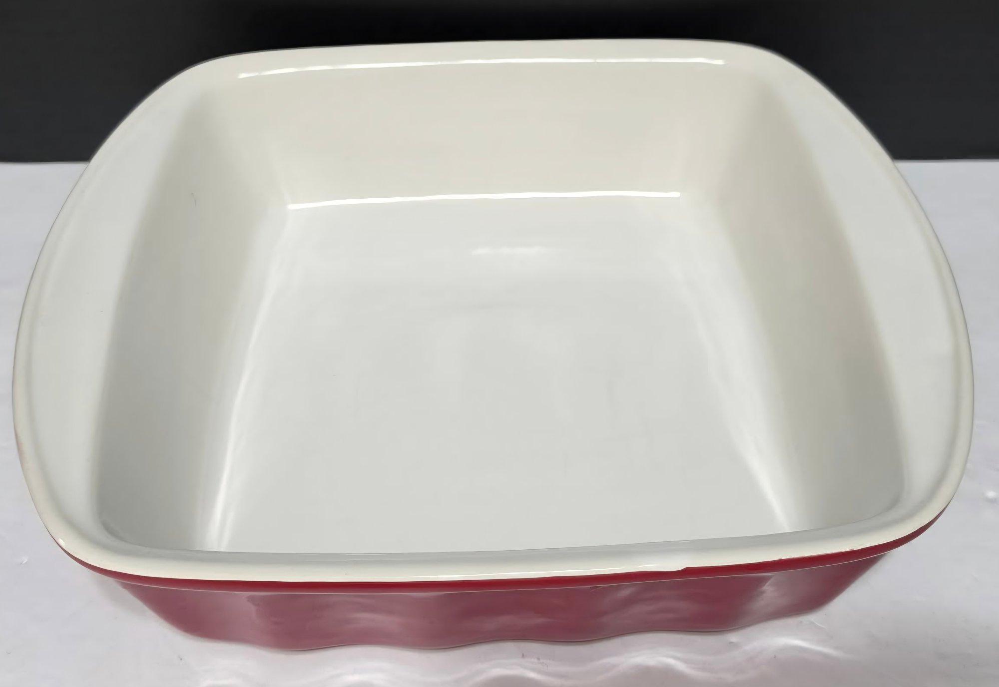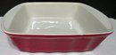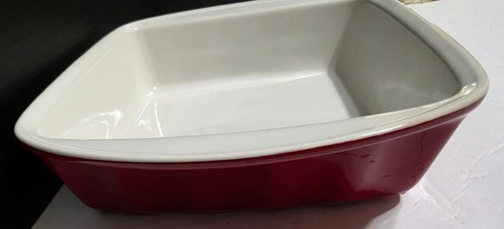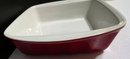 Red & White Stoneware square baking dish, measures 11.75 x 9.75 including handles. No cracks or chips noted.