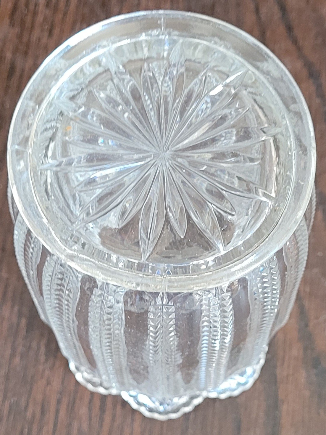 This measures 6" tall by 3.75" in diameter. It does have a small chip on the edge. See pictures for details.