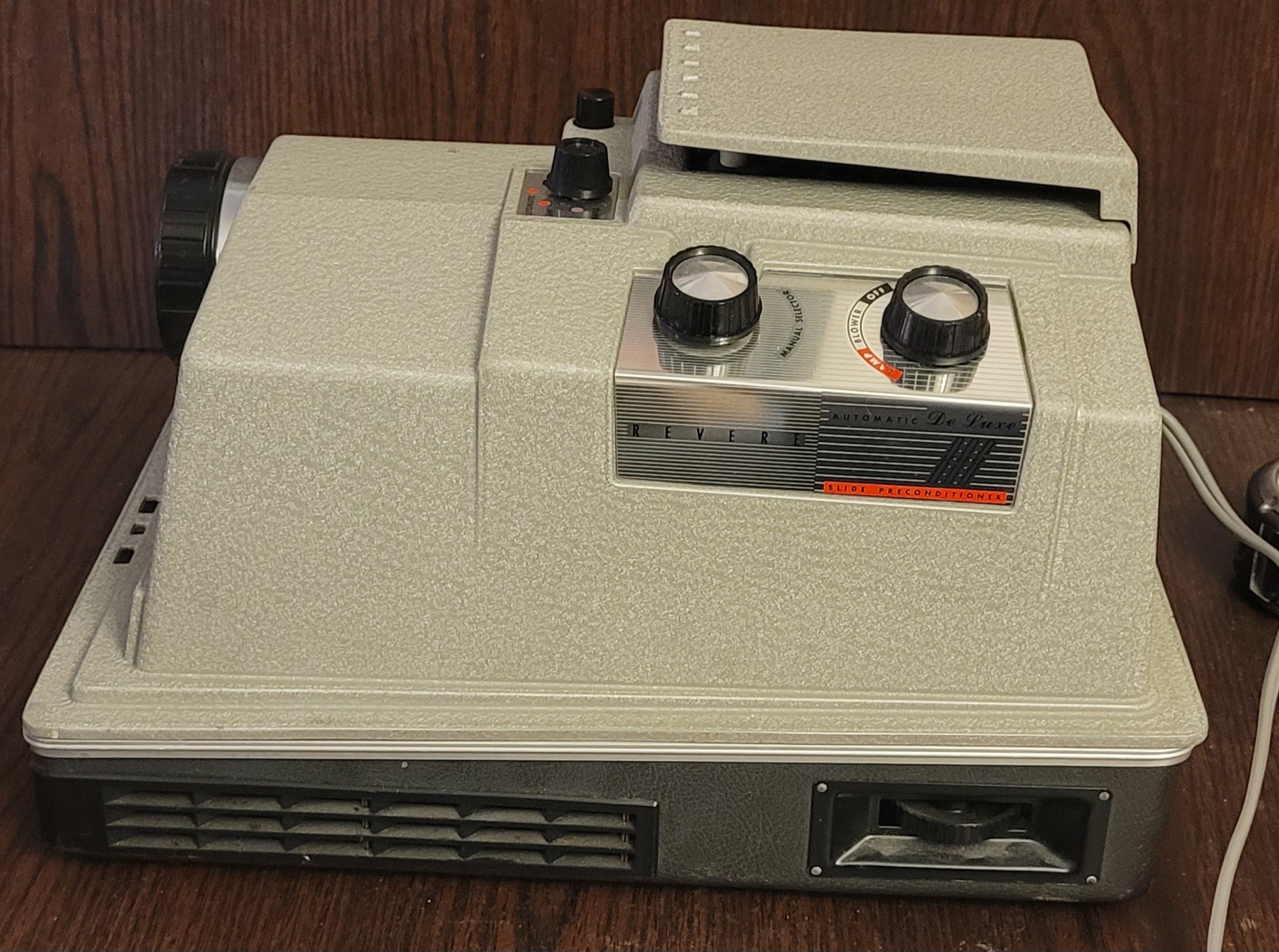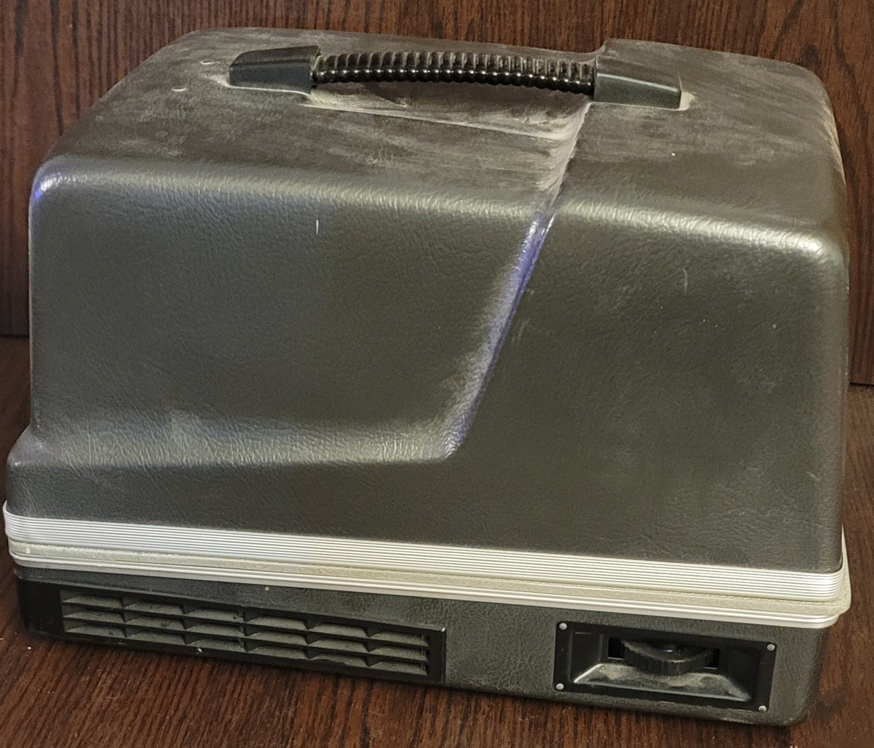 This is a vintage projector. It has been tested and turns on, and I know the light needs replaced I think it was old. It turned on when I first plugged it in but then blew out. See pictures for details.