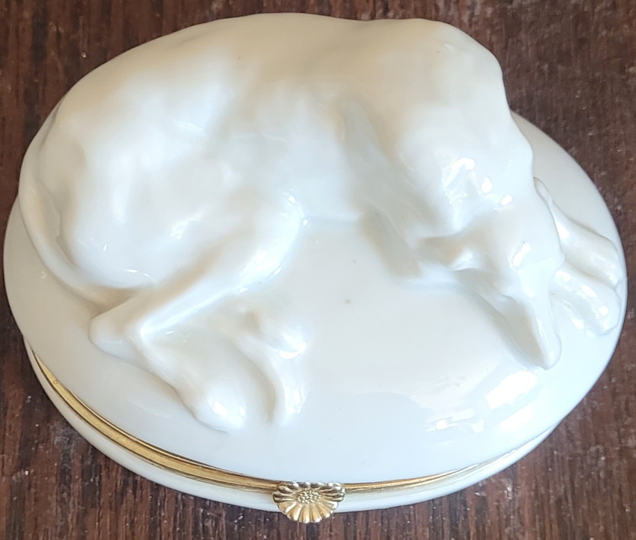 This measures 2.375" tall by 3.75" long by 2.75" wide. The hinge is a little bent. See pictures for details.
