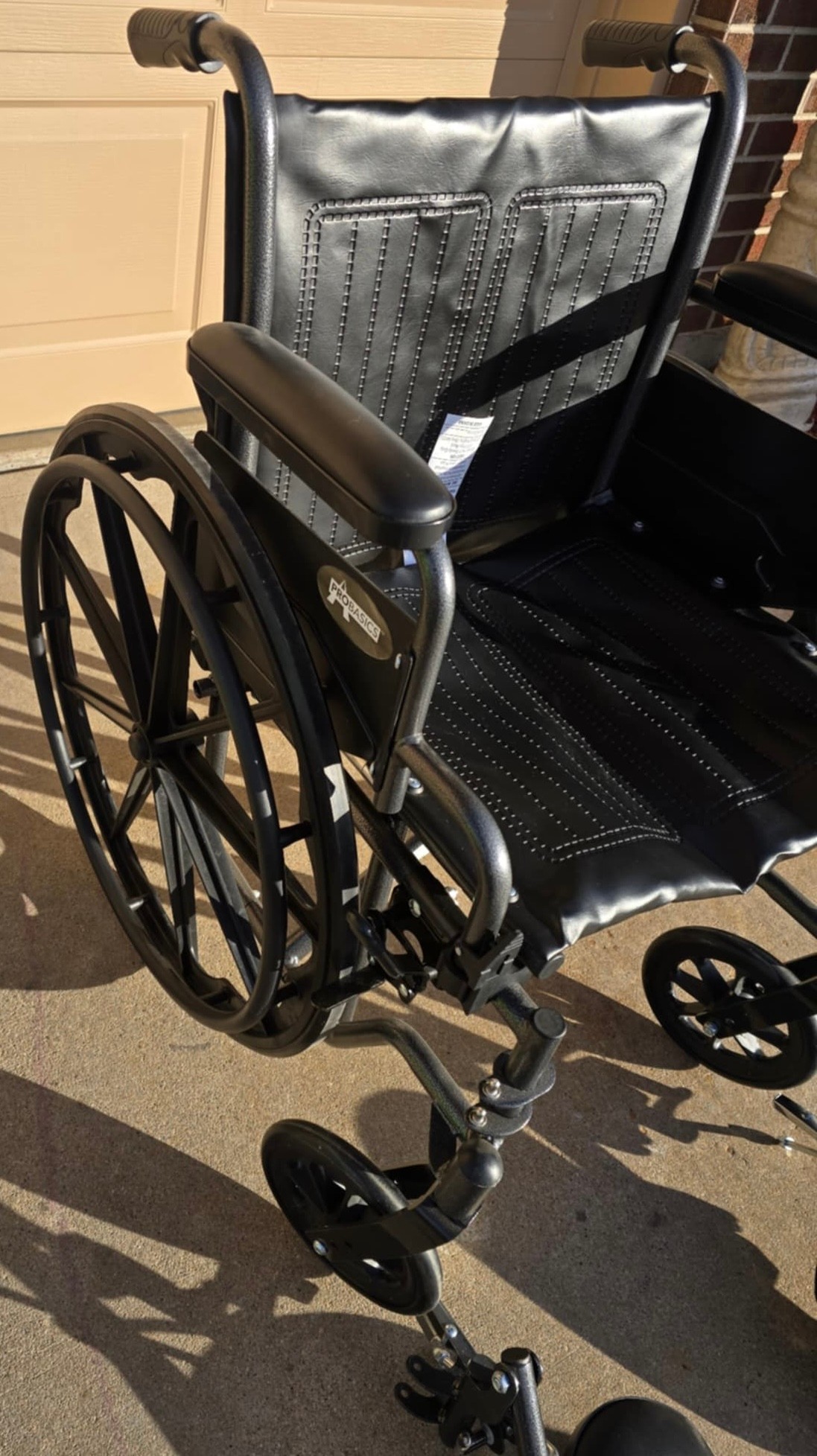 ProBasics K1 lightweight manual wheelchair. Seat measures 17w x 14d. Has leg pieces and manual. Little to no use. Good condition.
