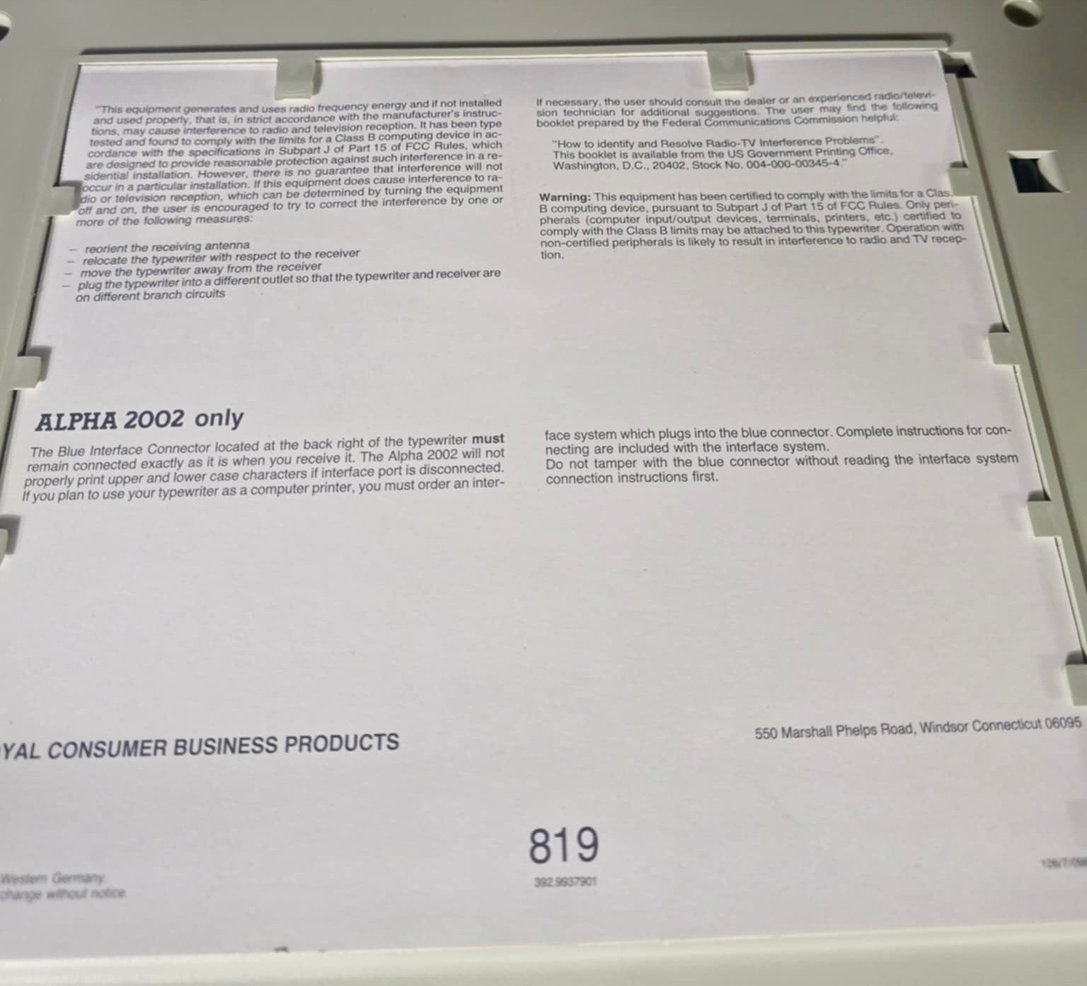 Royal Alpha 2001 Typewriter in carrying case. Tested and works.