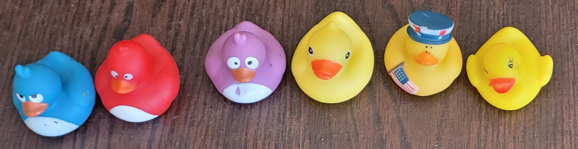 This lot comes with 6 different rubber ducks. See pictures for details,