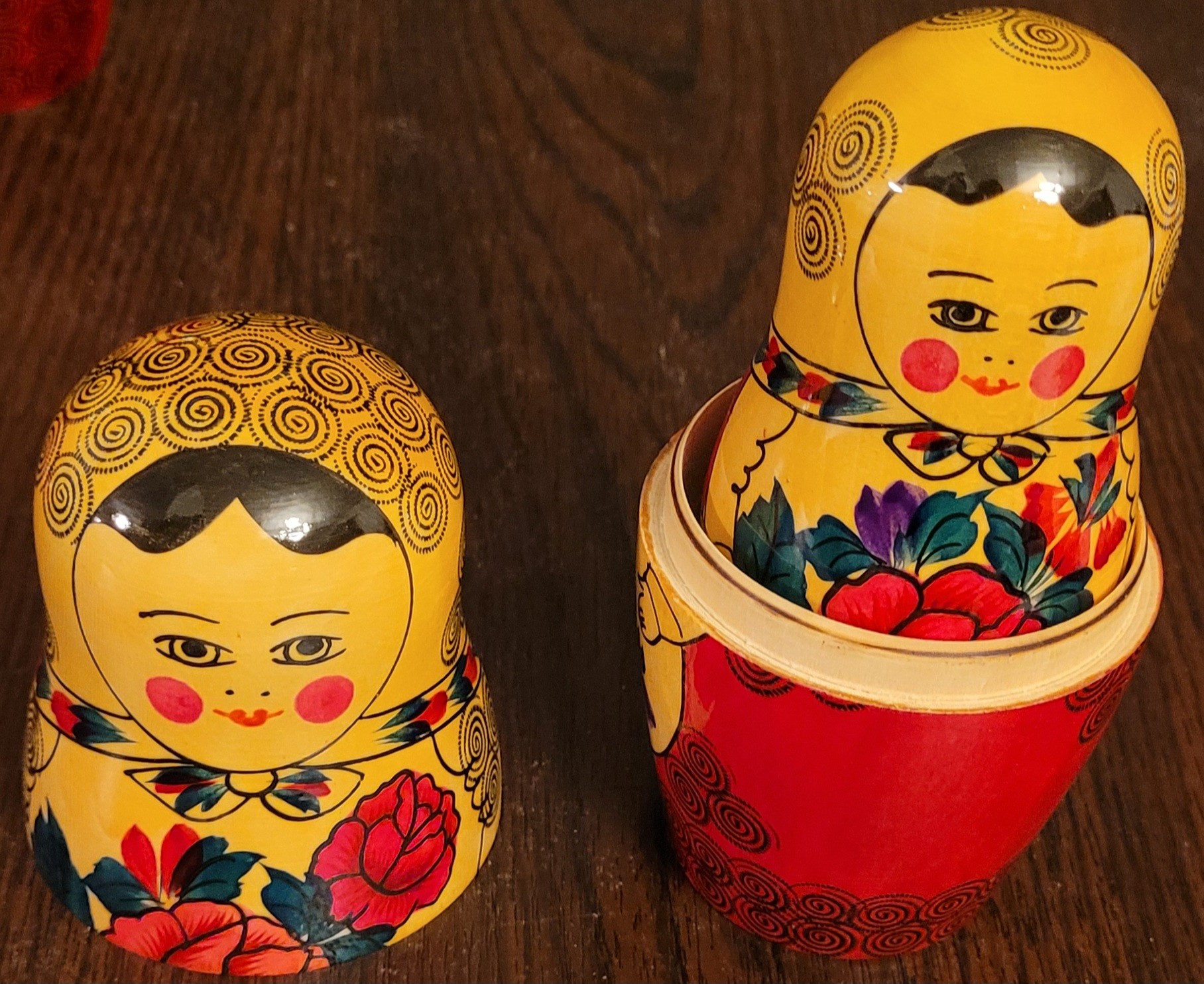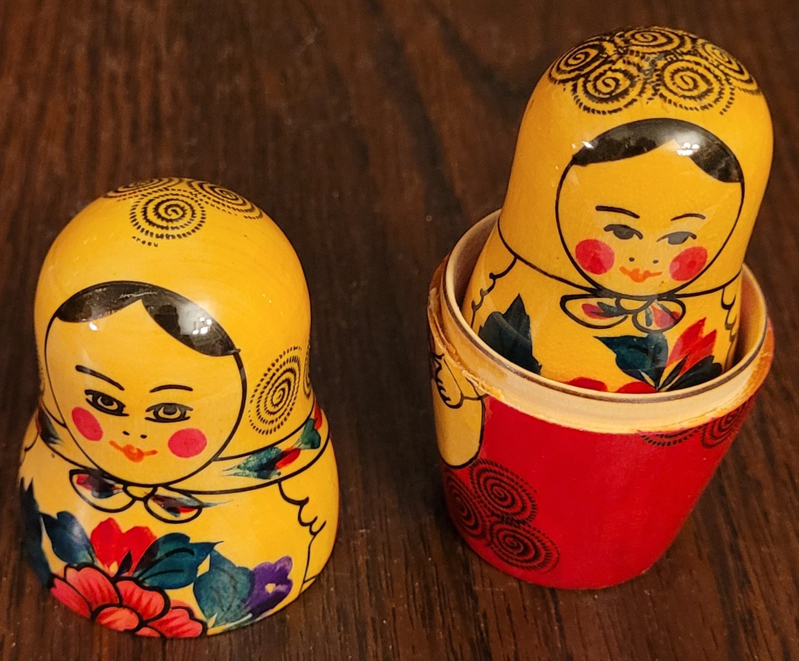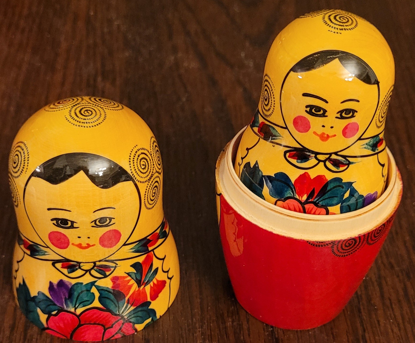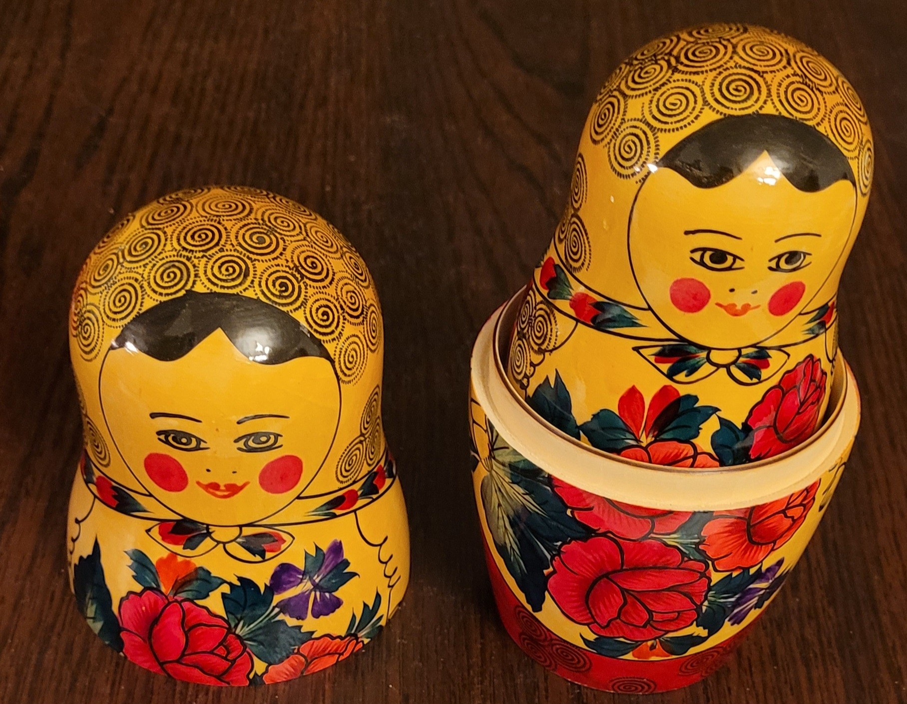 This set of Russian Matryoshka Nesting Dolls is a beautiful addition to any collection. The set includes nine pieces each. The dolls are handcrafted and made with precision, showcasing the rich culture of Russian Federation. The provenance of this set is not available, but it is evident that it has been owned and cherished for years. The intricate design and attention to detail make this set a must-have for collectors and enthusiasts alike. Add this stunning piece to your collection today!
