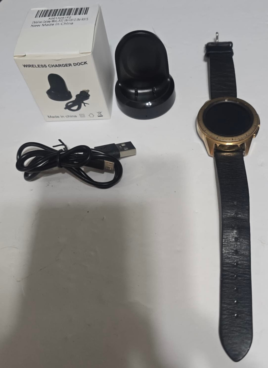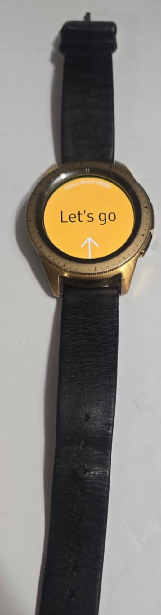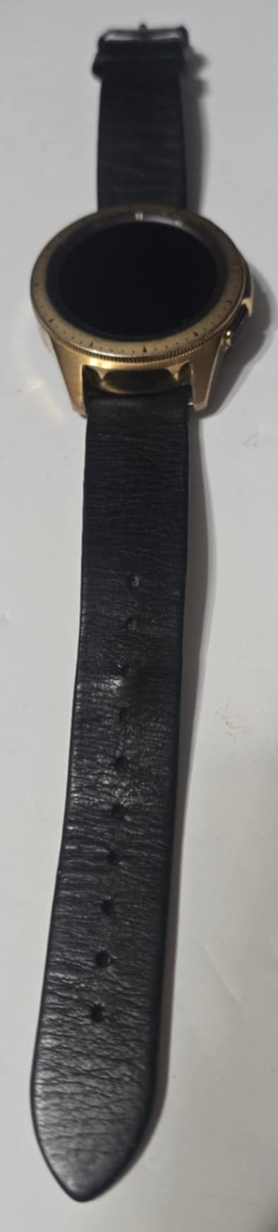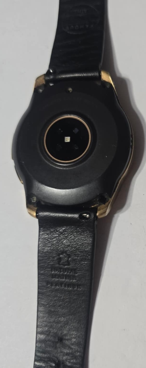 Samsung Galaxy Watch (42mm) in Rose Gold with a black leather band. Comes with charger. Factory reset. Ready for you to set it up.