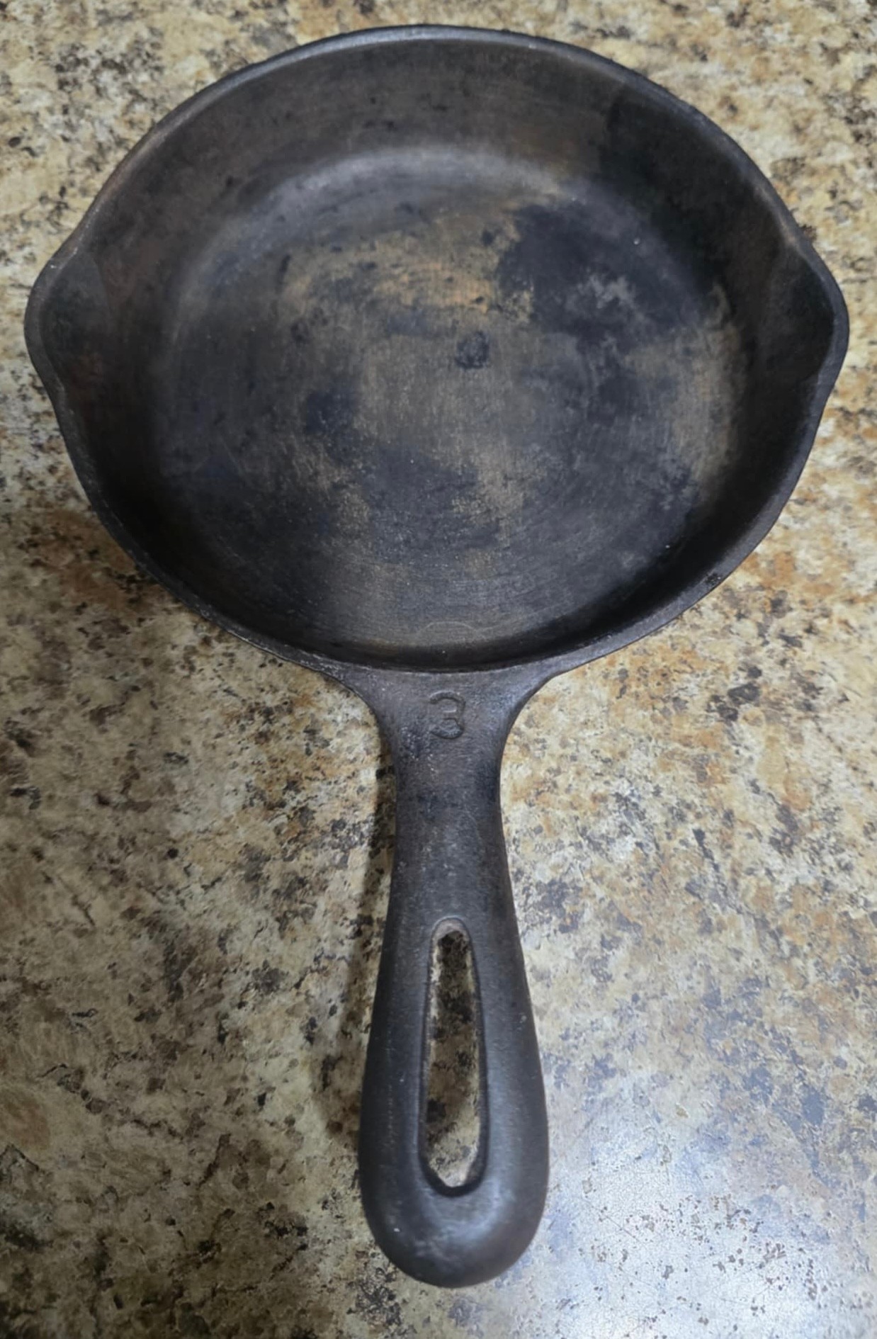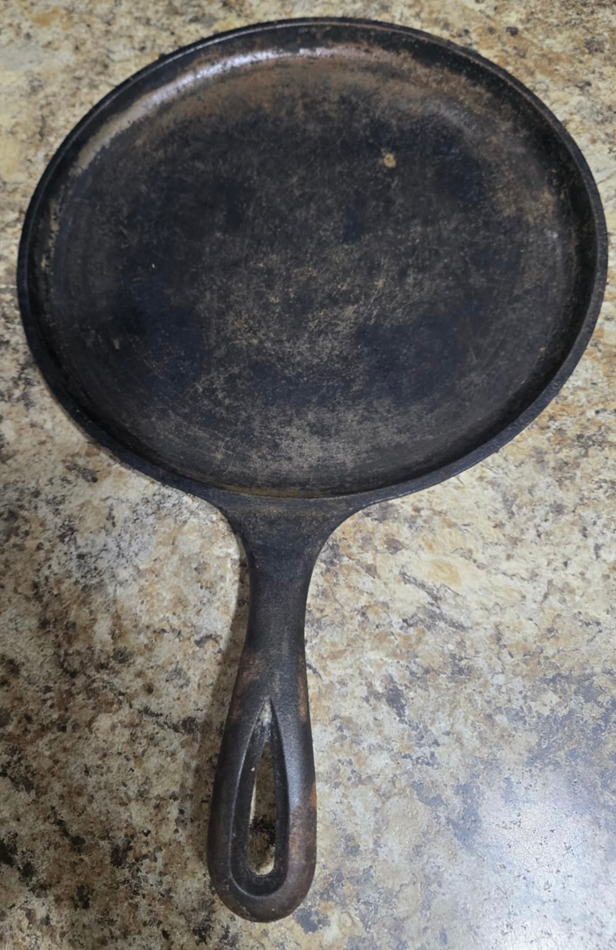 6.5" Skillet no maker noted and a Lodge 8 Griddle. Both need cleaned and seasoned. Griddle is 10.5".