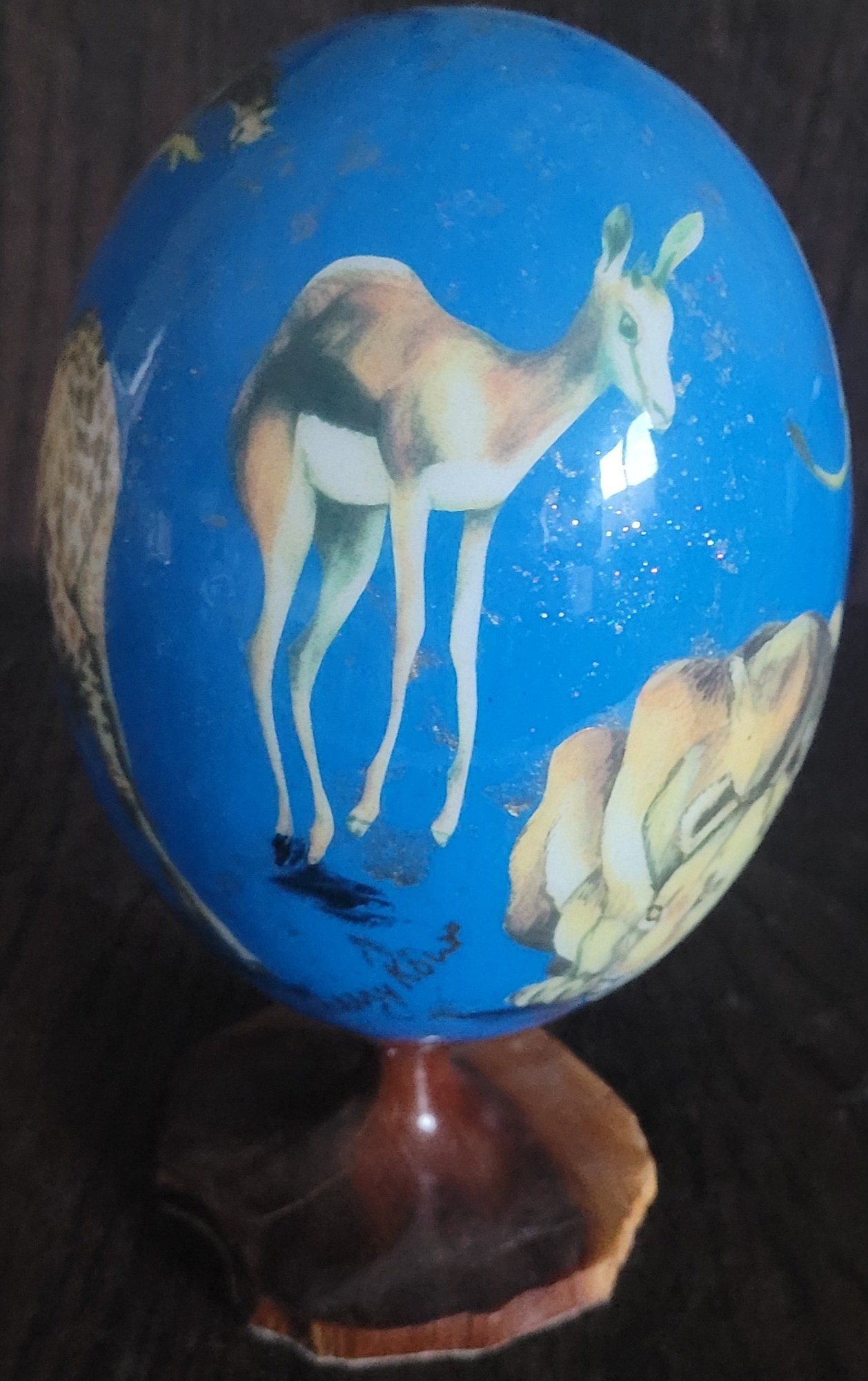 This had African animals on it. It measures 8.5" tall. It is signed. See pictures for details.