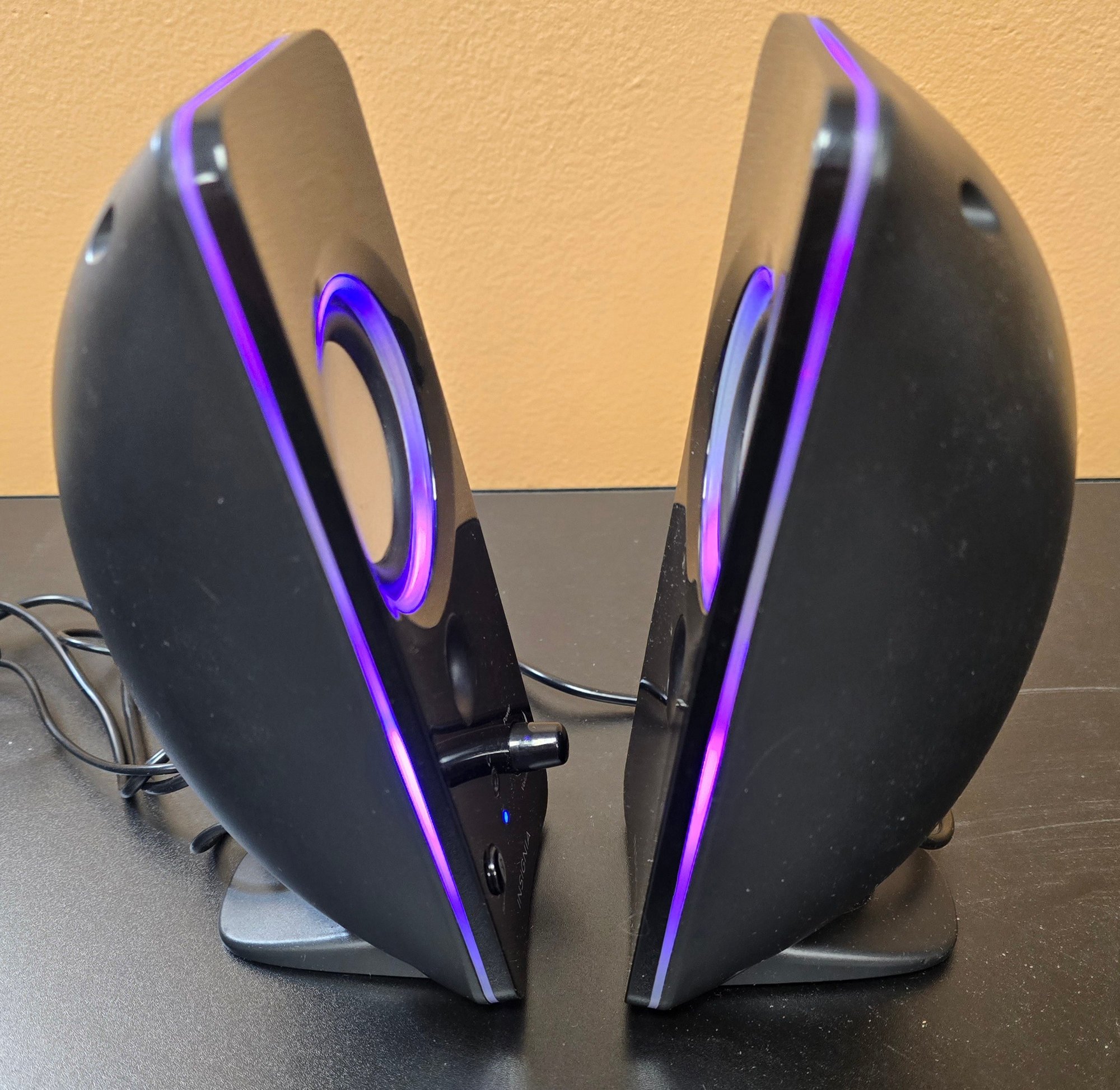Insignia 2.0 Bluetooth Lighted Speaker System (NS-2810BT. Tested and works. Approximately 10"h. Please see all pics for details