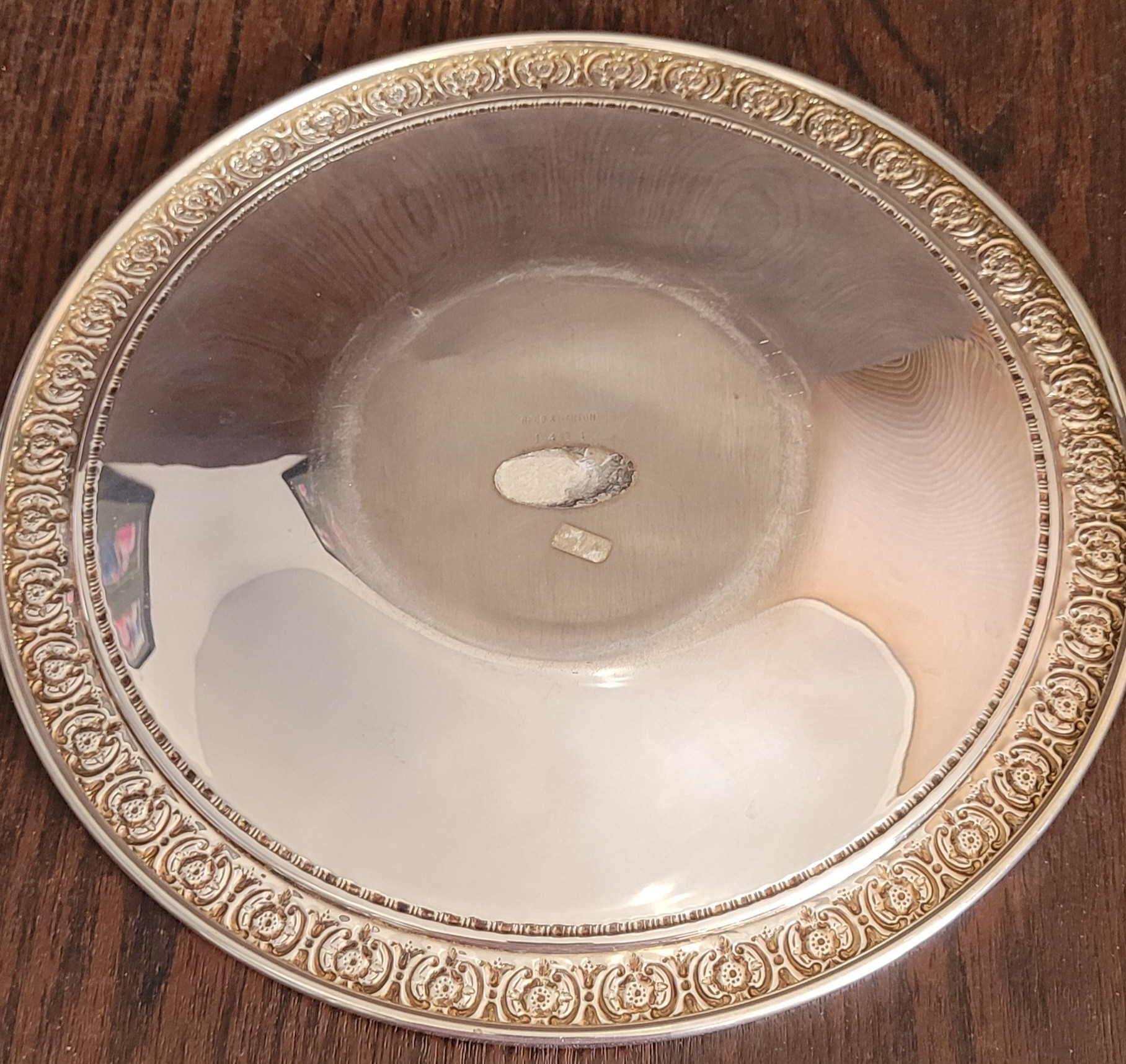This is a Reed & Barton plate and measures 10" in diameter. See pictures for details.