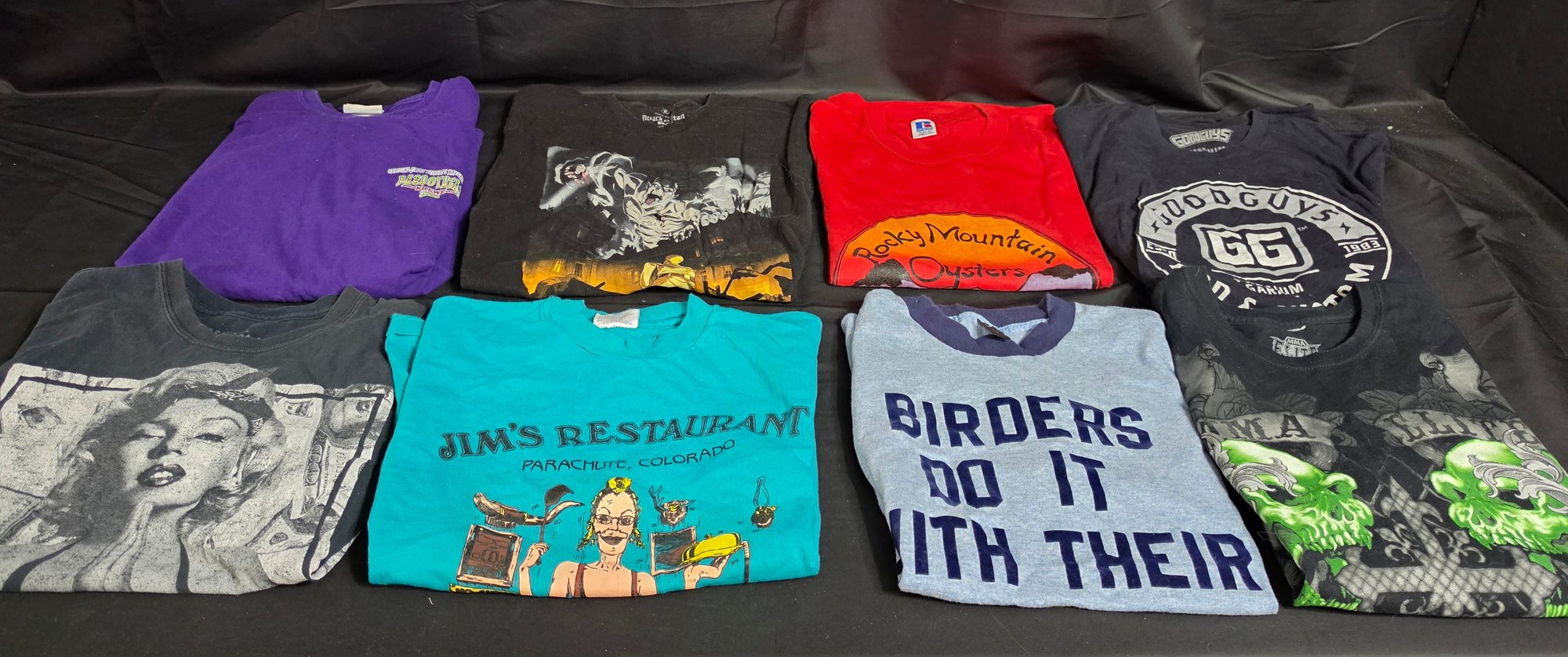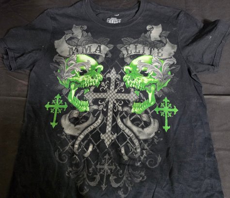 Size Medium Graphic T-Shirts. A few small holes. Please see all pics for details.