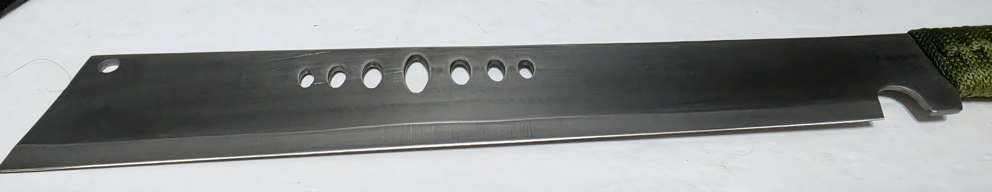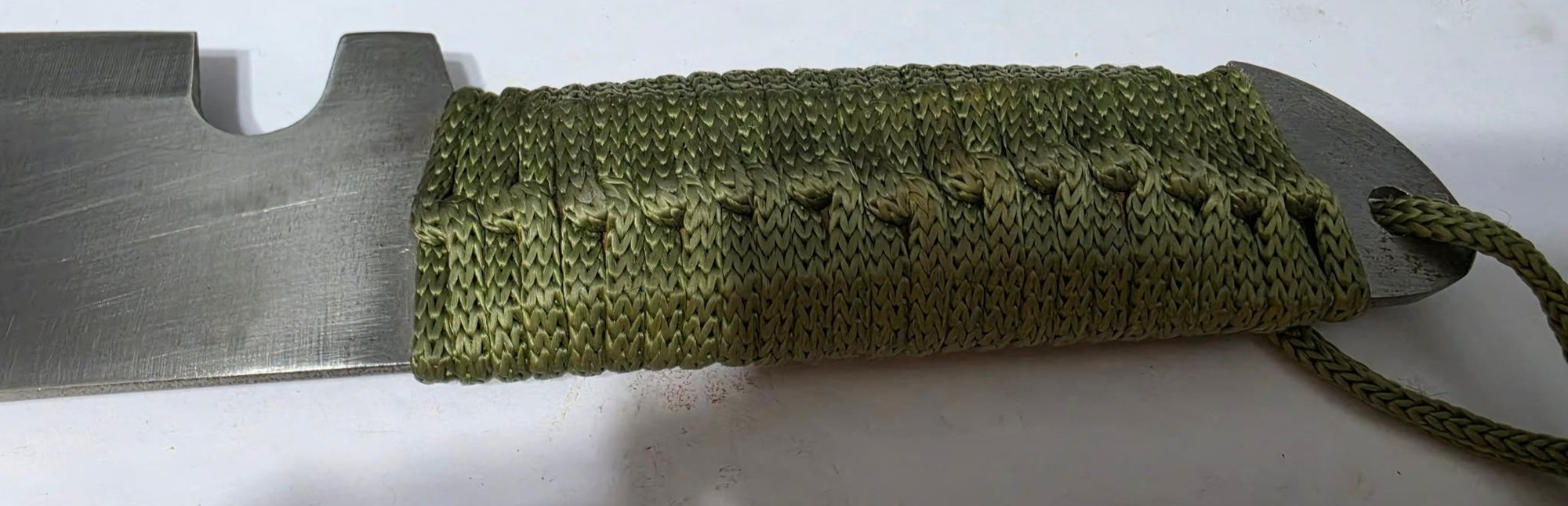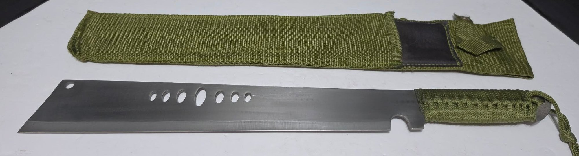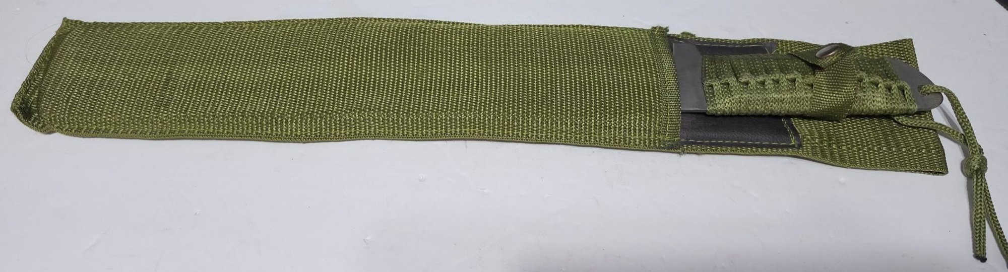 Slant Tip Machete Eagle Stainless Steel with Camo Sheath & Corded Handle 20". Sheath does have a small section untied.