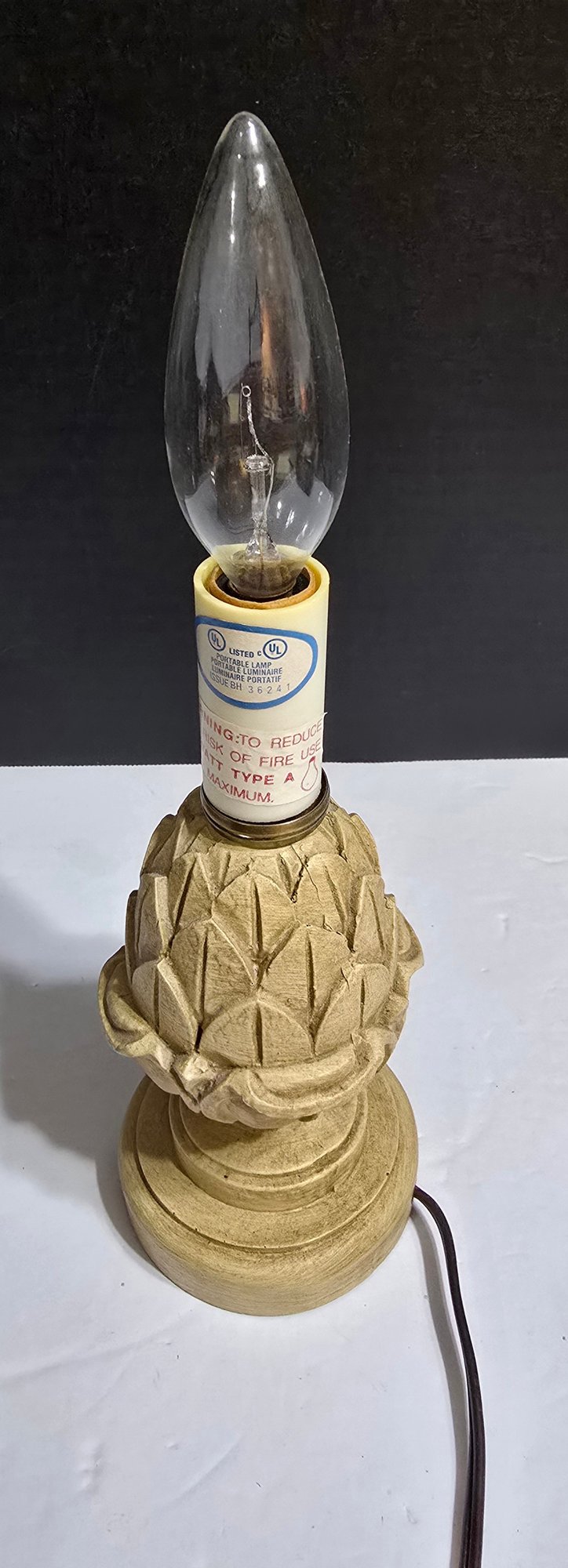 Small Pieapple Table Top Lamp. Base is a type of resin. Measures 12h x 6. Tested and works. Please see all pics for details.