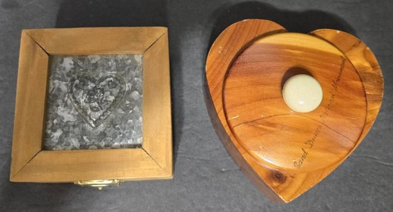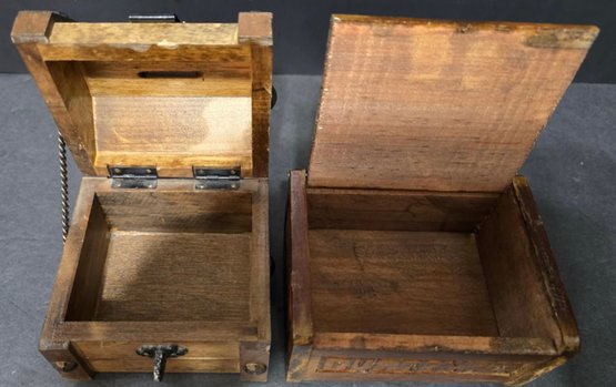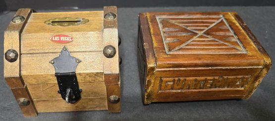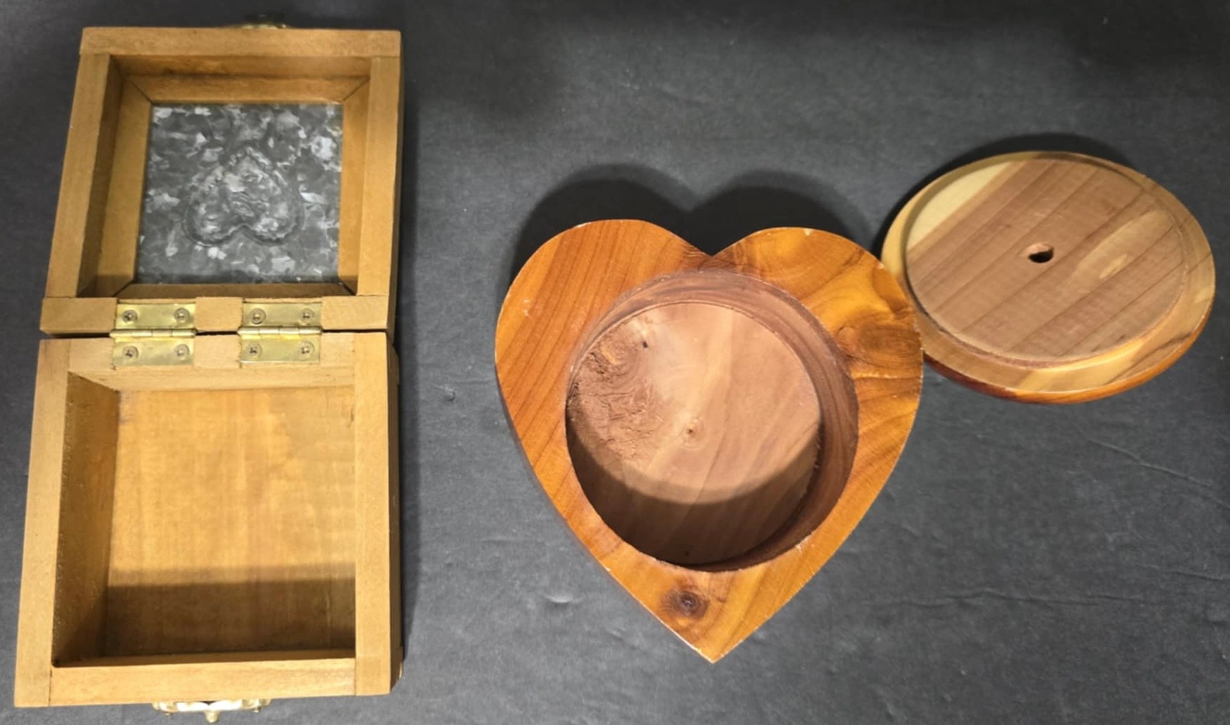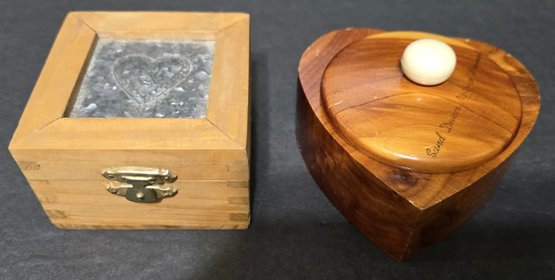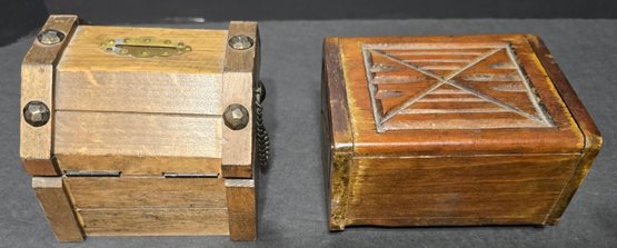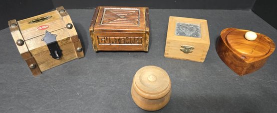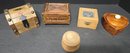 Small Wooden boxes. Measures 4.5 x 3.5 x 2.5, 4 x 4 x 3.5, 3.25 x 3.25 x 2, 4.25 x 4.25 x 3 and 2.25 x 2.25 x 2.25. Good used condition. Great for small trinkets or jewelry.