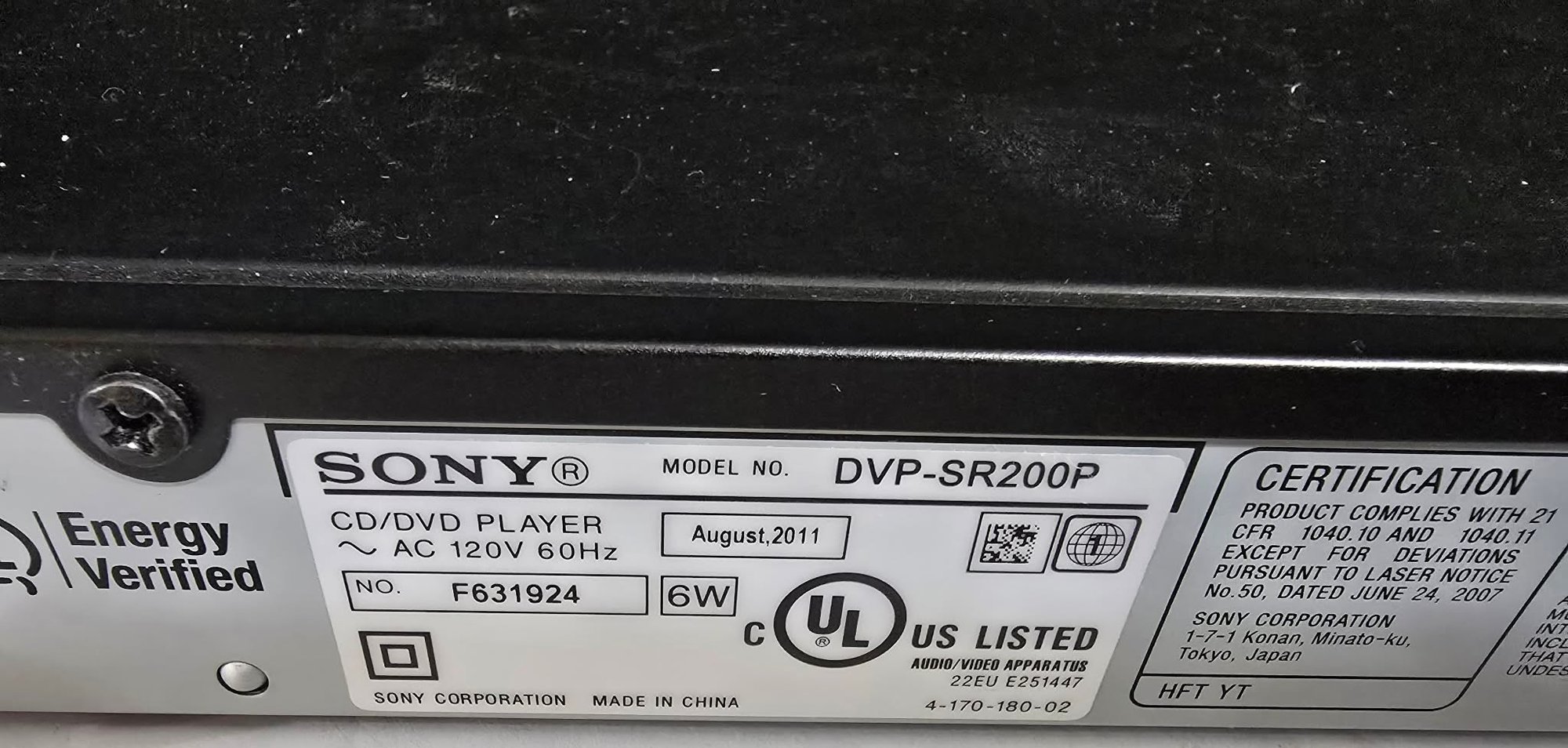 Sony CD/DVD player with remote. Untested. Does turn on and disc tray opens and closed properly.