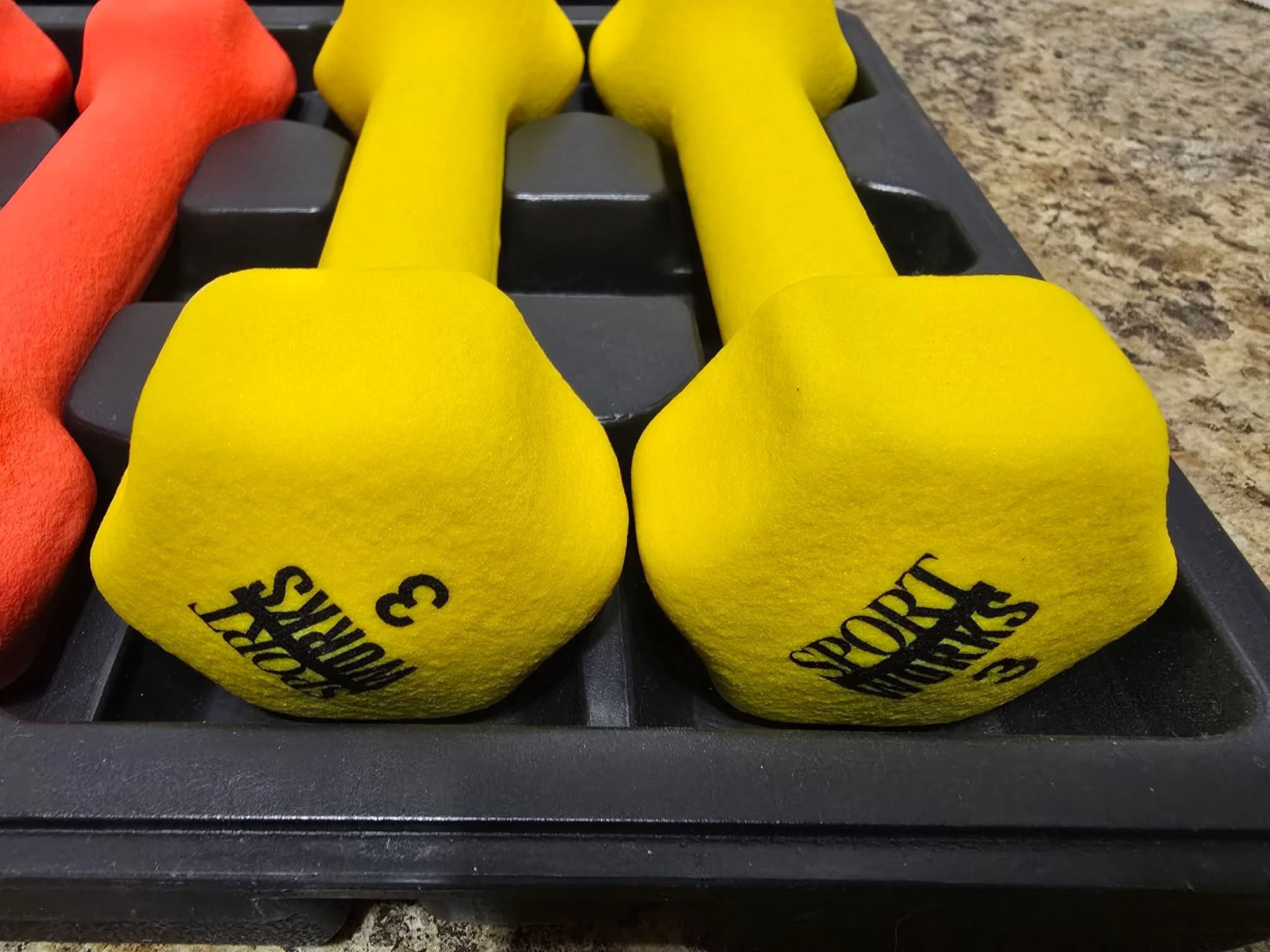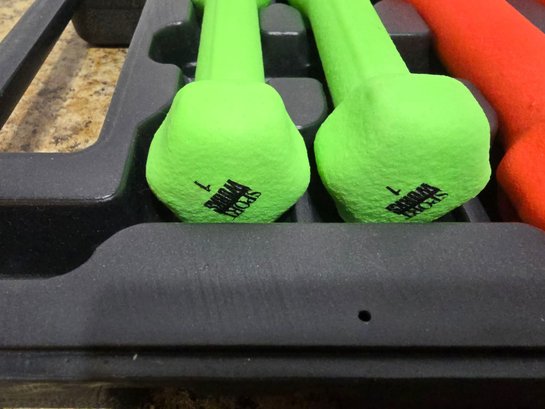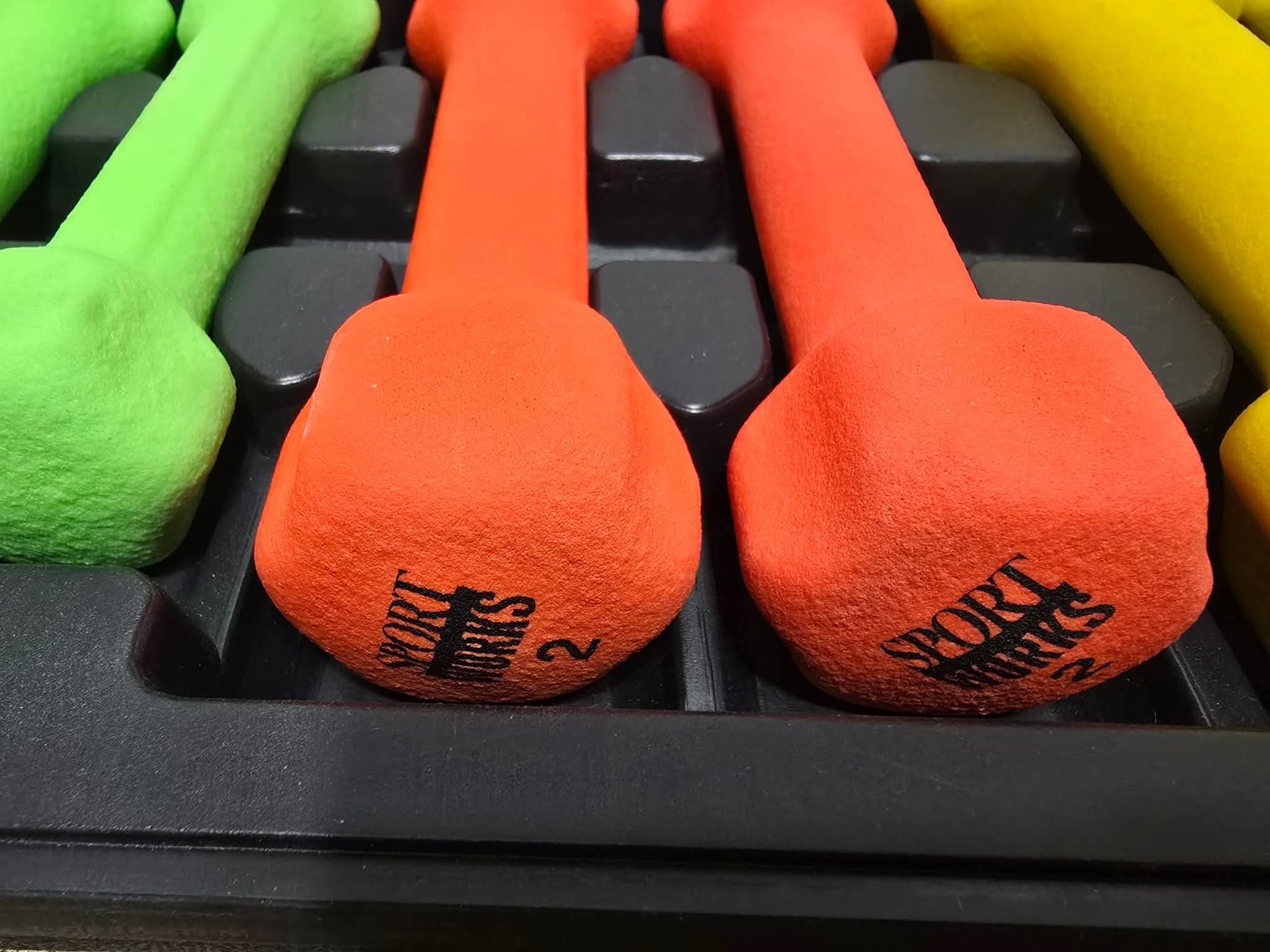 Sport Works branded carrying case with neoprene-coated dumbbell weight set.