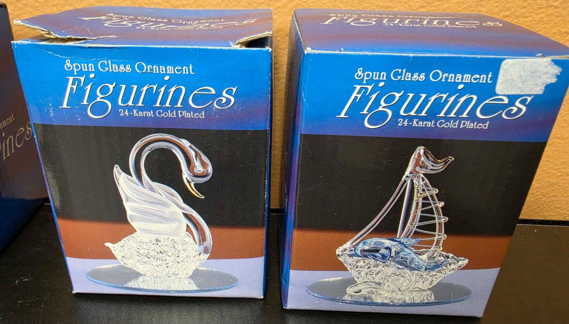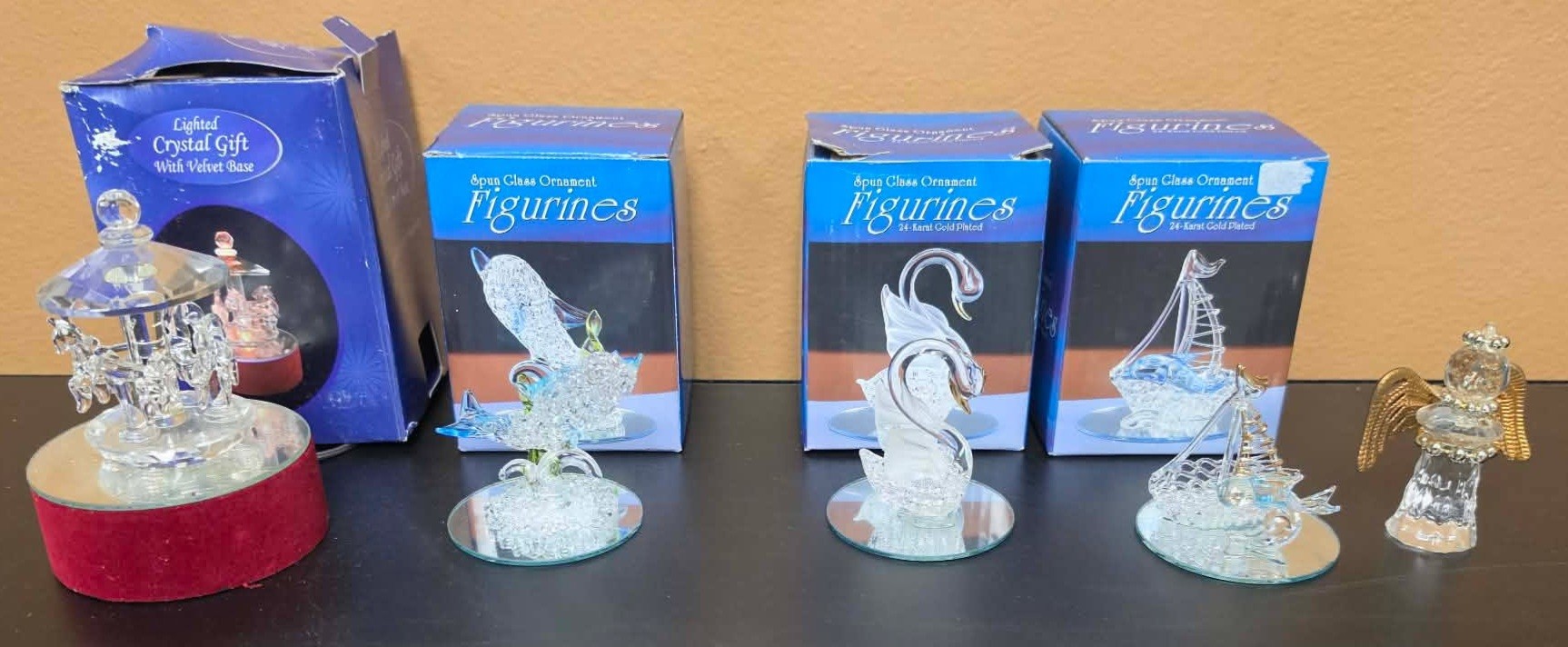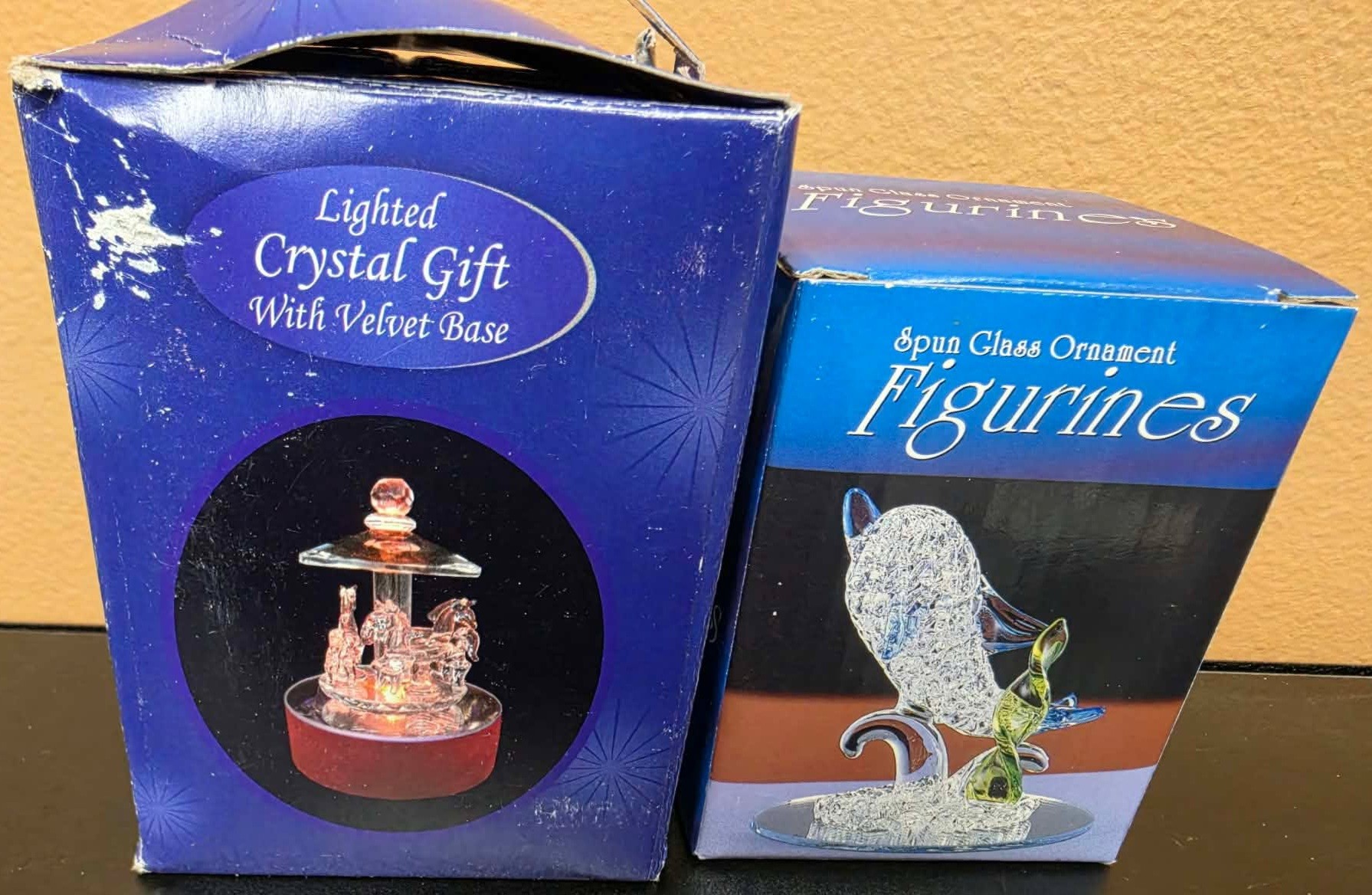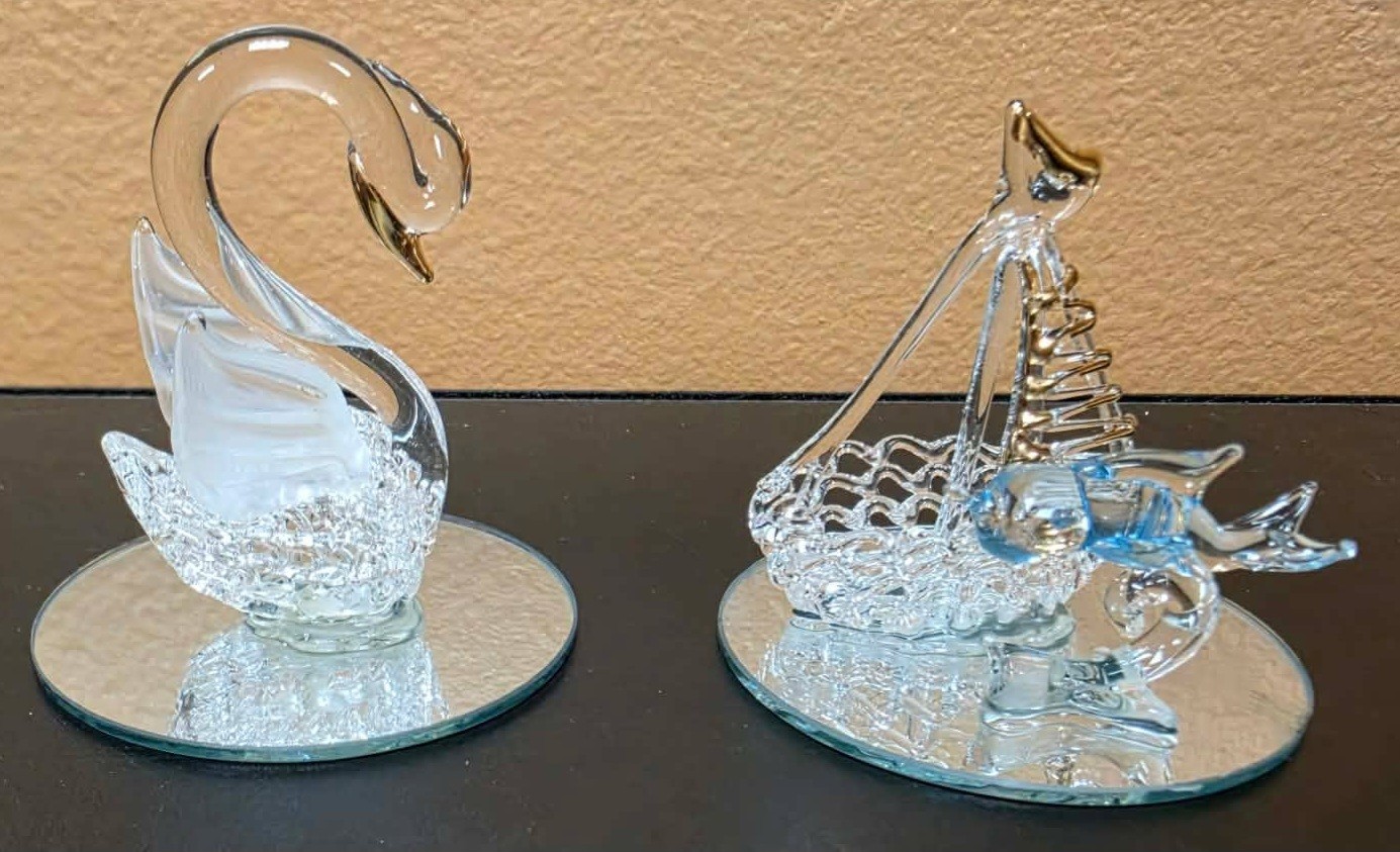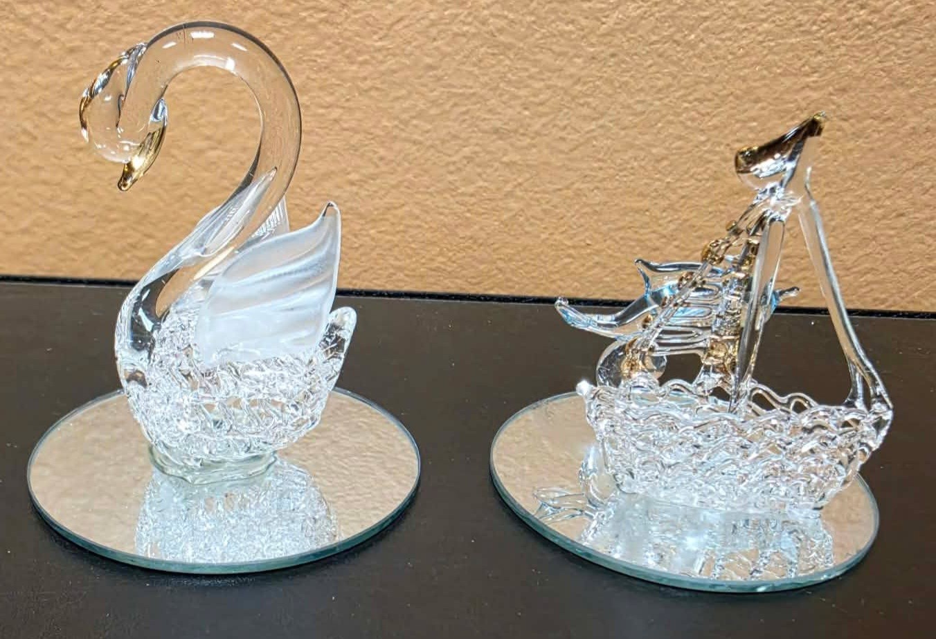 Spun Glass Ornament Figurines. Measures approximately 3"h.
