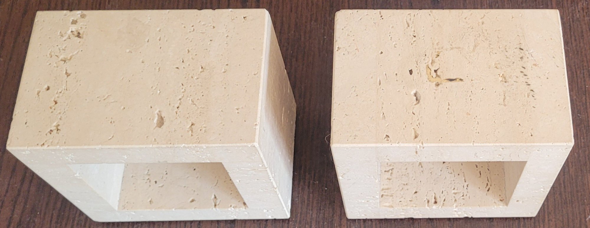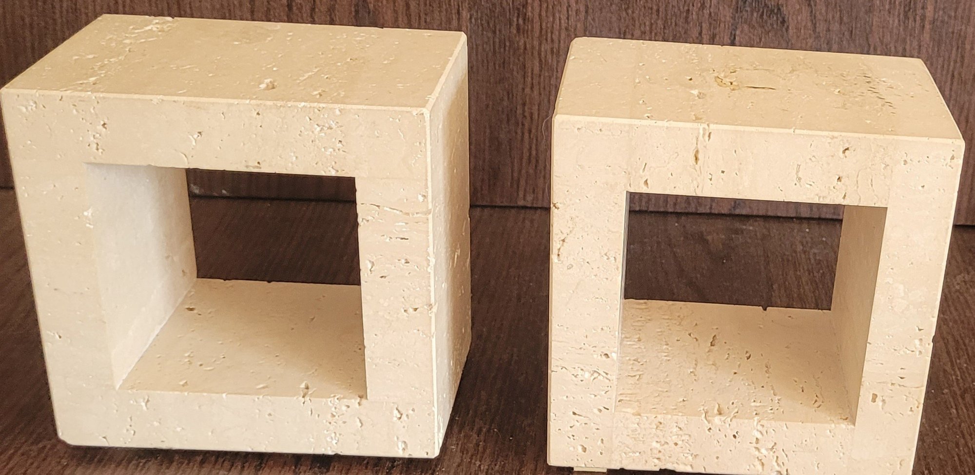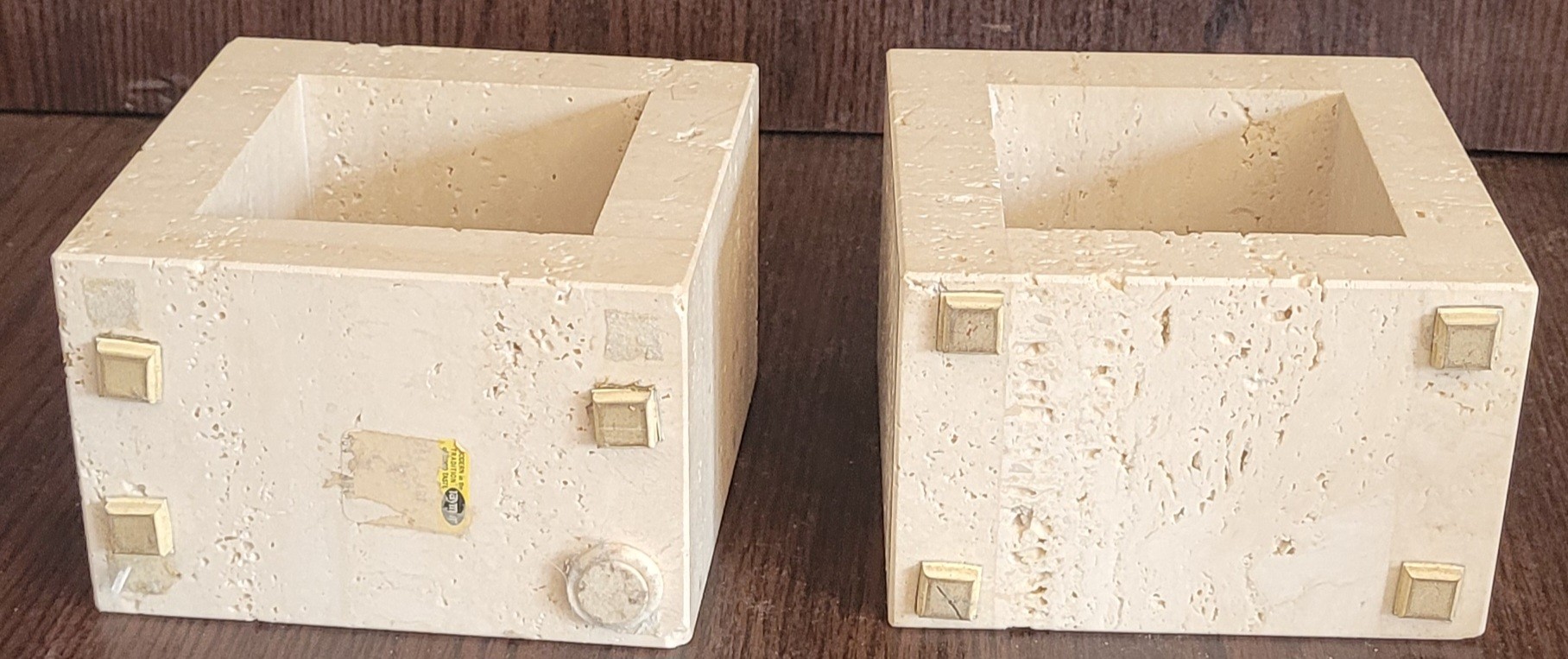 These measure 5.75" x 5.75" x 3.75". These are very heavy. See pictures for details.