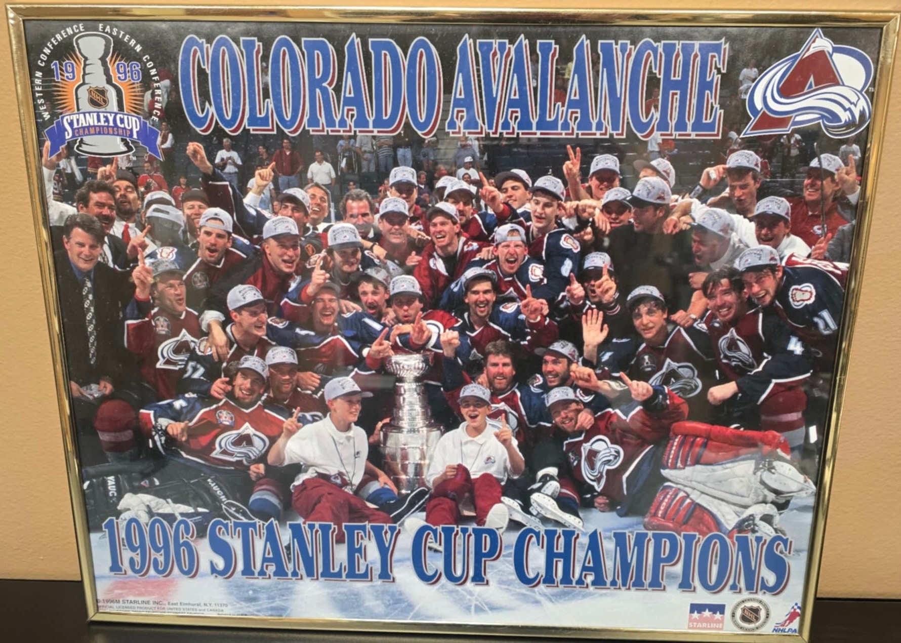 Starline NHL licensed 1996 Stanley Cup Colorado Avalanche framed photo collectible. Measures 20 x 16.