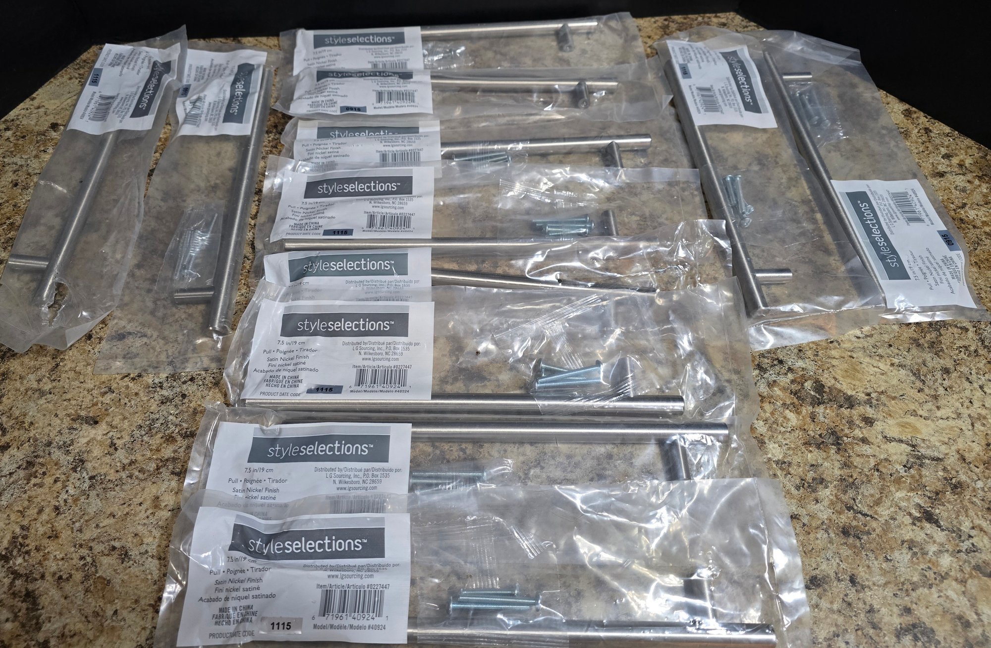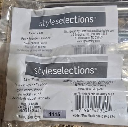Style Selections satin nickel rectangular bar drawer pulls. 12 total. Unopened package. Please see all pics for details.