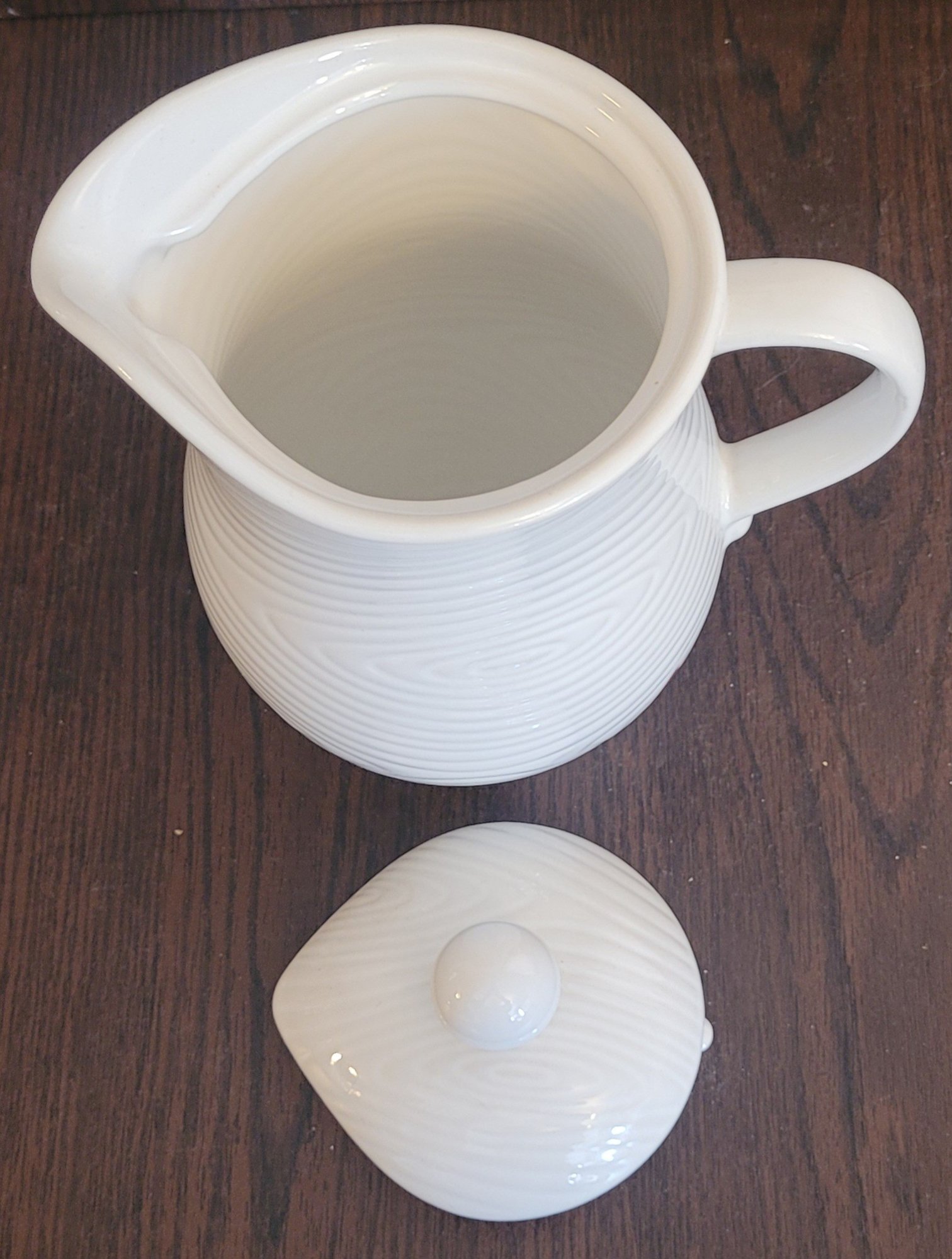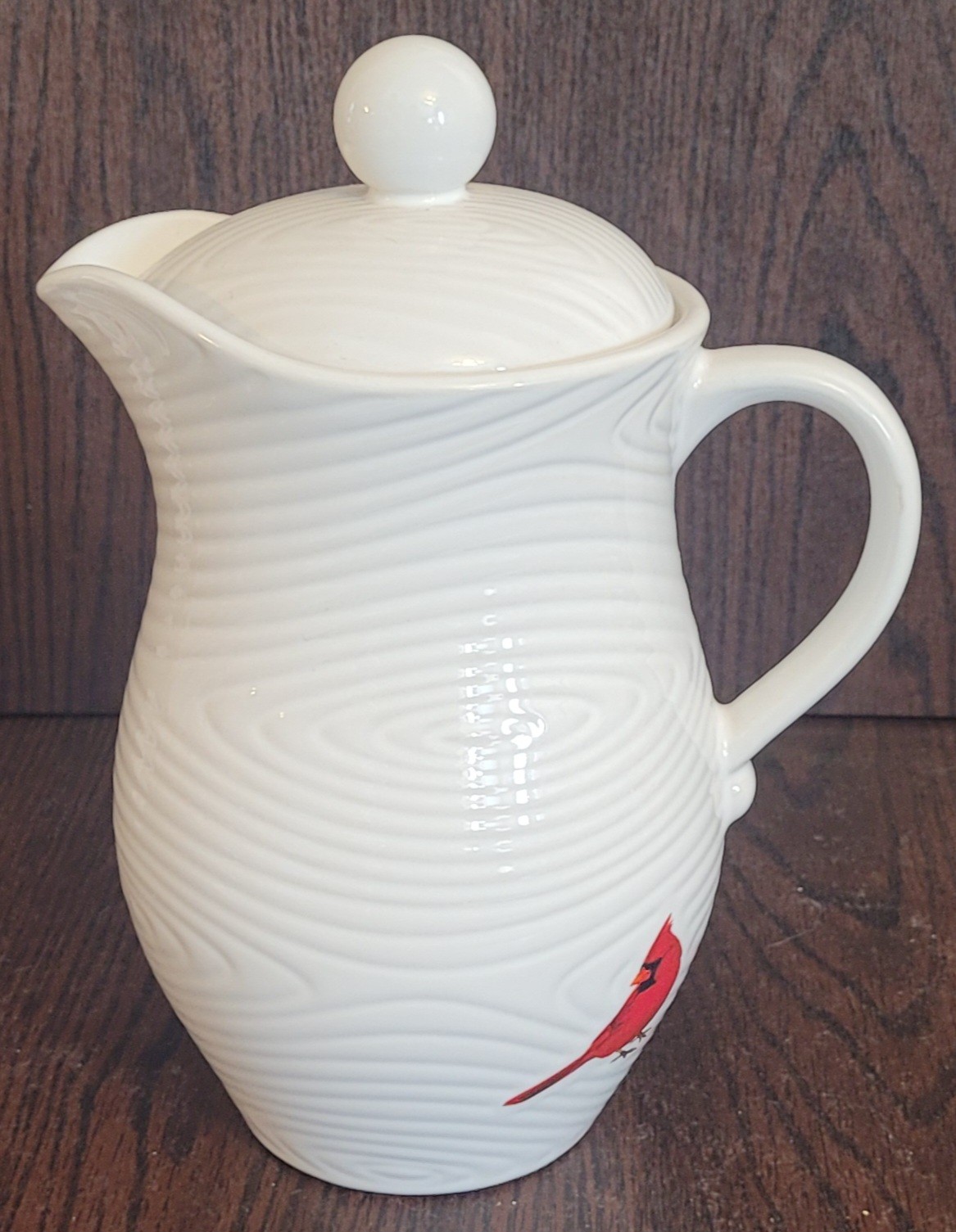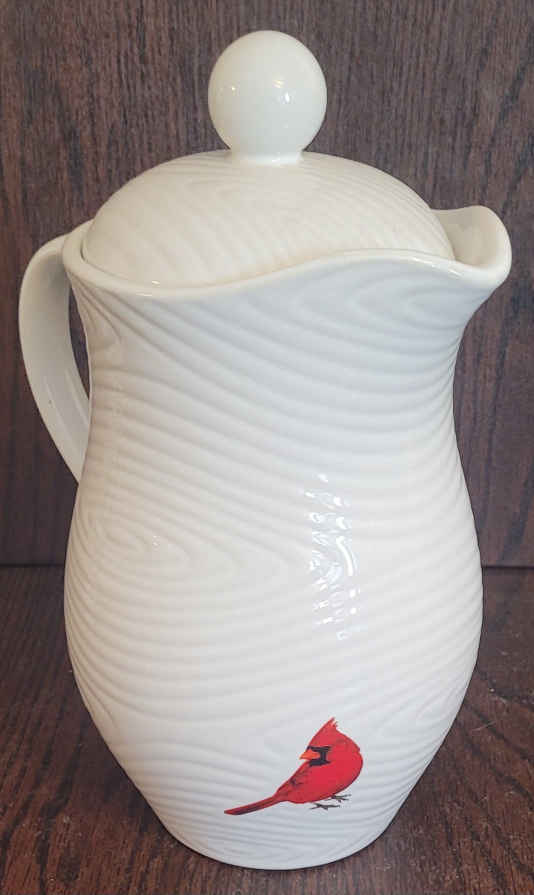 The Temp-tations by Tara White Woodland Pitcher/Coffee Pot is a beautifully crafted porcelain pitcher with a capacity of 2 quarts. This pitcher features a glossy finish and a lid, making it a practical and elegant addition to any kitchen or dining room. The white color with a cardinal theme adds a touch of charm to your home decor. Perfect for serving coffee or tea in style, this pitcher is both functional and visually pleasing.