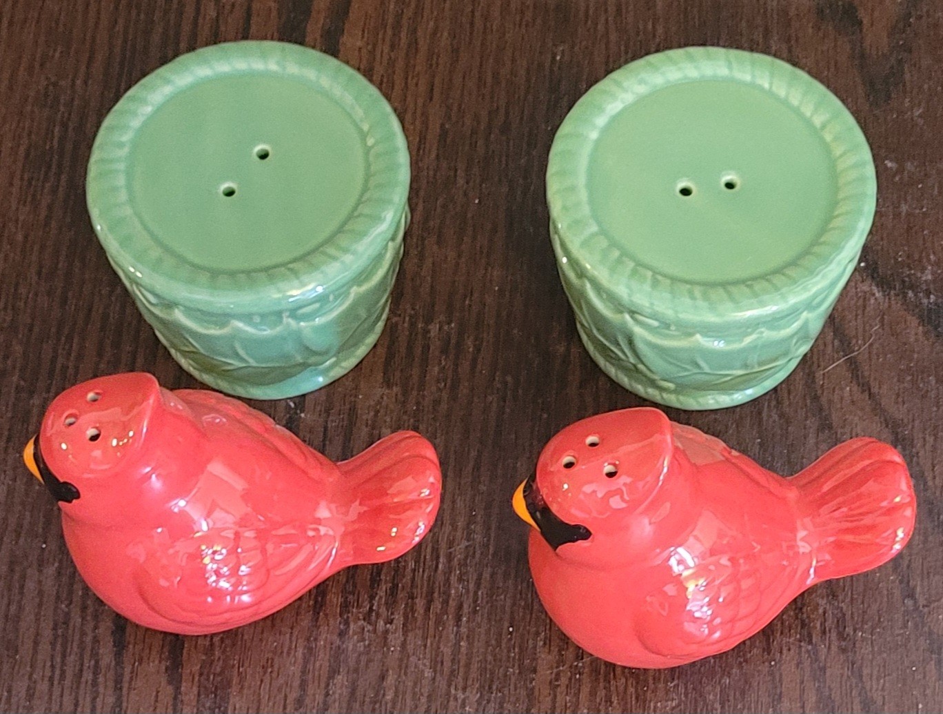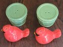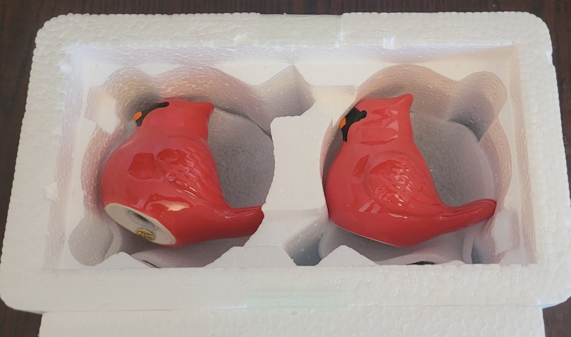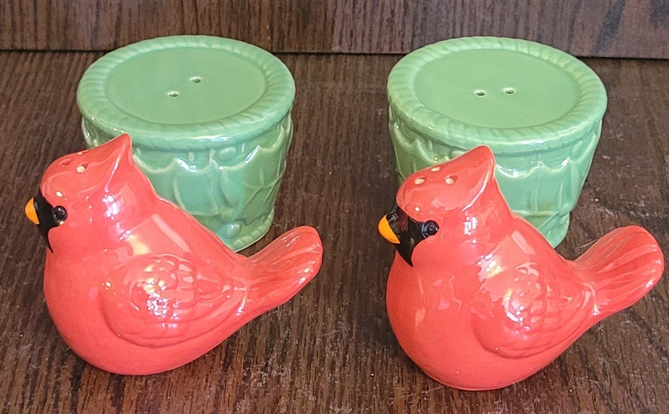 The Temptations by Tara Cardinal Salt and Pepper Shakers with Nest is a charming set featuring animal-shaped shakers in the form of birds. Made of ceramic in a multicolor design, the set includes a pepper shaker and salt shaker standing at 3 inches tall. The shakers are designed to nest together when not in use, showcasing a bird and nest theme that adds a whimsical touch to any kitchen or dining table. Perfect for all occasions, this unique set is sure to be a delightful addition to any collection of kitchen tools and gadgets. Comes in the original box that it was shipped in