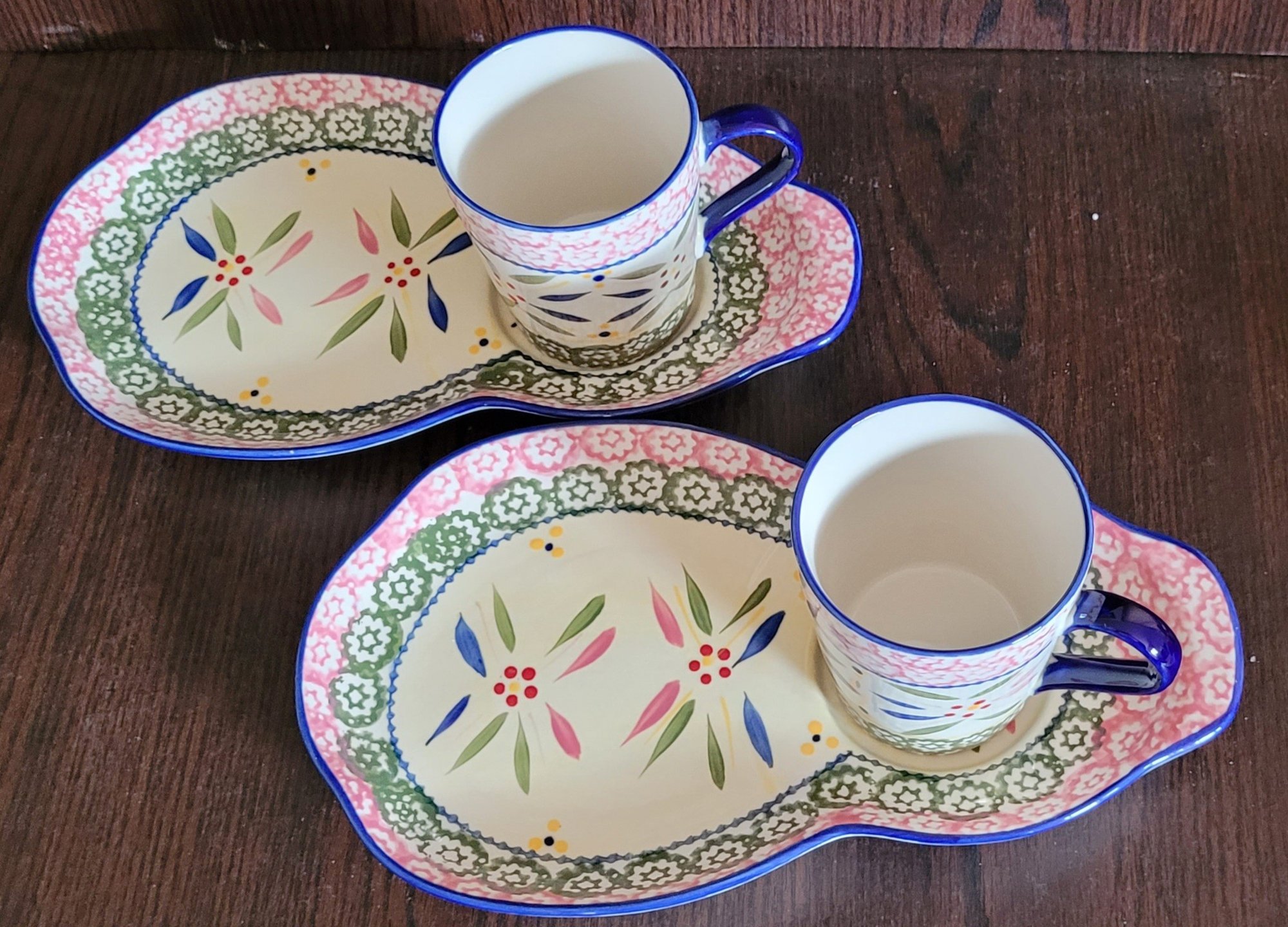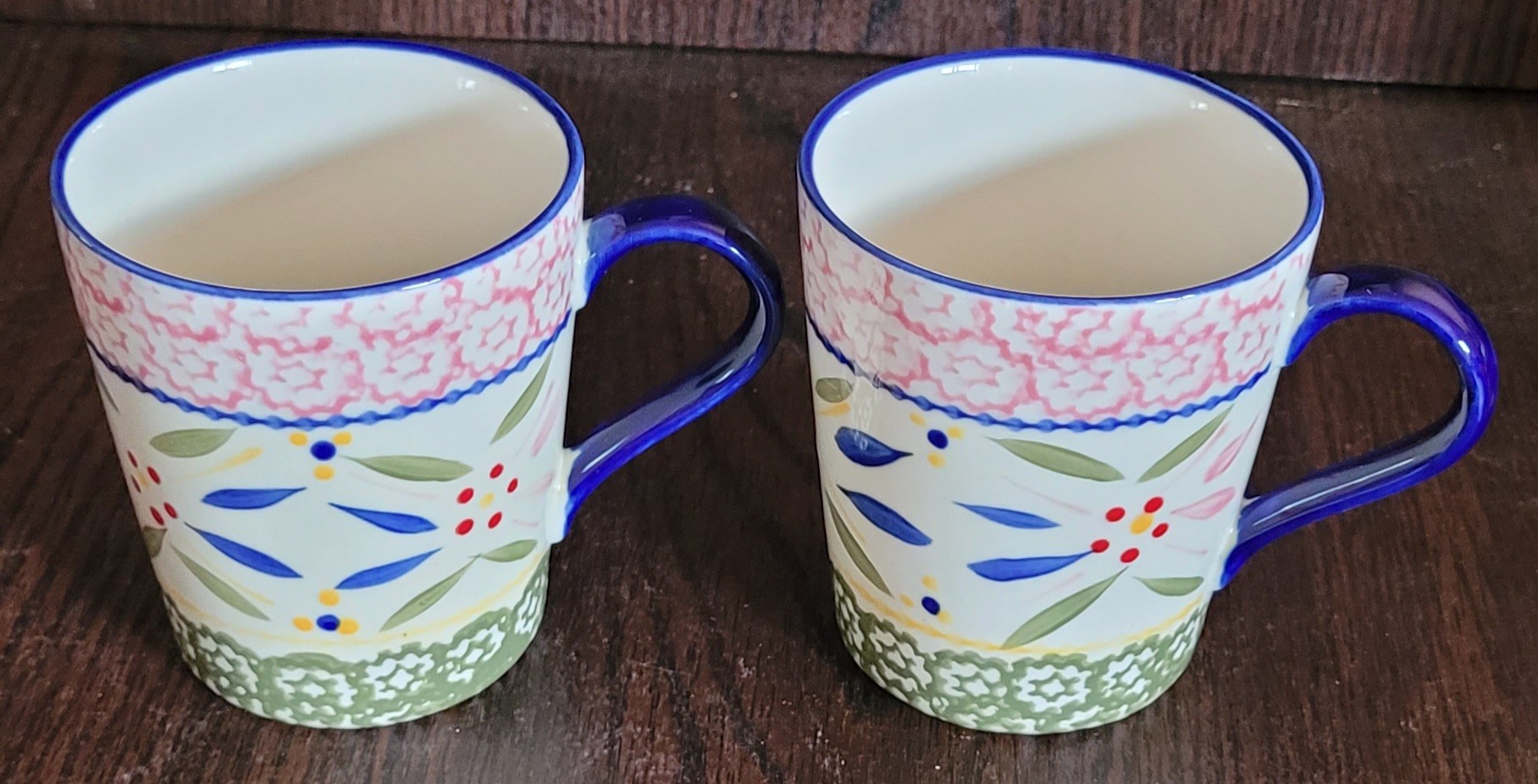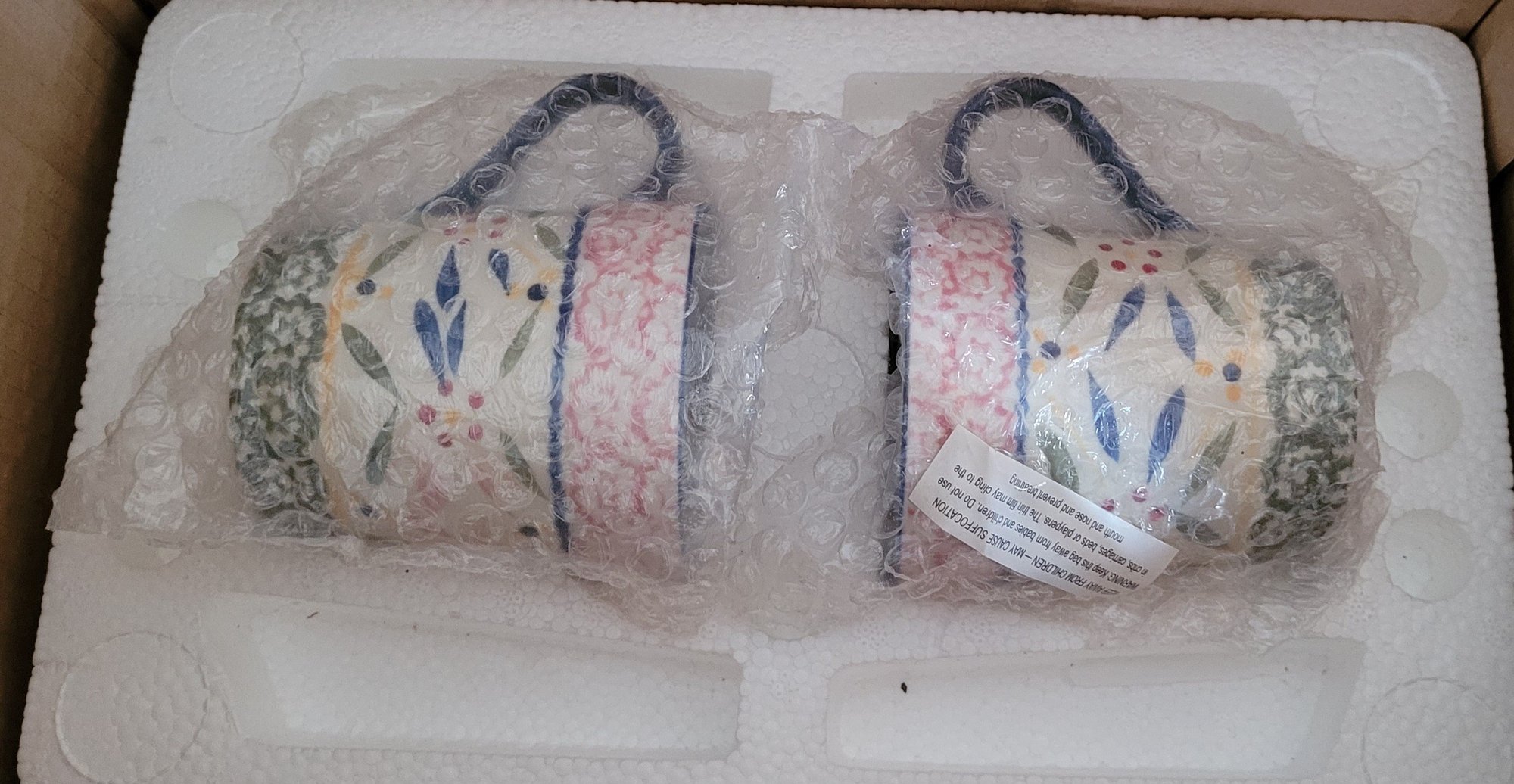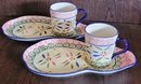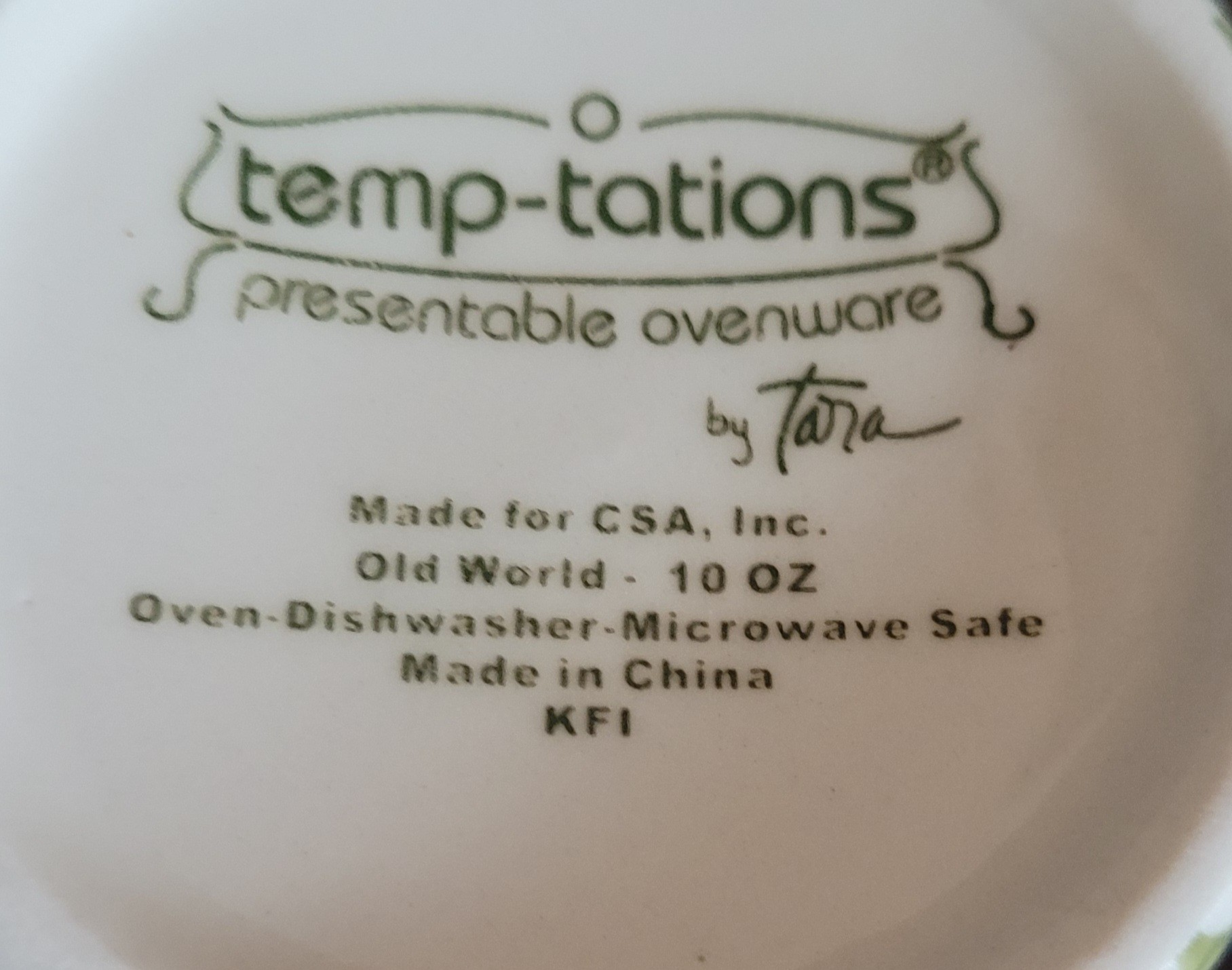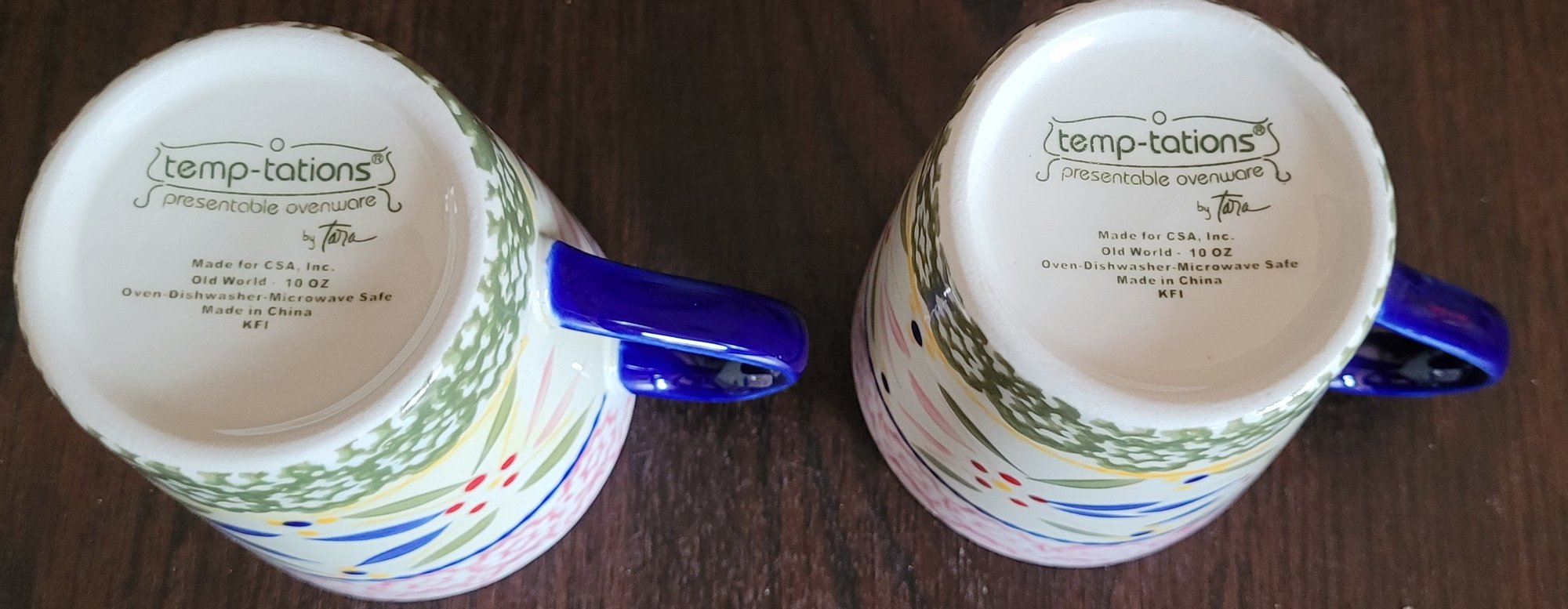 The cups with this set are 10oz. Appear to have not been used. Comes in the original box. See pictures for details.