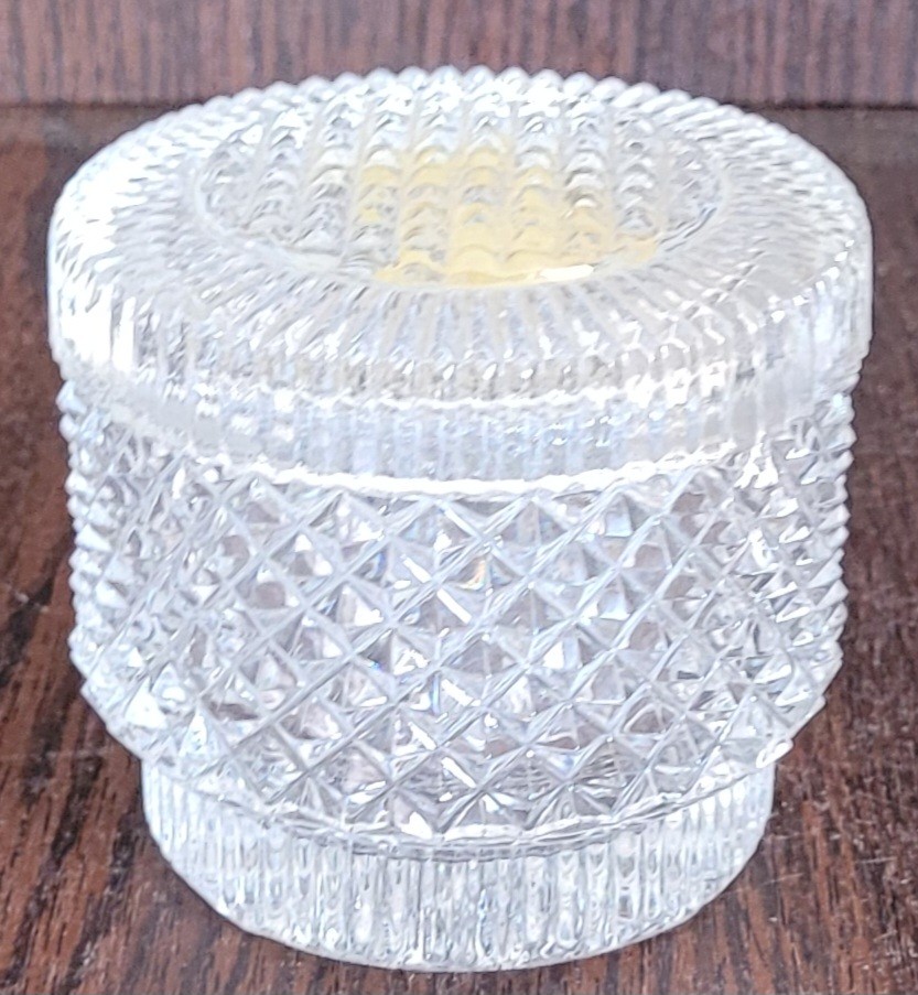 This measures 3" tall by 3.25" in diameter. Very good condition. See pictures for details.