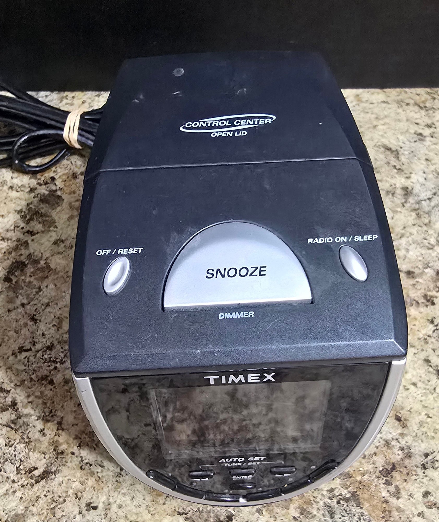 Timex Black Auto-Set Dual Alarm Preset Tuning Clock Radio. Tested and works. Please see all pics for details.