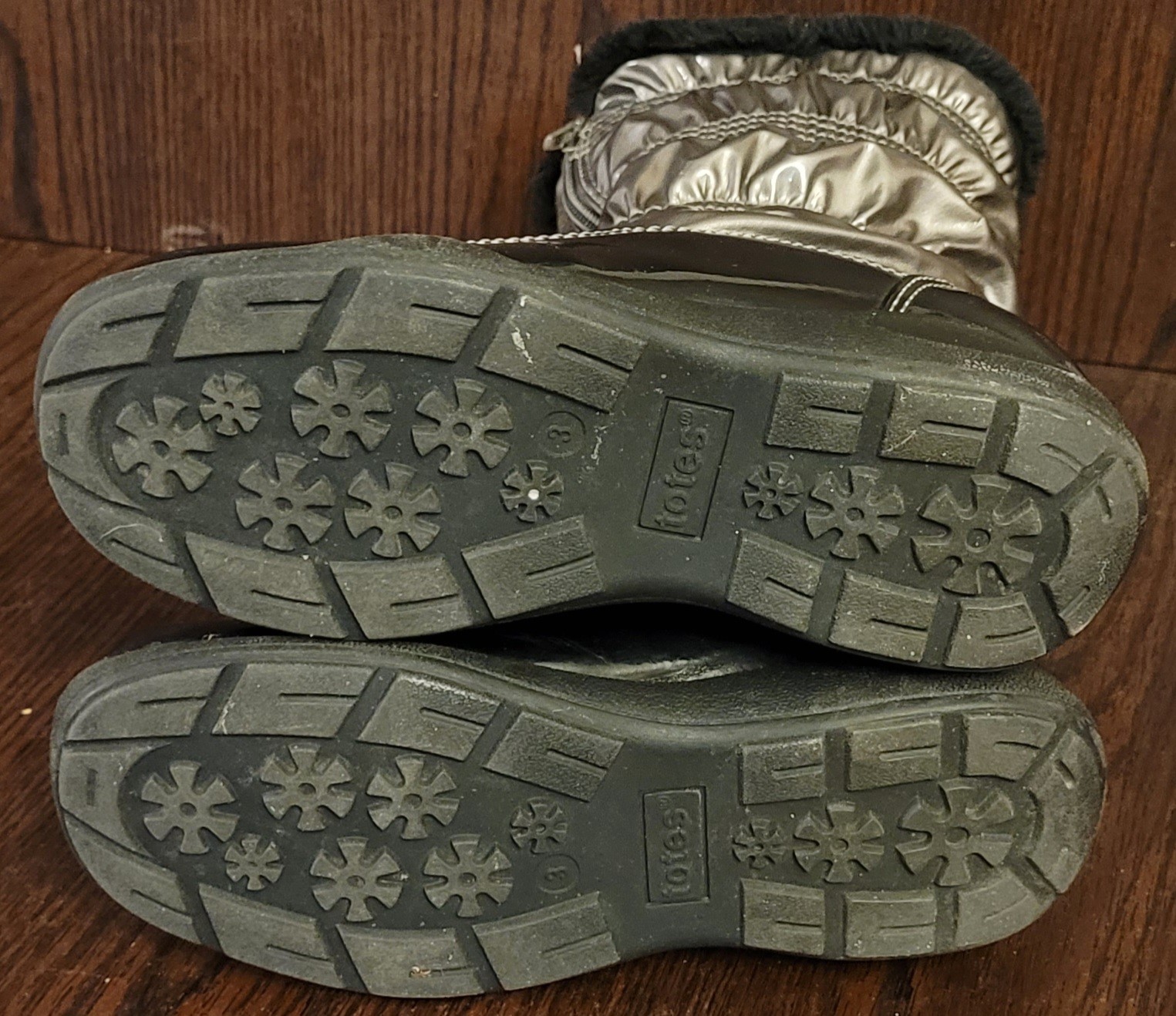 These boots have good tread on them and are in good condition. See pictures for details.